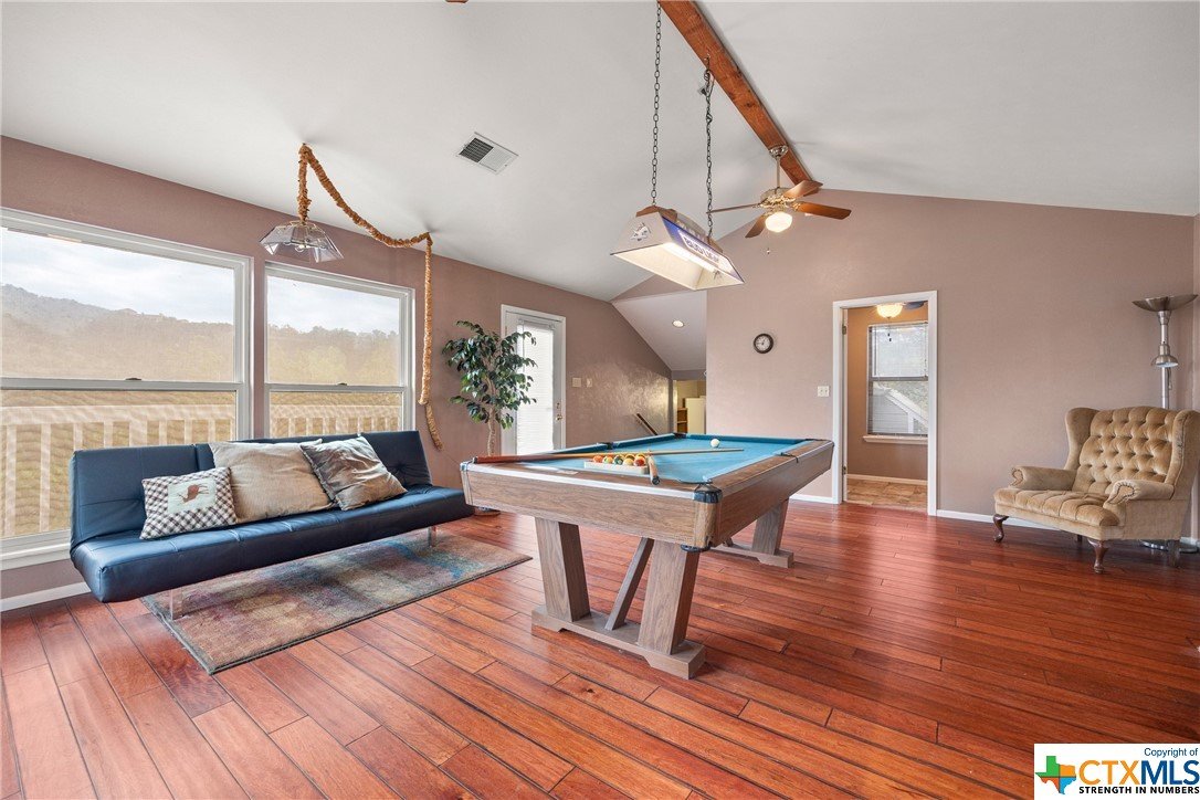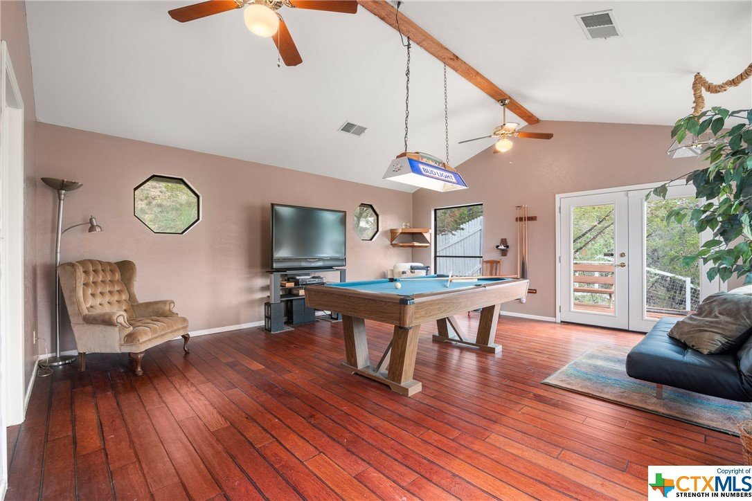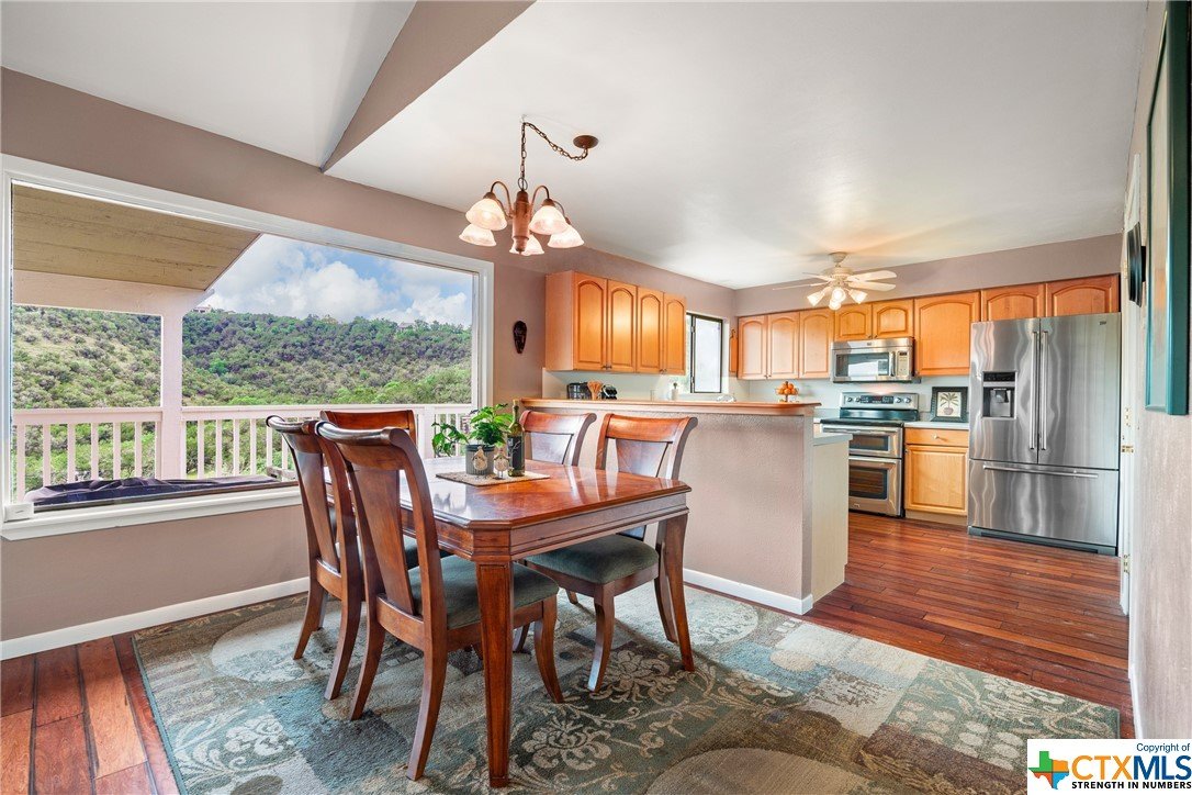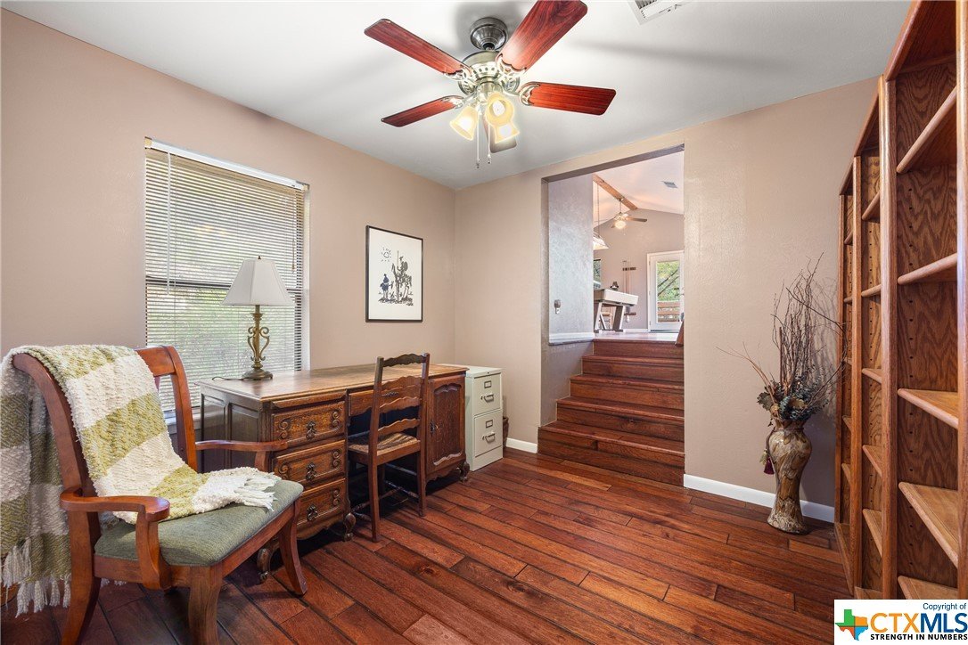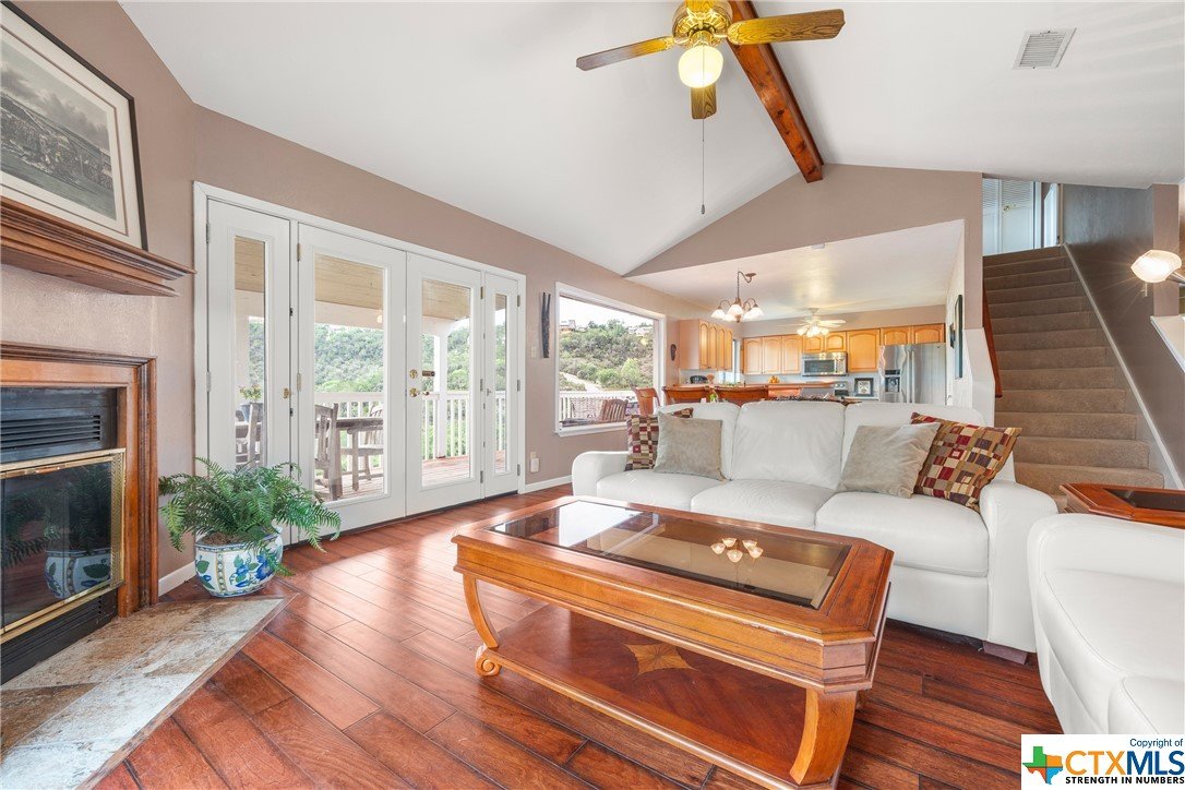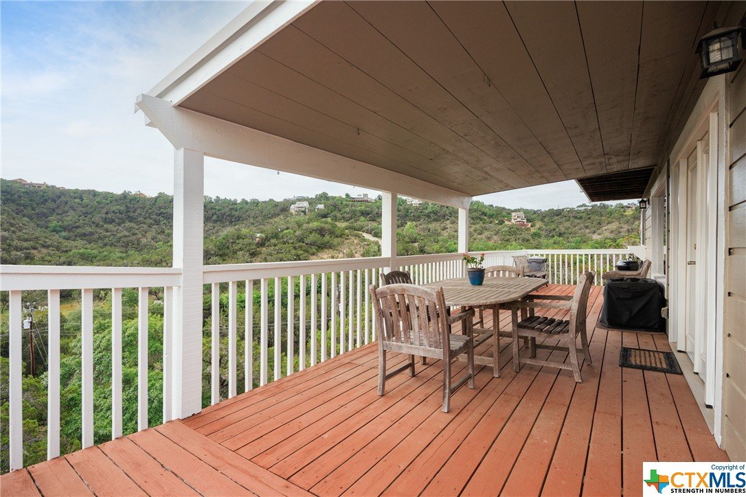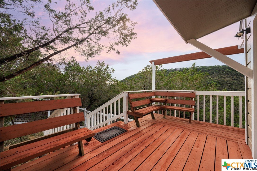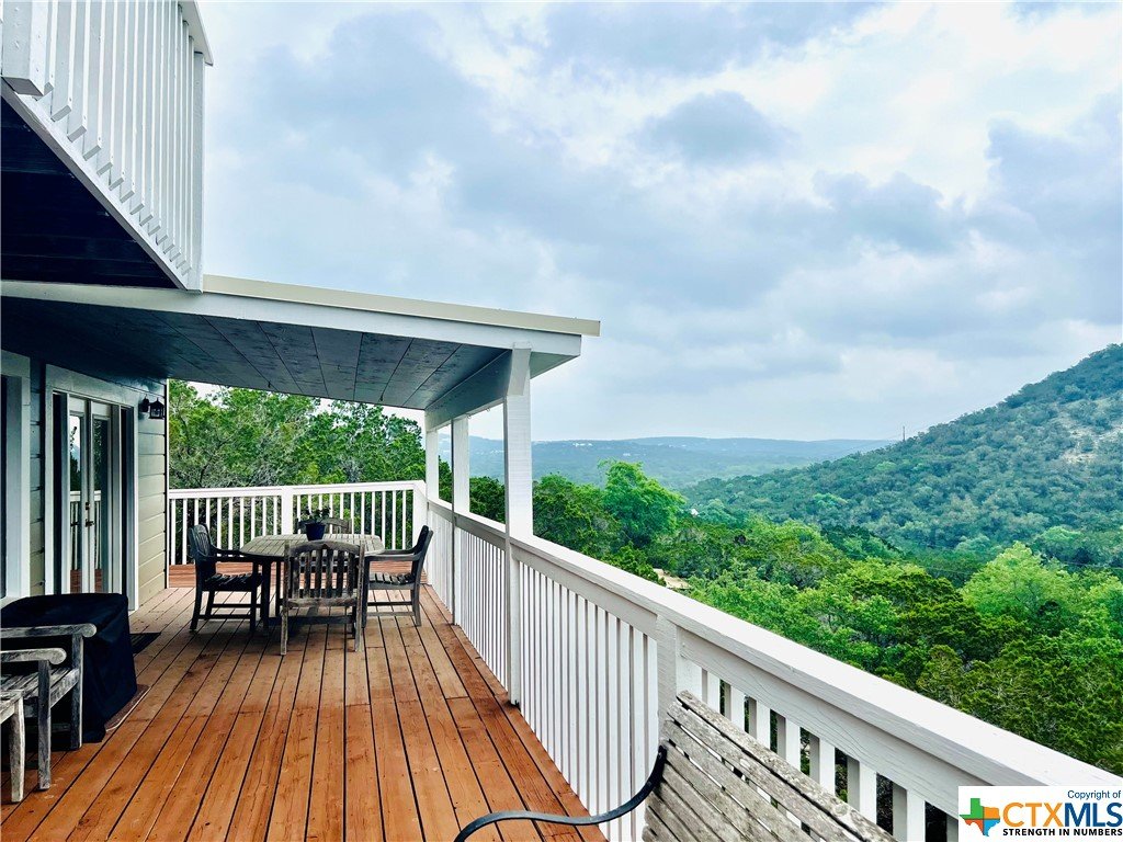 This lovely home is perched within the hills of Wimberley and offers stunning panoramic views on 3.49 serene acres. Whether you’re entertaining on the expansive deck or lounging indoors in the living room, you are surrounded by beautiful views of the hill country. Large windows allow the beauty of the outdoors to be enjoyed any time of year and the open floor plan makes for a welcoming living area. This well-maintained home has wood floors, a stone fireplace and a large flex room that could serve as a 3rd bedroom or an office and an additional living area. With private access to the Blanco River and just minutes from downtown, Paradise Hills is a highly sought after neighborhood. This is truly a must see property and a unique opportunity to have your very own piece of the Texas Hill Country!