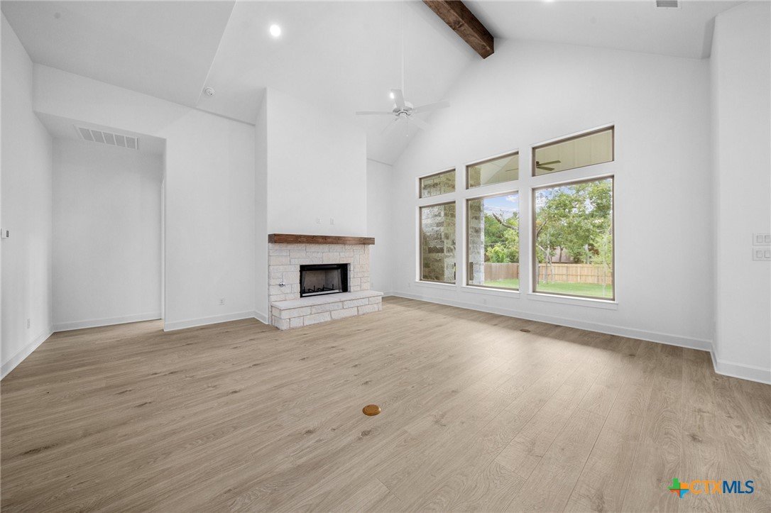 Key Features: Spray foam insulation, 12' ceilings, 8'doors, 8' tall insulated foam core garage doors, custom cabinets, high-efficiency vinyl windows, irrigation systems in front and back yard and wireless security package with touchscreen. HOA has a required $1,000 one-time membership fee. HOA dues are $550 annually. Includes propane tank, tankless water heater, gas range, and gas to living room fireplace. Visit our model home located at 2603 Legacy Ranch, Temple.