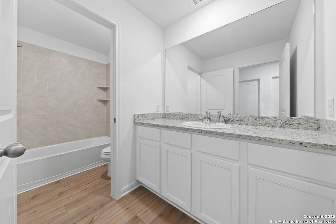This two-story, four-bedroom, two-and-a-half bath home is simply stunning. On the main floor, enjoy an incredible open-concept layout with large windows, making this space feel airy and bright. The chef-ready kitchen includes energy-efficient appliances, granite countertops, oversized wood cabinetry and a large center island. The upstairs master suite showcases a stunning en-suite bathroom with a beautiful vanity, large soaker tub, enclosed shower and a huge walk-in closet. In addition, this home comes with designer-selected upgrades included at no extra cost such as luxury vinyl-plank flooring, a Wi-Fi-enabled garage door opener, programmable thermostat and more.