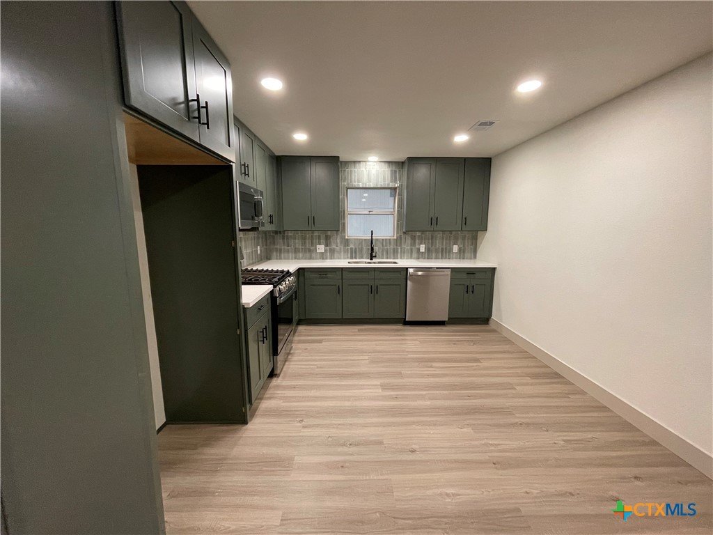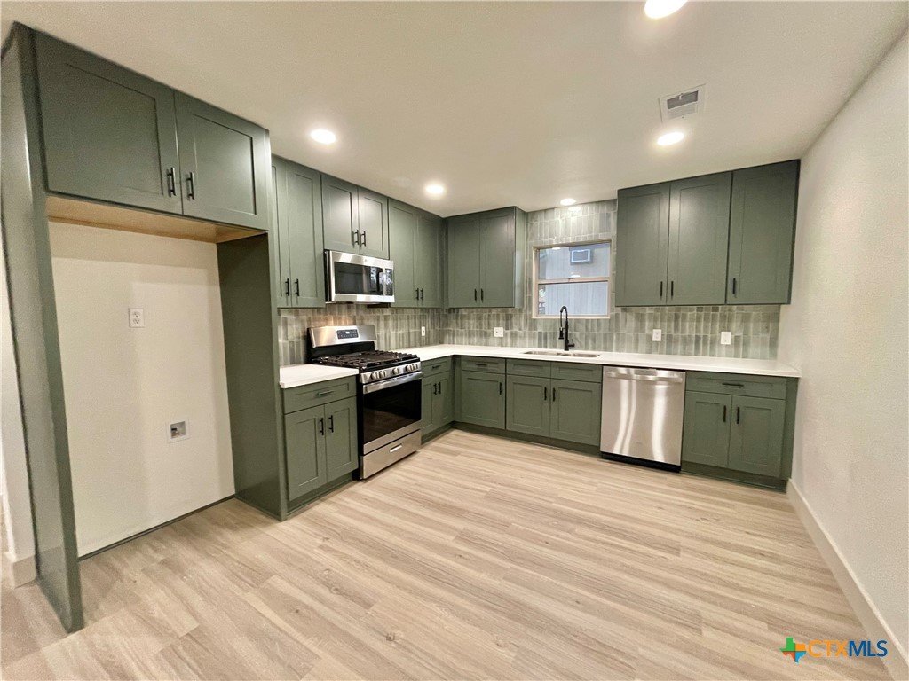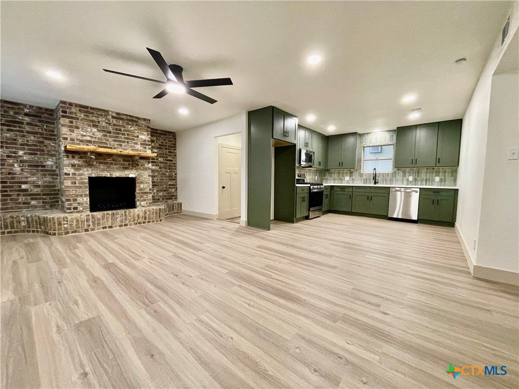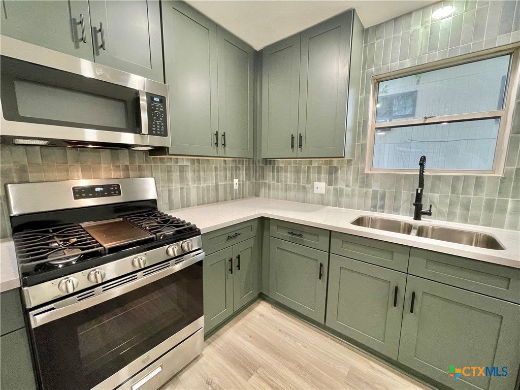 This stunning 3 bedroom, 1 bath home is nestled on a shady lot just a short stroll away from the park. The kitchen boasts custom soft-close cabinets, luxurious quartz countertops, stainless steel appliances (including a natural gas range), and a gorgeous tiled backsplash. Cozy up by the wood-burning fireplace with a mesquite mantel, and enjoy the convenience of a massive walk-in pantry and a spacious utility room with a drop zone. The entire home has been beautifully remodeled with fresh, modern colors, an updated bathroom, and three inviting bedrooms. You'll be blown away by the modern finishes and attention to detail throughout. Outside, you'll find a privacy fence, a brand-new roof, a one-car garage, and lush new sod in the backyard. Don't miss out on this incredible opportunity to own a truly exceptional home at a great price!