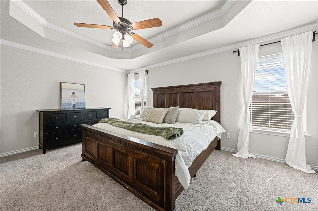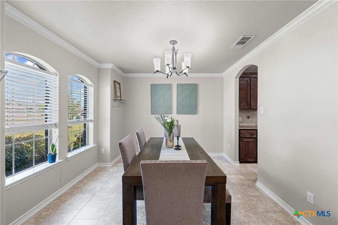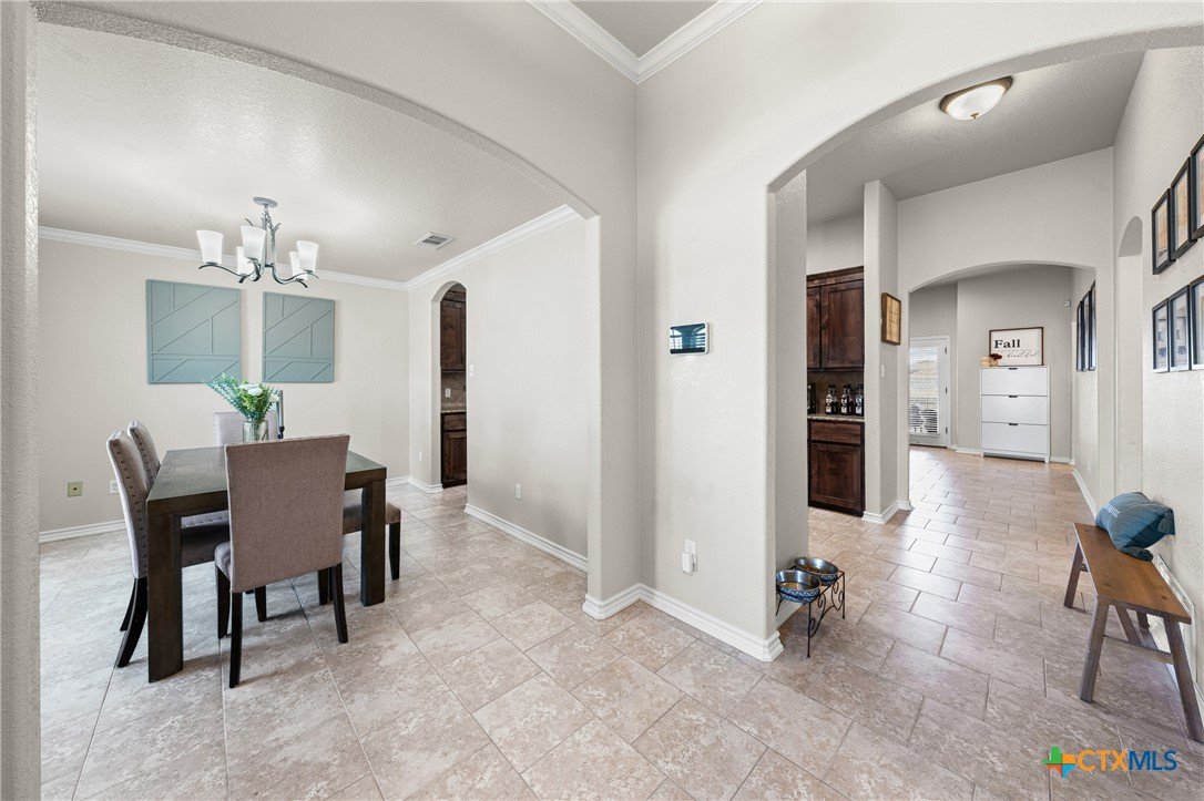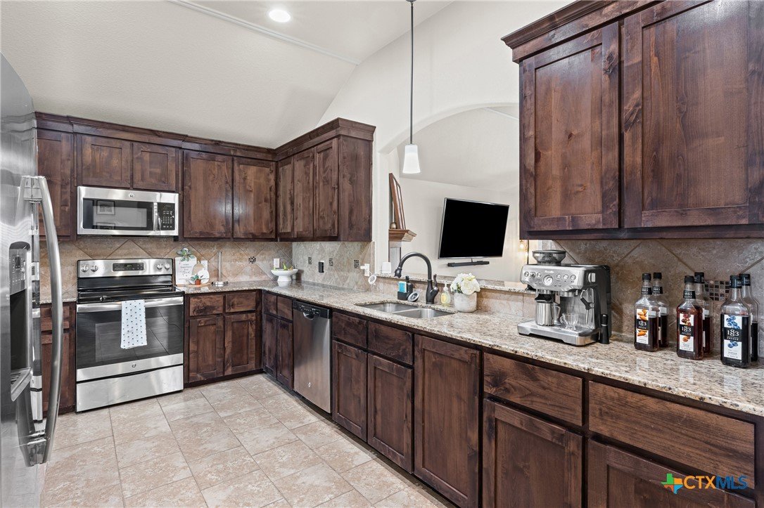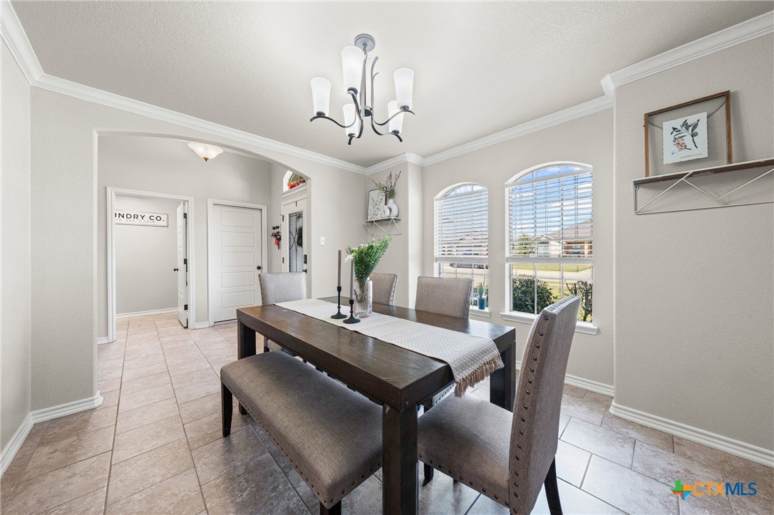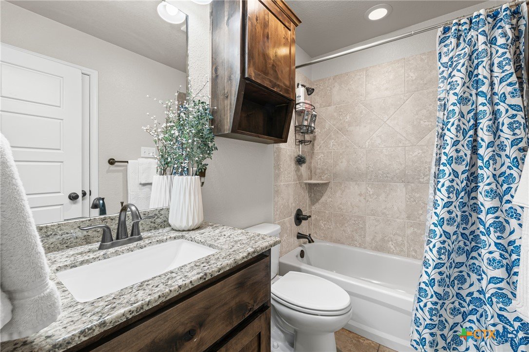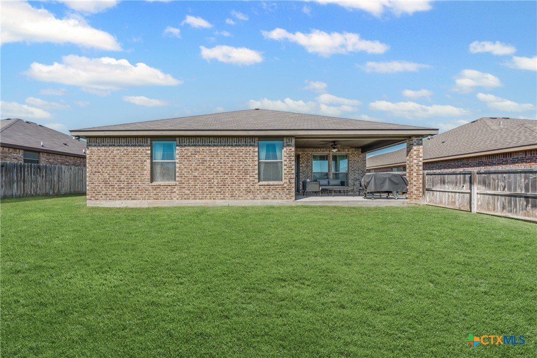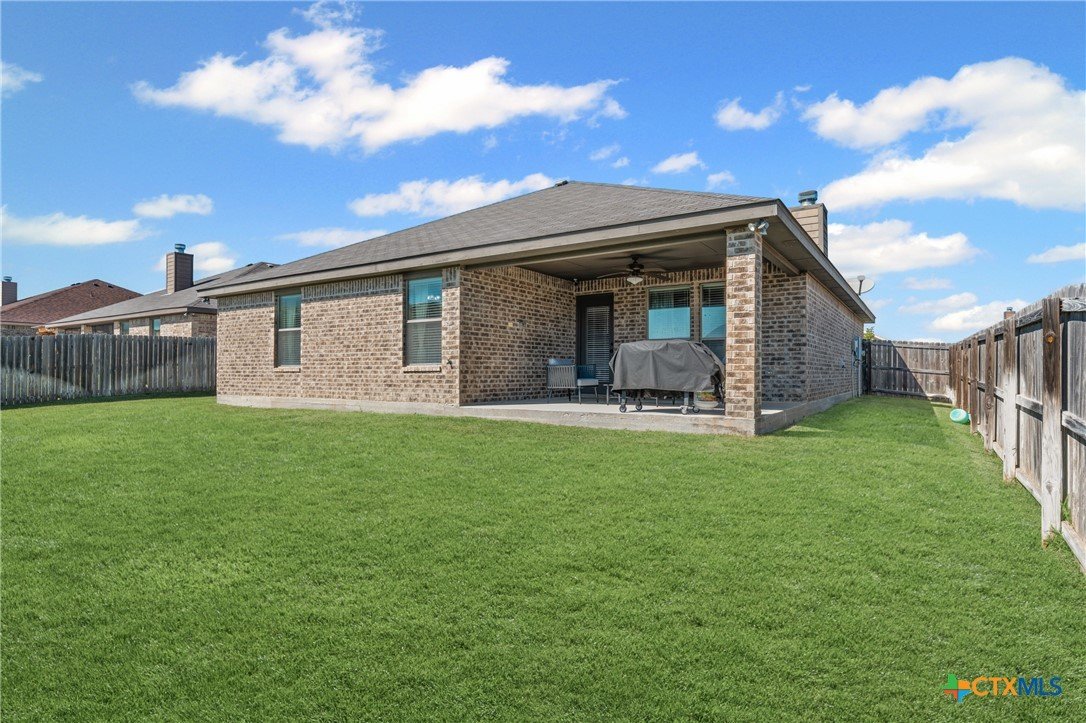 Welcome to this fabulous 3-bed, 2-bath home in desirable Bunny Trail Estates! From the inviting entryway to the oversized 3-car garage with epoxy floors, this home blends comfort, charm, and upgrades. Inside, an elegant foyer opens to a flexible dining space and a chef’s kitchen featuring granite countertops, custom 42" cabinets, tile backsplash, and oil-rubbed bronze fixtures. The breakfast bar flows into the open living room with a cozy wood-burning fireplace. The split floor plan offers privacy, with two bedrooms and a full bath on one side and a serene primary suite with a tray ceiling, dual vanities, garden tub, separate shower, and large walk-in closet on the other. Enjoy an oversized backyard with a covered patio, ceiling fan, storage shed, wrap-around side yard, and sprinkler system. Minutes from shopping, dining, and Fort Hood—this Bunny Trail Estates beauty is move-in ready! VA loan assumption available!