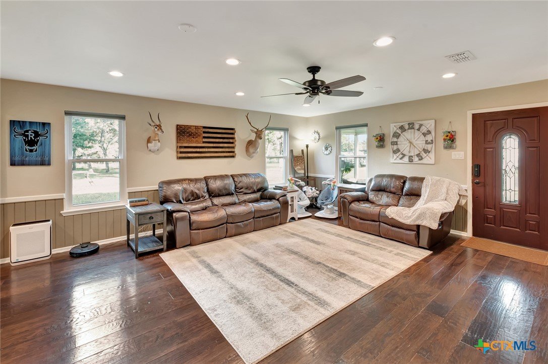 The wait is over, your private country retreat has just been found! Escape the hustle and embrace the tranquility of this spacious 3 bedroom, 3 bathroom home nestled amongst the live oaks. There are two primary suites…One boasts a large walk-in closet and recently remodeled bathroom while the other has a jetted tub! The living area is perfectly sized for gathering and the 2 large, enclosed porches are dreamy hangout destinations. The homestead is fully fenced with 4-inch square wire w/barbed wire perimeter, cross-fencing, and ag-exempt acreage. There's plenty of space for a few animals and exploring along with a large workshop for storage or projects! If all of this isn't enough, there's a lovely lake right down the road! With a septic installed 7/2025, and double pane, double hung windows installed in 2024, this home is ready for you to move in!