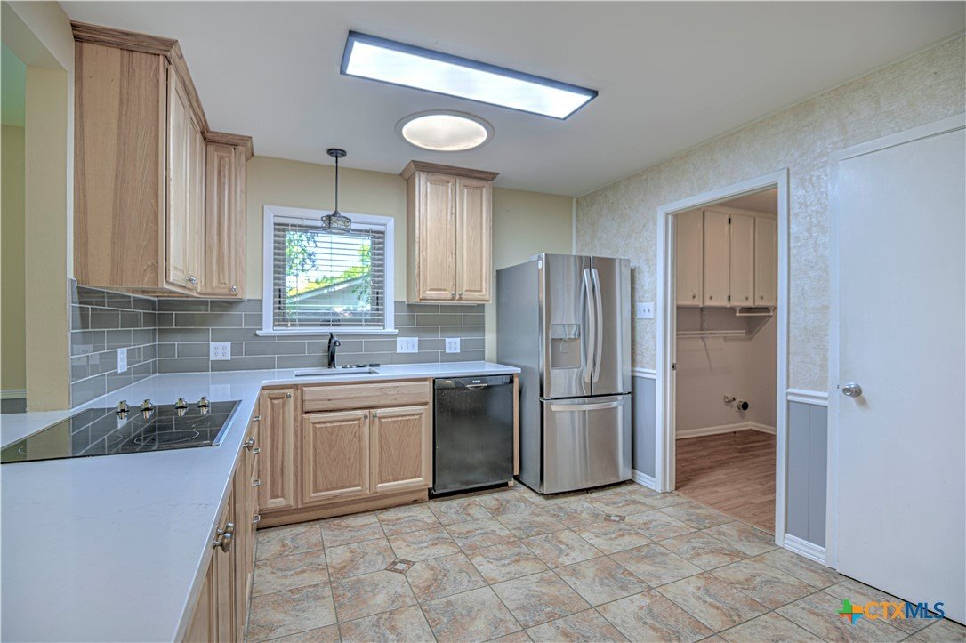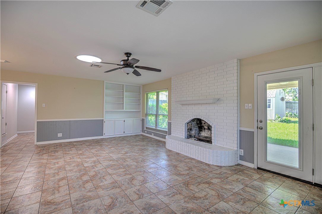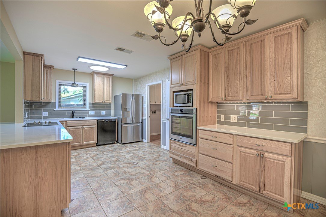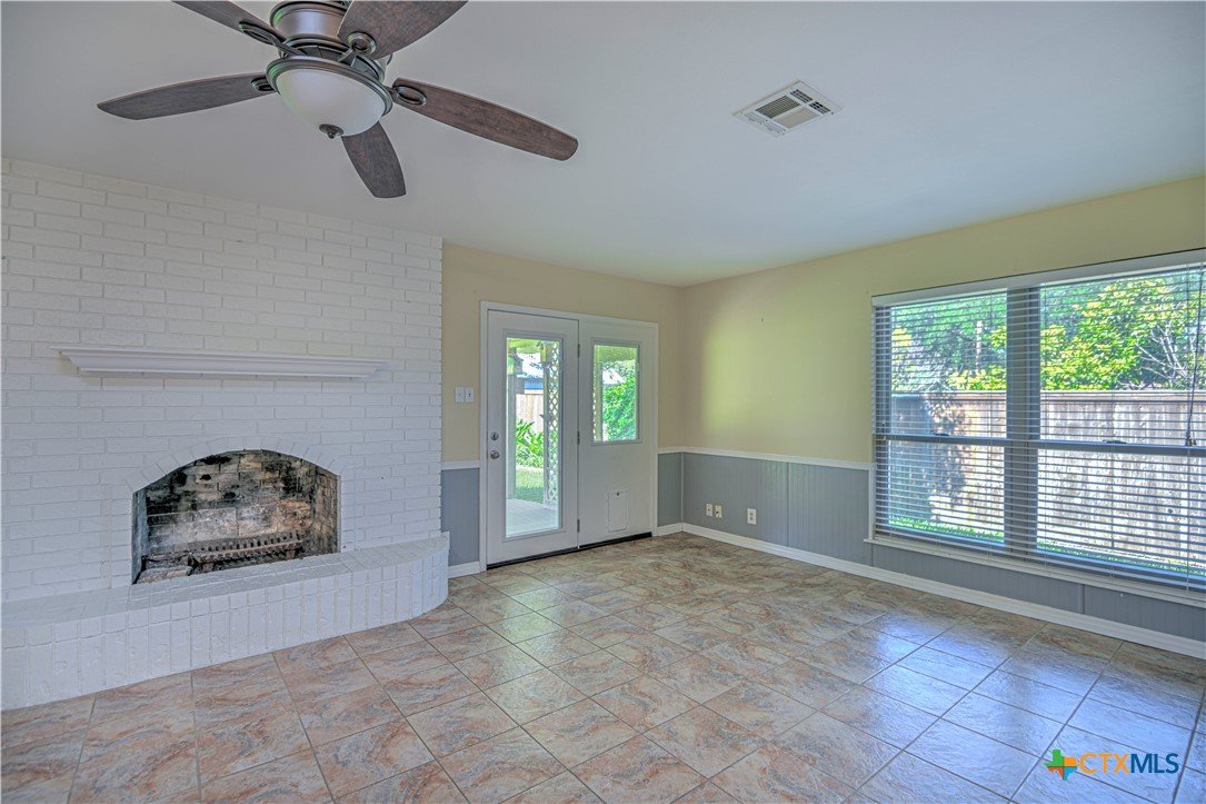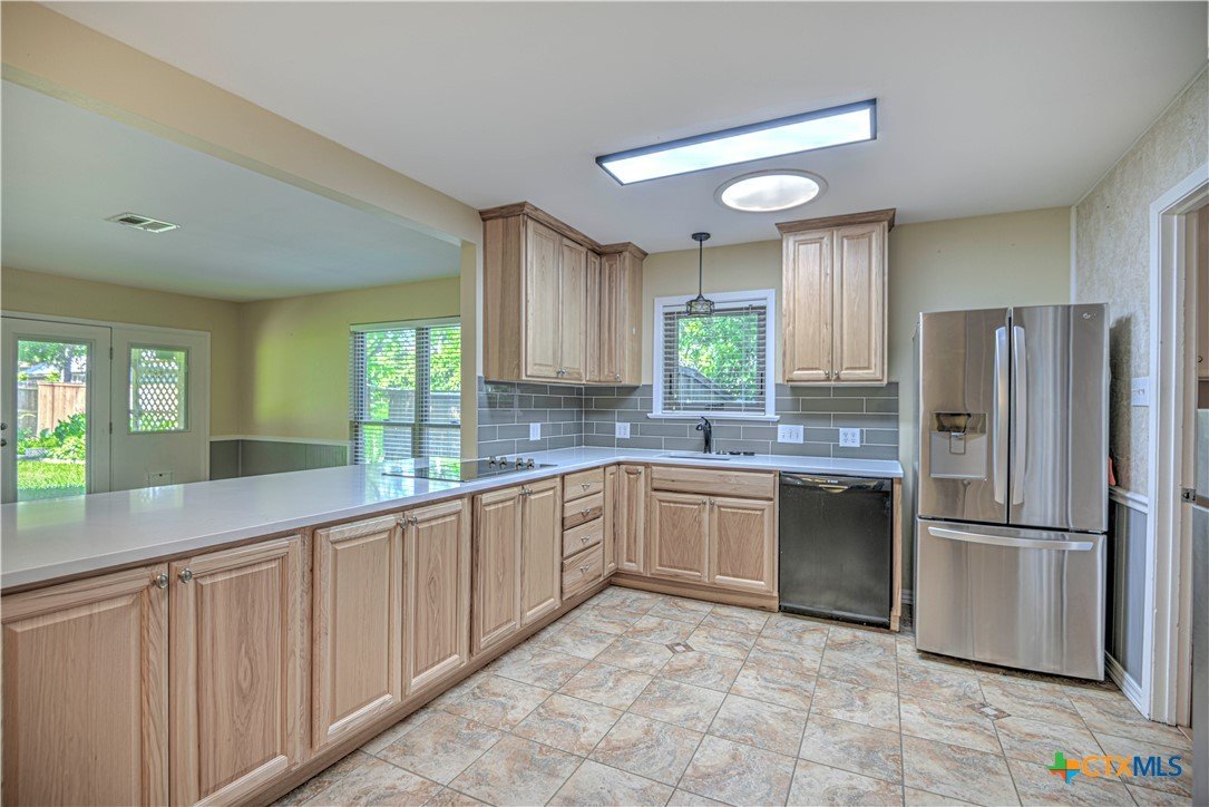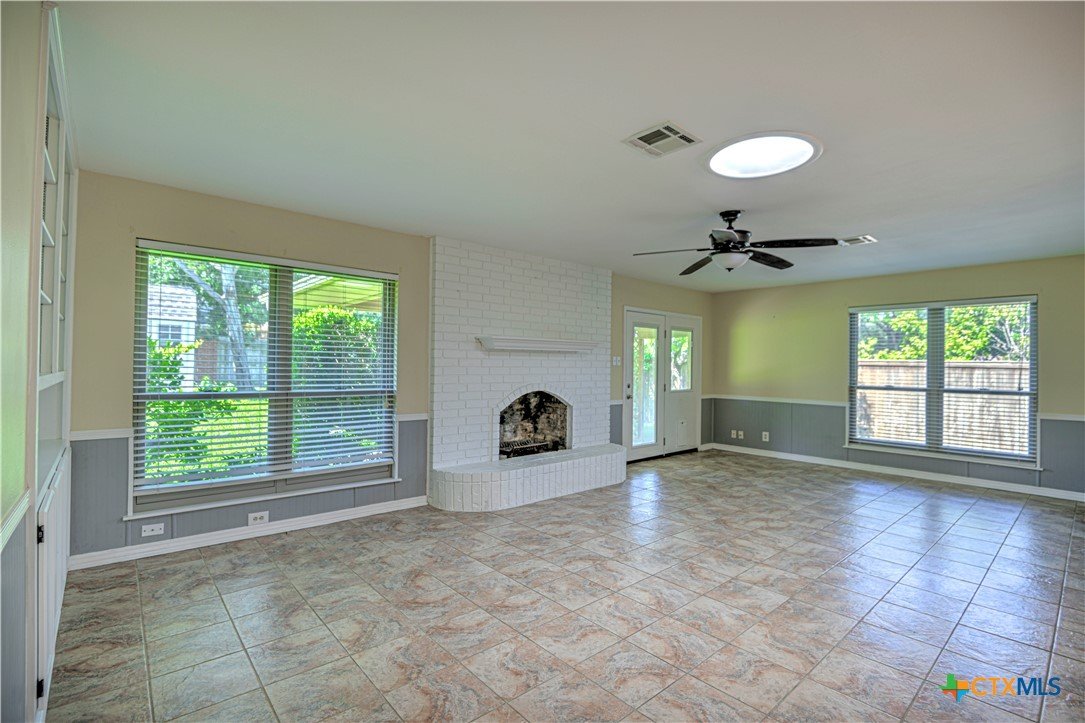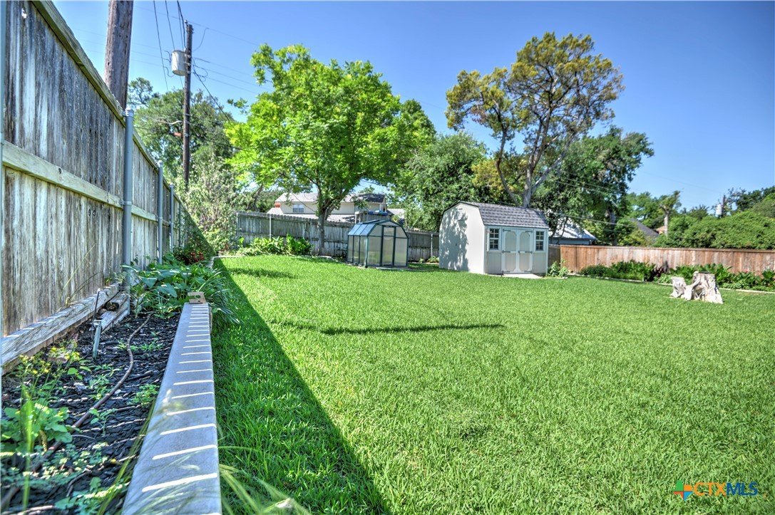 This well-maintained home is conveniently located just off Hickory in SW Temple with easy access to I-35 or the amenities of Temple. It has ceramic tile floors in the living area, kitchen, and hallway. The living room has a lovely white fireplace and mantel with French doors on one side for easy access to the covered patio. Two bedrooms are carpeted and two bedrooms have laminate flooring, which works well for an office. The primary bedroom at the rear of the house has an updated bathroom with a large shower and high sink. The large kitchen is open to the great room/living room and has lots of counterspace. Stainless steel appliances are in the kitchen and there's an integrated sink with the off-white, solid-surface countertops. The laundry room is between the kitchen and the garage with room for an extra refrigerator. The garage has a nice workshop room. There are 5 cylindrical skylights (chunnels) in the house for added light. The backyard is a real bonus with a workshop approx. 10' x 15' with electricity, plus a greenhouse for plants. The perimeter of the yard is full of perennials which will bloom throughout the year. Additional bonus features include Andersen windows, Leaf-guard gutters, a 35-year architectural roof put on in Oct. 2024, and a Hunter irrigation system with its own meter. This house is move-in ready.