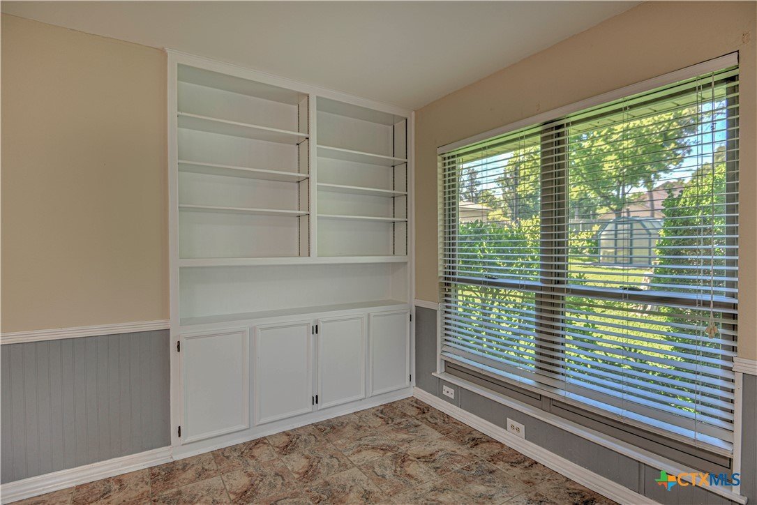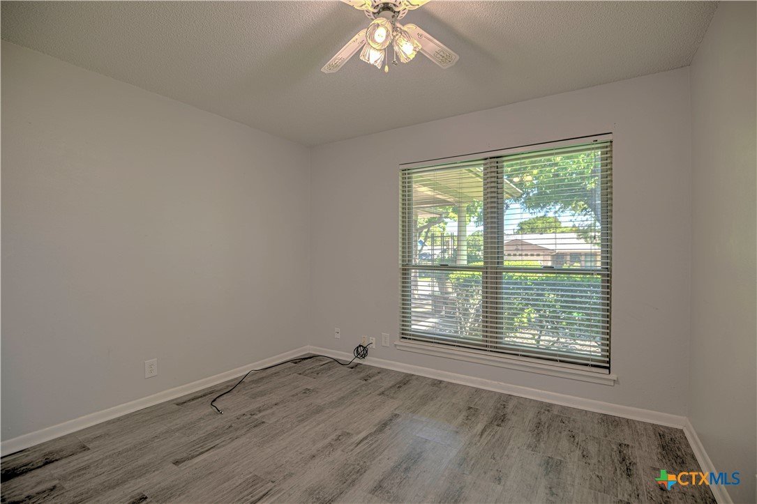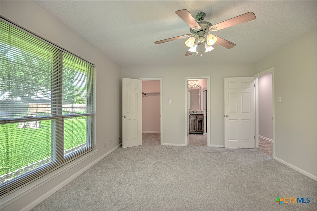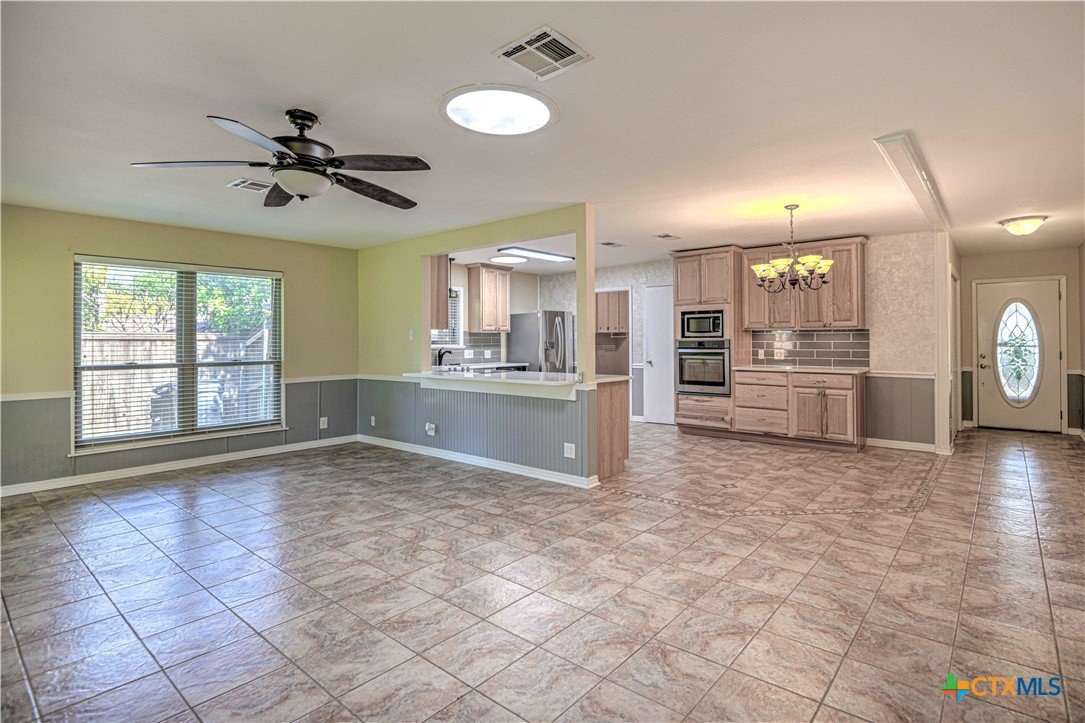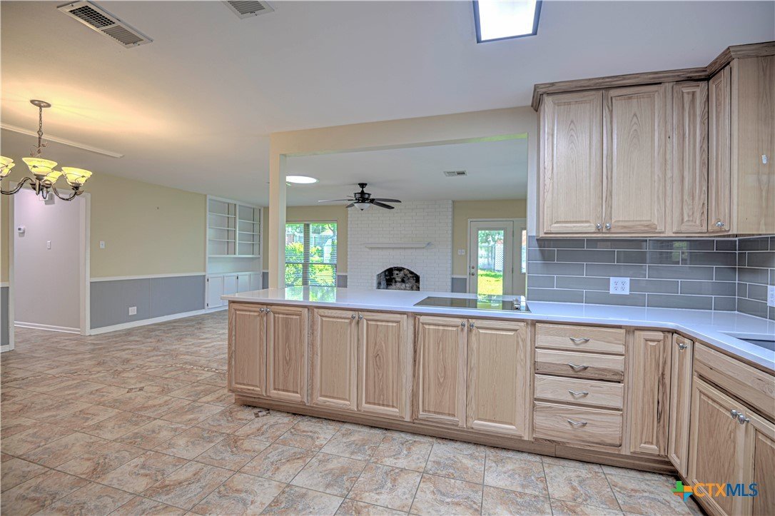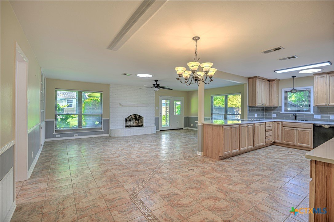 This well-maintained home is conveniently located just off Hickory in SW Temple with easy access to I-35 or the amenities of Temple. It has ceramic tile floors in the living area, kitchen, and hallway. The living room has a lovely white fireplace and mantel with French doors on one side for easy access to the covered patio. Two bedrooms are carpeted and two bedrooms have laminate flooring, which works well for an office. The primary bedroom at the rear of the house has an updated bathroom with a large shower and high sink. The large kitchen is open to the great room/living room and has lots of counterspace. Stainless steel appliances are in the kitchen and there's an integrated sink with the off-white, solid-surface countertops. The laundry room is between the kitchen and the garage with room for an extra refrigerator. The garage has a nice workshop room. There are 5 cylindrical skylights (chunnels) in the house for added light. The backyard is a real bonus with a workshop approx. 10' x 15' with electricity, plus a greenhouse for plants. The perimeter of the yard is full of perennials which will bloom throughout the year. Additional bonus features include Andersen windows, Leaf-guard gutters, a 35-year architectural roof put on in Oct. 2024, and a Hunter irrigation system with its own meter. This house is move-in ready.