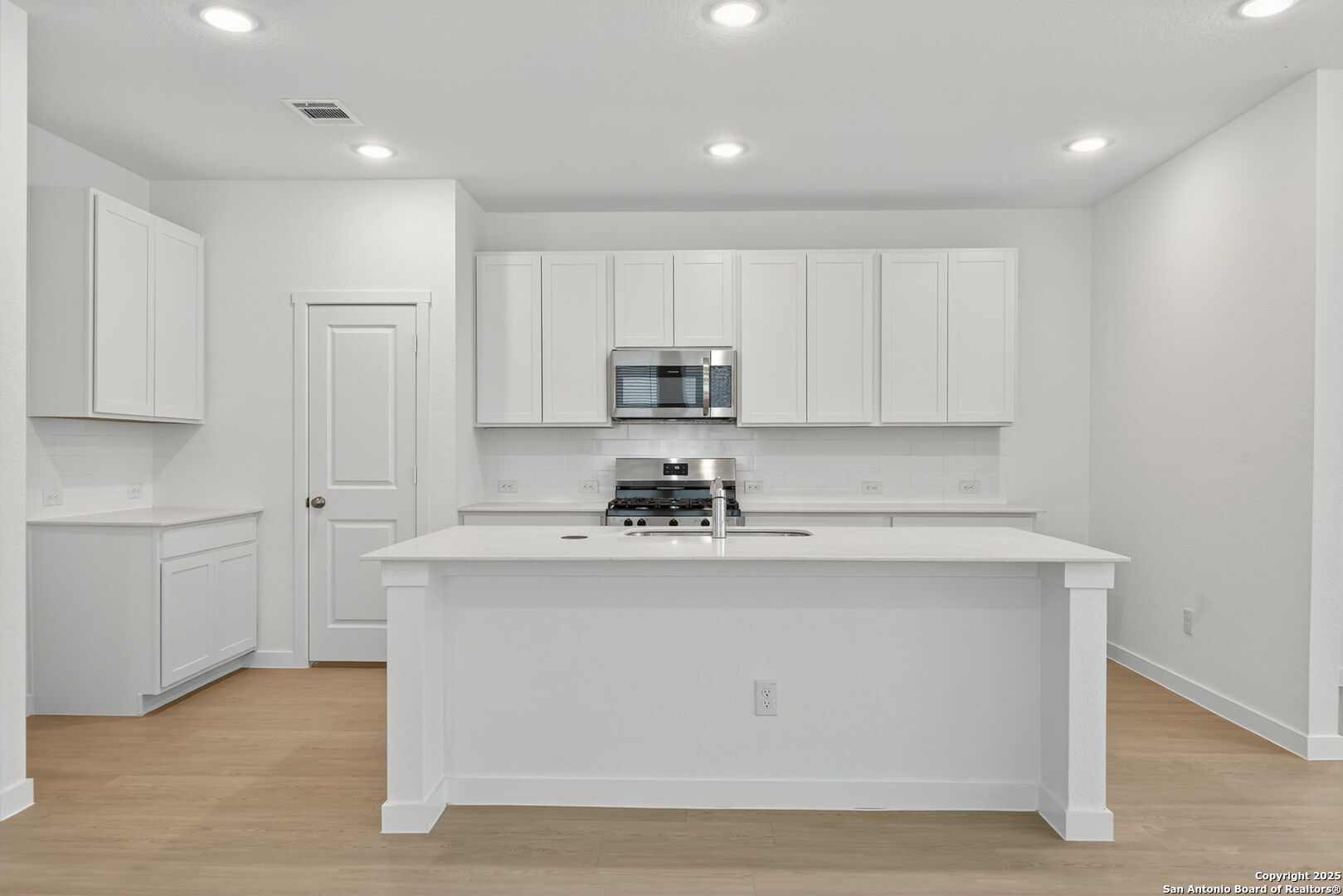 This beautifully maintained, newer construction home by Lennar in the sought-after Brookmill Ladera Subdivision offers 4 bedrooms and 3 bathrooms. Its convenient location provides easy access to Hwy-211 & Hwy-90, with Ladera Elementary within walking distance and JBSA Lackland Air Force Base, local entertainment, and restaurants just minutes away. Enjoy fantastic community amenities including a sparkling pool, pickleball and sports courts, a park/playground, and jogging trails. The home boasts handsome curb appeal with low-maintenance landscaping, a longer driveway, and a decent backyard. Inside, discover an open floorplan seamlessly connecting the living, kitchen, and dining areas, plus a full bathroom for guests. The gourmet island kitchen features countertops, gas cooking, and stainless-steel appliances.