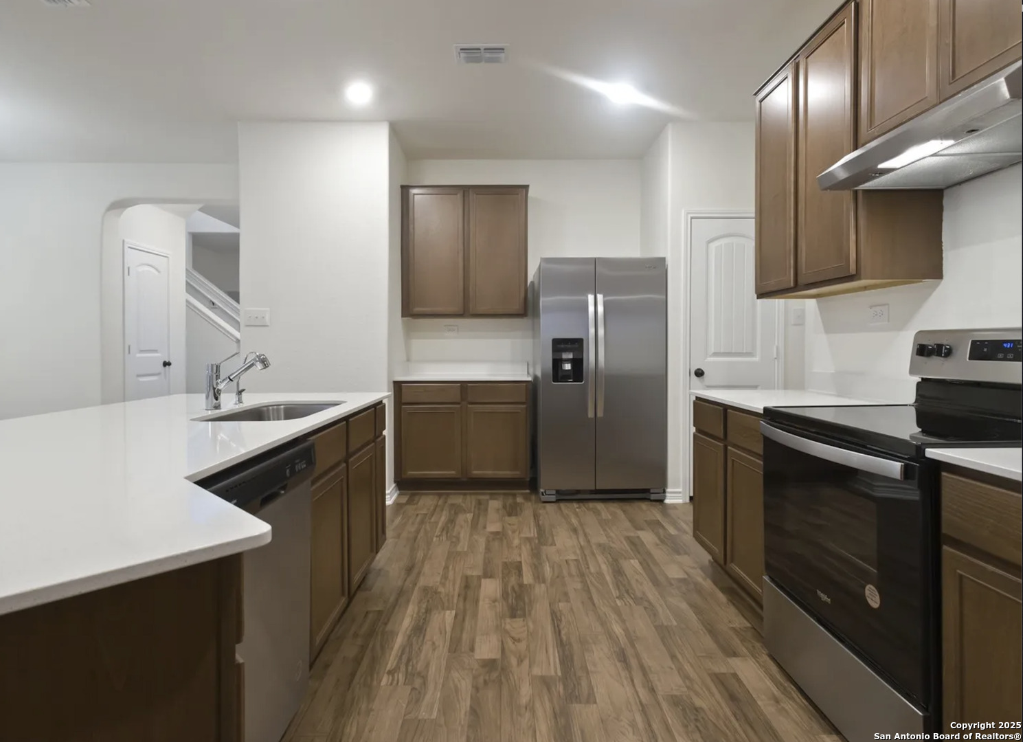 New Build, be the first tenants to rent this large spacious family home. 5 bedrooms 3.5 bathrooms. This includes two Master suites, one on the main floor & one upstairs with the secondary bedrooms. Open concept floor plan. Stainless steel Kitchen appliances. Dishwasher, refrigerator, and stove) Washer & Dryer included with laundry room on main floor. Laminate flooring throughout with carpet in the bedrooms only. Large walk-in closets to match the generous size rooms. Large fenced in backyard fully landscaped with sprinkler system. Setup your showing today!