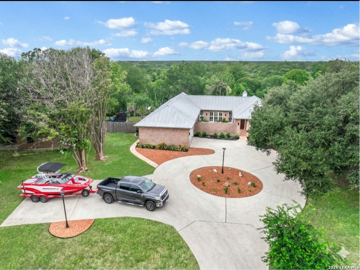 352 Ridge Crest Dr combines architectural elegance with modern comfort. Built by a noted architect and builder, this home captures the essence of a lake estate, featuring a split-bedroom design with the primary suite on one side and a private guest suites on the other. At the heart of the home, a spacious great room and kitchen open to a 560 sq. ft. covered patio, offering beautiful viewpoints of Lake McQueeney. Sitting on over half an acre, the open floor plan is highlighted by 10-foot ceilings, 8-foot doors, and a wall of glass that frames serene lake views. In 2025, the home underwent a complete transformation, including a fully renovated kitchen and primary bath, all-new stainless steel appliances with two full-size refrigerators, and updated LED lighting throughout. Additional updates include fresh interior and exterior paint, new plumbing fixtures, upgraded landscaping, blown attic insulation, updated electrical trim, and USB-C outlets in key areas. Practical improvements include a 2022 garage water heater, a new water heater in the primary suite closet, and 2019 replacements for both HVAC systems. With its thoughtful design, fresh updates, and peaceful lake backdrop, this property is move-in ready and designed for years of enjoyment.