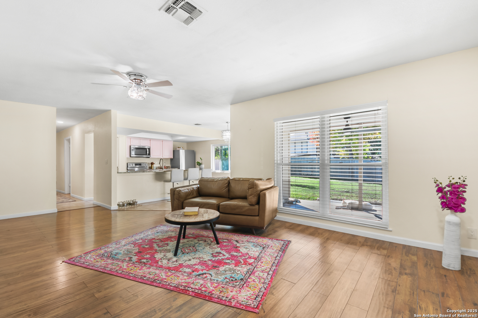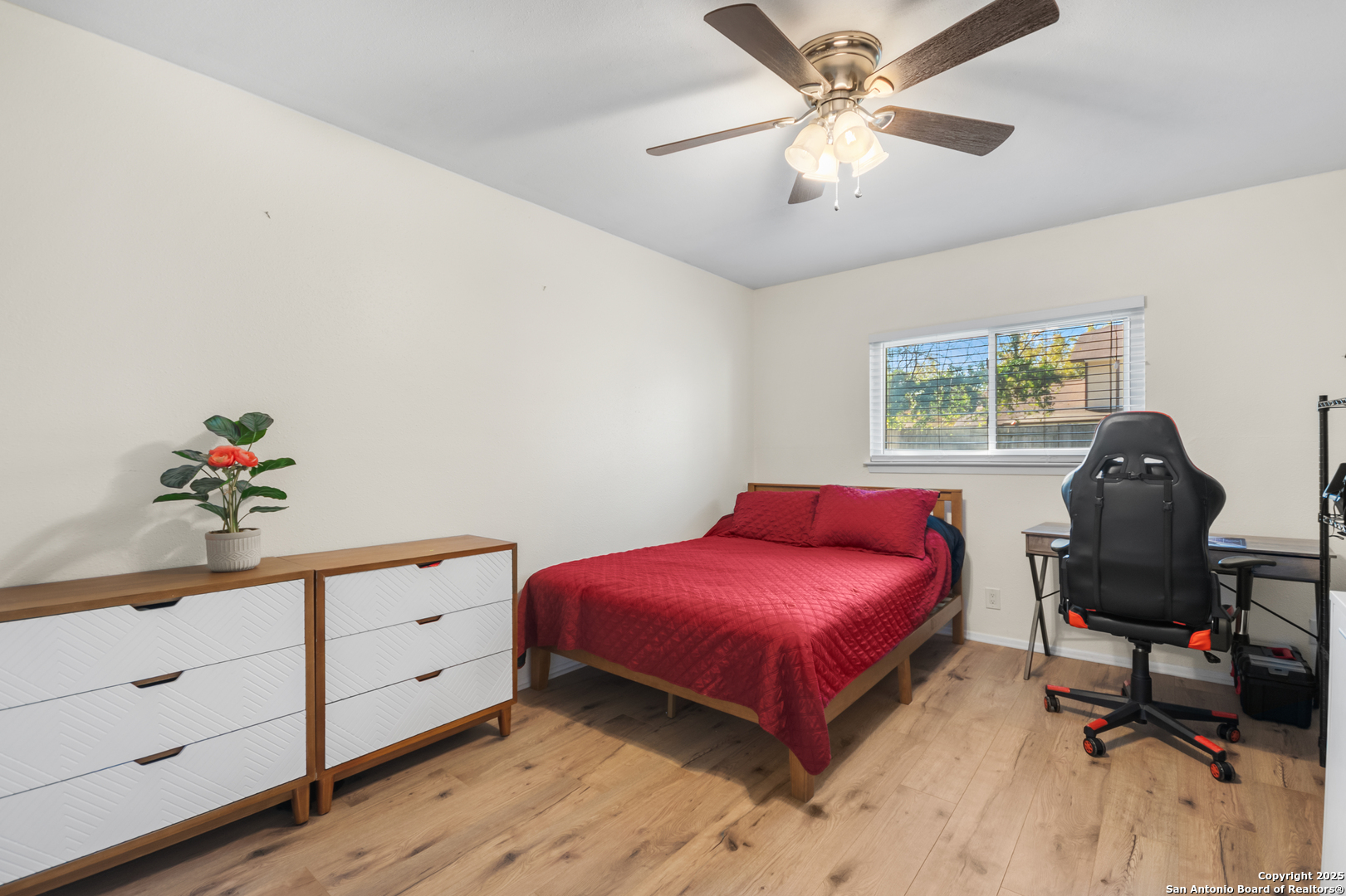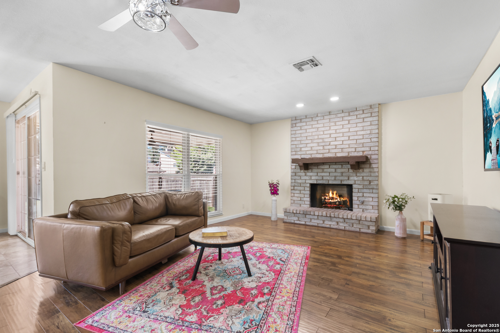 Welcome to a beautifully cared-for home featuring four spacious bedrooms, including a versatile fourth room perfect for an office, guest suite, or hobby space. Recent upgrades elevate both comfort and function: new laminate wood floors, a gas fireplace insert, and an updated hallway bath with a new shower/tub. The property also benefits from repaired fencing, a new 2023 roof, and foundation improvements completed by the previous owner. Every detail adds peace of mind and long-term appeal-this home is fully prepared for its next chapter. ..Because of its central position on the north side of San Antonio, Eden is attractive to buyers who want quick access to major job hubs, including medical, aerospace, defense, and corporate office corridors. Proximity to Camp Bullis, Randolph Air Force Base, McAllister Park, and retail corridors provides a blend of lifestyle and convenience. ..Eden Subdivision offers a peaceful, traditional suburban environment while being just minutes from major thoroughfares such as Thousand Oaks Drive, Loop 1604, and Highway 281. Home is North East Independent School District (NEISD), a highly regarded district in the San Antonio area, Wetmore Elementary School and MacArthur High School, the Middle School was consolidated into other schools. Please confirm Middle School with NEISD.