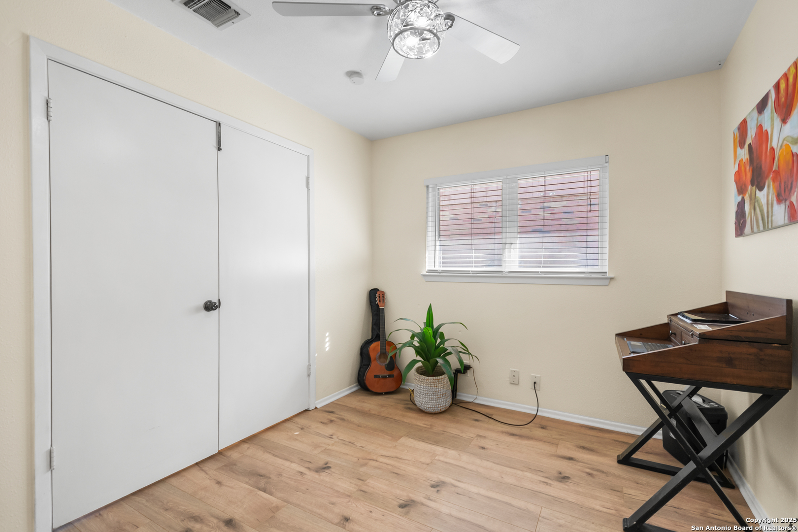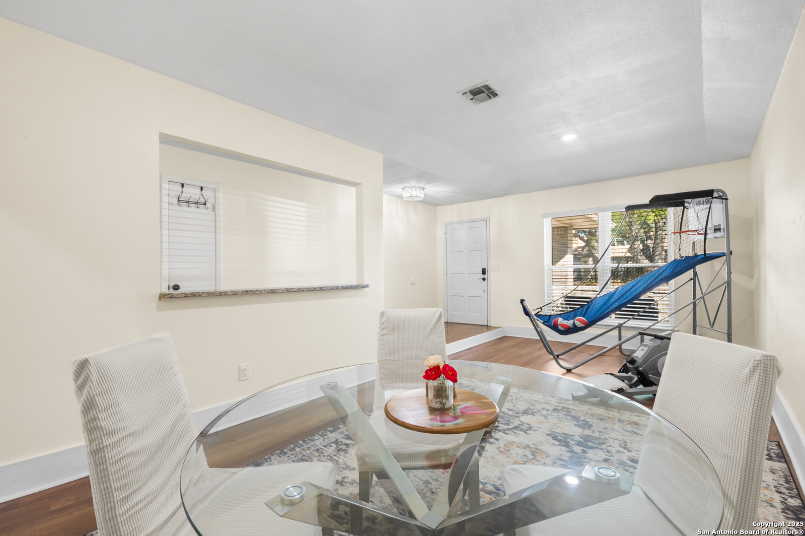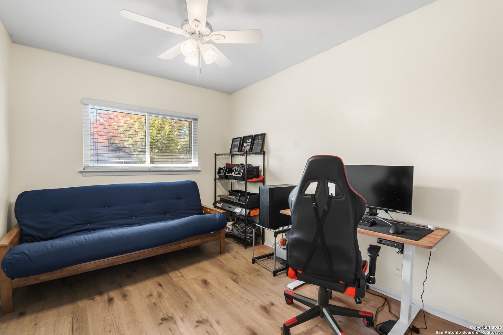 Welcome to a beautifully cared-for home featuring four spacious bedrooms, including a versatile fourth room perfect for an office, guest suite, or hobby space. Recent upgrades elevate both comfort and function: new laminate wood floors, a gas fireplace insert, and an updated hallway bath with a new shower/tub. The property also benefits from repaired fencing, a new 2023 roof, and foundation improvements completed by the previous owner. Every detail adds peace of mind and long-term appeal-this home is fully prepared for its next chapter. ..Because of its central position on the north side of San Antonio, Eden is attractive to buyers who want quick access to major job hubs, including medical, aerospace, defense, and corporate office corridors. Proximity to Camp Bullis, Randolph Air Force Base, McAllister Park, and retail corridors provides a blend of lifestyle and convenience. ..Eden Subdivision offers a peaceful, traditional suburban environment while being just minutes from major thoroughfares such as Thousand Oaks Drive, Loop 1604, and Highway 281. Home is North East Independent School District (NEISD), a highly regarded district in the San Antonio area, Wetmore Elementary School and MacArthur High School, the Middle School was consolidated into other schools. Please confirm Middle School with NEISD.