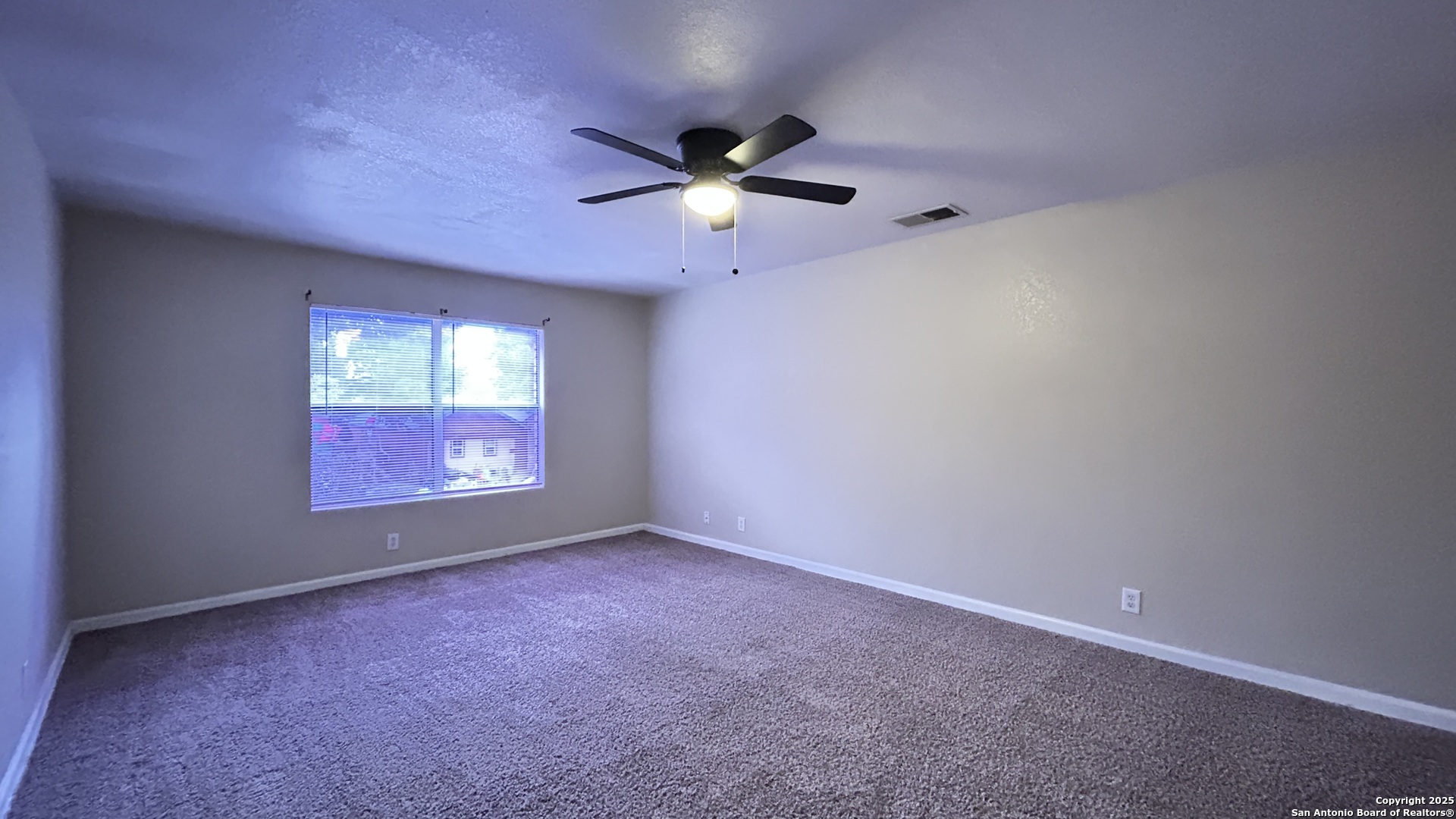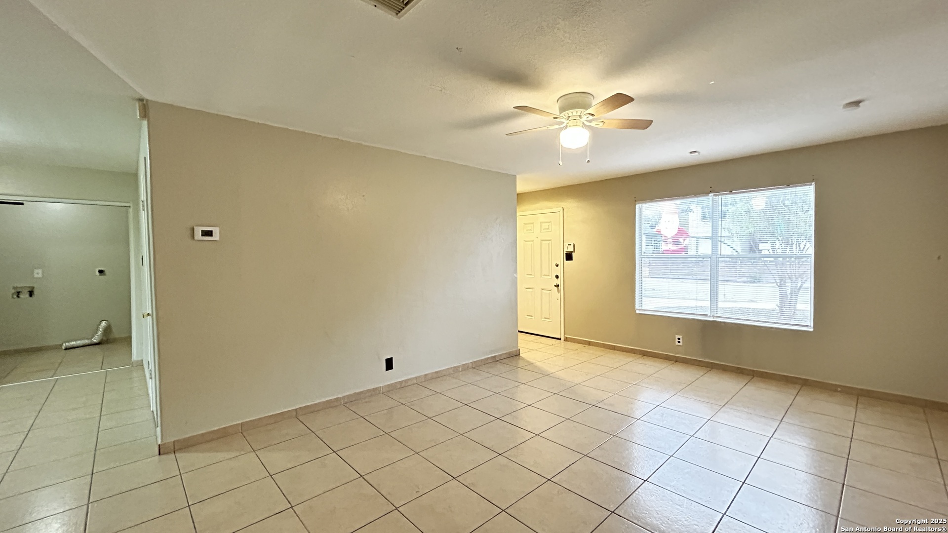 3 Bed, 2.5 Bath 1500 sq ft Home. All Tile downstairs. Living Room and a separate Dining Area. Kitchen with Stove, Dishwasher. All Bedrooms upstairs. Primary Bedroom with Ceiling Fan, Walk-in Closet. Primary Bath with Shower/Tub combo. Covered Patio, Large Fenced Yard on Greenbelt (no back neighbor). Garage with Opener. Down the street from Candlewood Elementary School, blocks to Wagner HS. Near Fort Sam Houston, Randolph AFB, 410, I-10.