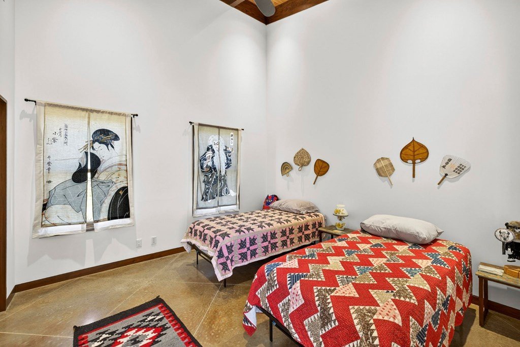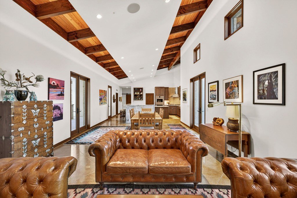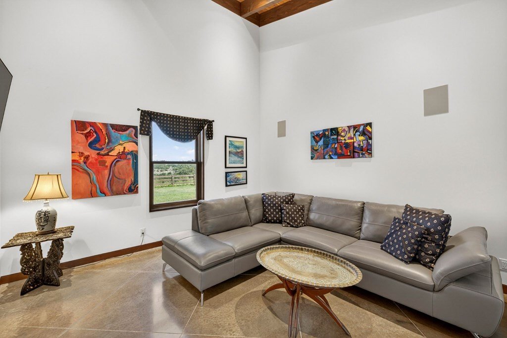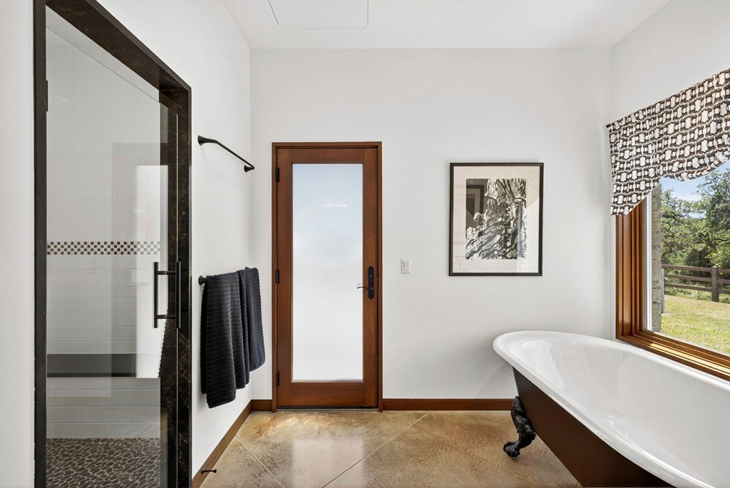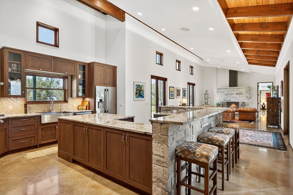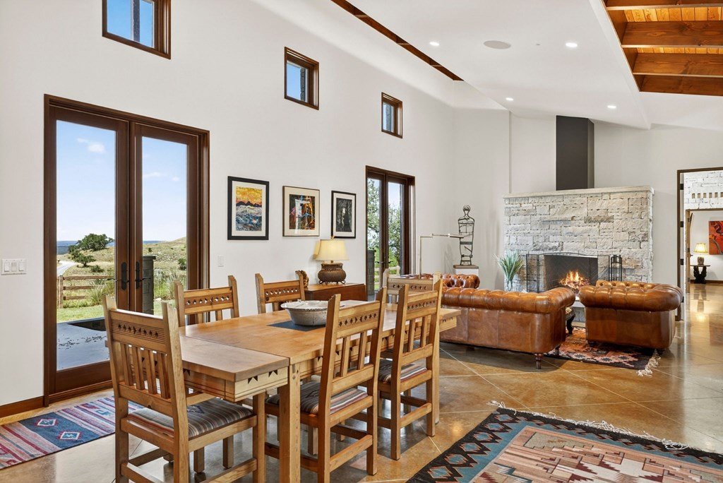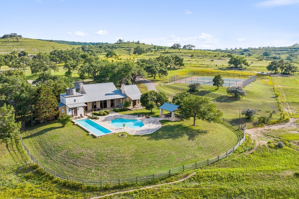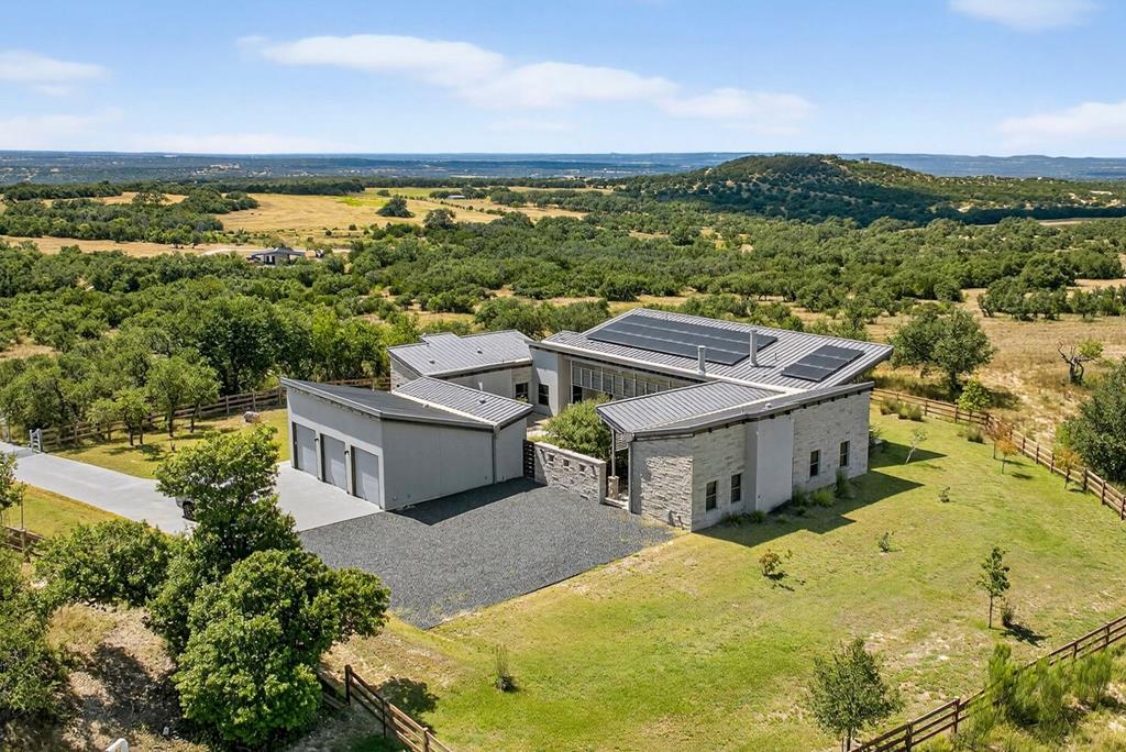 Welcome to 353 Agarita Way, an architectural masterpiece nestled on 5.87 acres in the exclusive ranch community, The Preserve at Walnut Springs. Set within a 2,000-acre sanctuary of rolling hills and wide-open spaces, this community offers an unmatched blend of privacy, luxury, and outdoor adventure—from horseback riding along private trails to relaxing by spring-fed swimming holes. The custom-built 2,640 sqft modern estate blends bold contemporary lines with warm natural elements, creating a striking yet inviting retreat. Every detail was thoughtfully curated to harmonize with the surrounding landscape while delivering an elevated living experience. Exteriorly, the home's sleek faade, stone accents, and clean rooflines set the tone for the exceptional design throughout. Inside, soaring ceilings with rich wood beamed accents, walls of windows framing panoramic views, and refined finishes create a space that feels both elegant and organic. The open-concept layout encourages effortless flow between the living, dining, and kitchen area—which features granite countertops, stainless steel appliances, and double ovens. Anchored by a dramatic stone fireplace, the living room offers a warm, sophisticated gathering space that extends seamlessly into the breathtaking courtyard. Here, an outdoor fireplace, raised flower beds, and artful landscaping create a serene backdrop for everything from quiet mornings to lively entertaining. The primary suite is a true sanctuary, where vaulted ceilings amplify the sense of space and the stunning views continue. The unique open-concept bath design showcases a custom black granite vanity, flowing into a spa-like setting with a free-standing tub and glass-enclosed shower. Two additional guest suites, accessed from the courtyard, each feature private baths and continue the theme of elevated and organic design, bringing a boutique hotel experience home. A dedicated media room, home office, and art studio offer versatility for work, leisure, and creative pursuits. Functionality meets sustainability throughout the property with solar panels, a well and an advanced rainwater collection system that includes an 8,000-gallon storage tank with purification, and an owned security system for peace of mind. Additionally, enjoy an oversized three-car garage and a climate-controlled workshop and storage room, providing ample space for hobbies, tools, or additional storage needs. Life at The Preserve at Walnut Springs is about more than a home—it's a lifestyle. Spanning 2,000 acres with just 66 exclusive homesites, this luxury ranch community preserves the natural beauty of the Hill Country with 1,500 acres of protected open space. Residents enjoy a community-wide ag exemption and a world-class amenity package, including 22 miles of private trails for hiking, biking, and horseback riding, two resort-style pools, tennis courts, stocked fishing ponds, a spring-fed swimming hole, hunting access, and an equestrian center with stalls and a covered arena. A full-time concierge service ensures every detail of daily life feels effortless. Perfectly located just eight miles from Johnson City and within easy reach of Austin and San Antonio, this property offers the rare opportunity to experience the perfect balance of modern luxury, Hill Country charm, and an unparalleled sense of community.