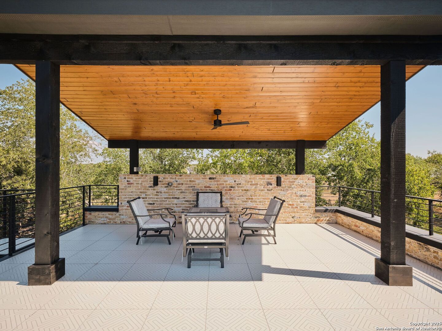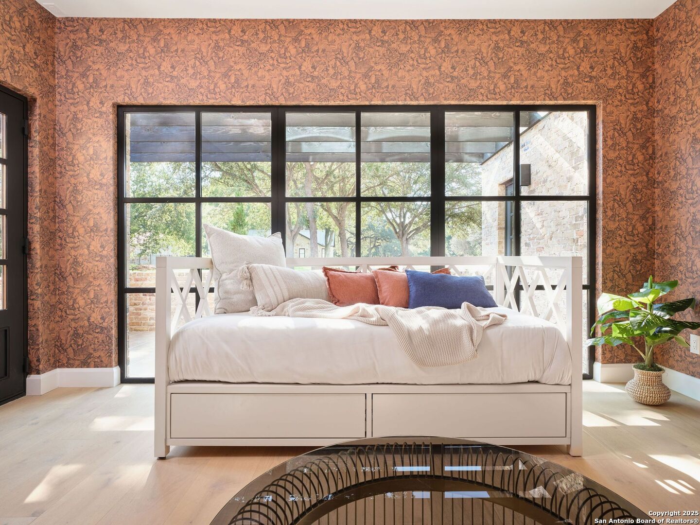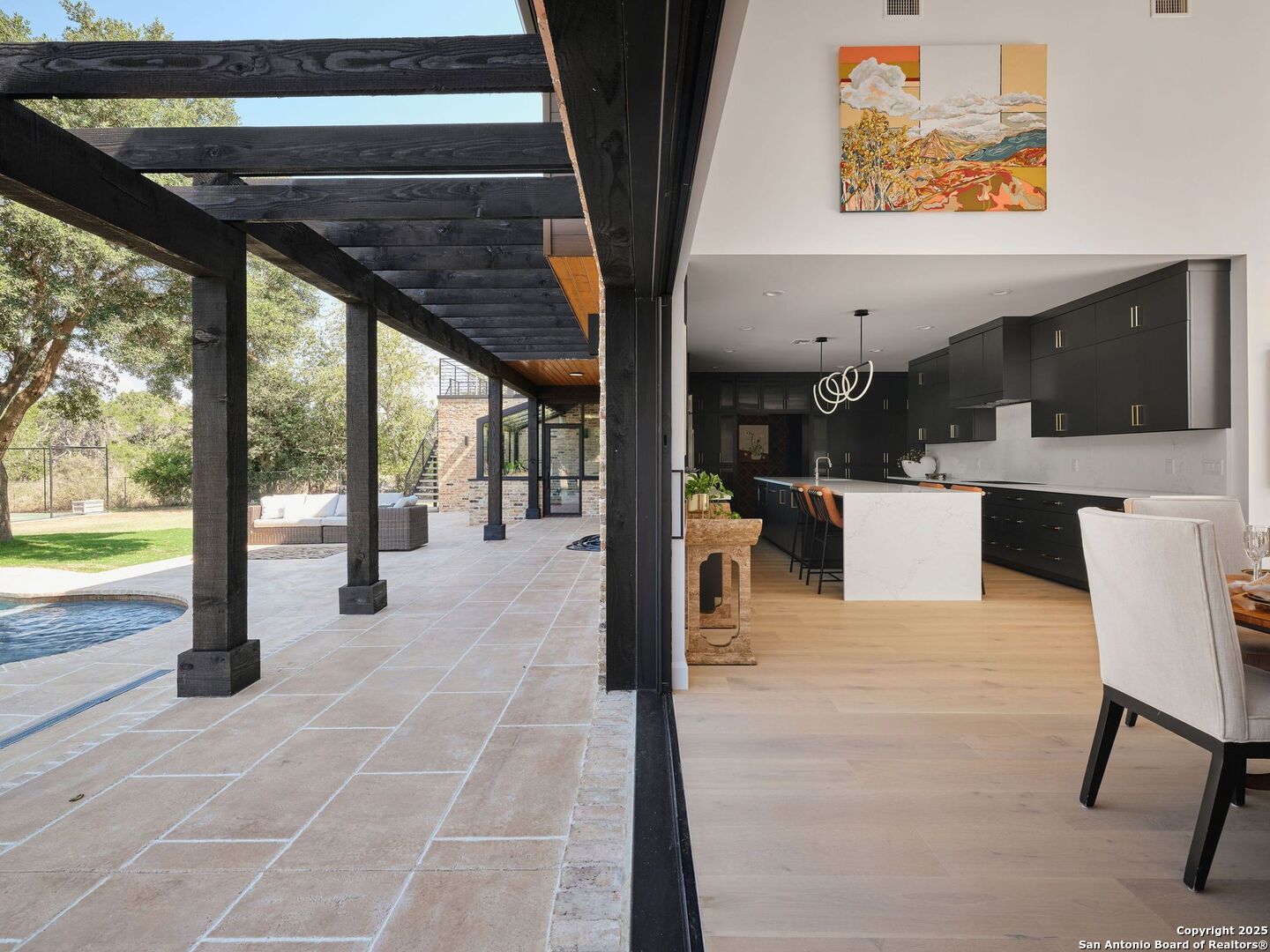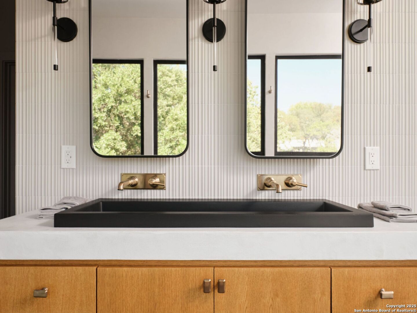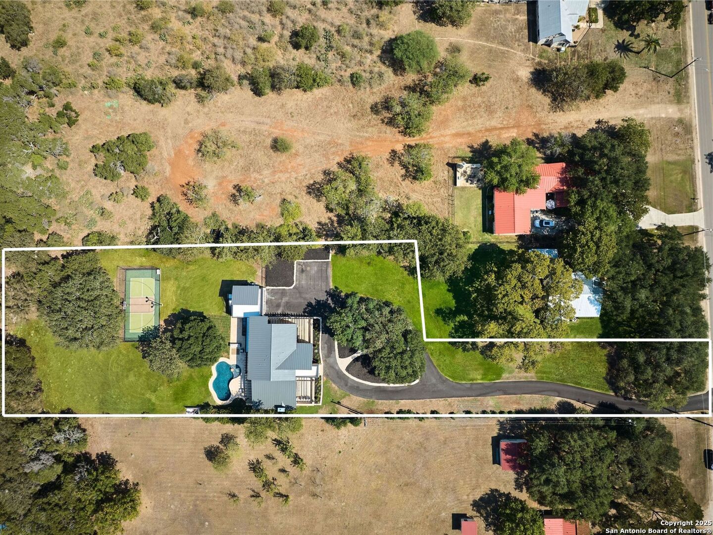 A residence of rare privilege, a fully reimagined modern estate offering the lifestyle every New Braunfels buyer dreams of with exclusive Island access to the Comal River, Keith Zars pool, pickleball court, rooftop entertaining terrace, and a catering kitchen built for unforgettable gatherings. Set on 1.37 oak-studded acres in the prestigious "On the Hill" neighborhood, the home delivers 3,689 square feet of light-filled living space where contemporary design meets timeless charm. A soaring main living area with walls of glass is anchored by a dramatic exposed brick fireplace, blending warmth with sophistication. At the heart of the home, a chef's kitchen with quartz counters, gas cooktop, double ovens, dual dishwashers, and a walk-in pantry flows seamlessly into the living and dining spaces. A versatile glass-wrapped sunroom with its own sink extends the living experience, offering flexibility for entertaining, hobbies, or quiet retreat. The primary suite is a true sanctuary with its own terrace, dual closets, a spa-inspired bath, and a private office complete with built-in bar and beverage fridge. For effortless outdoor connection, the suite opens directly to the rooftop deck. Three additional bedrooms and a total of four laundry rooms ensure comfort and convenience for family and guests. Outdoors, the property unfolds as a private resort. A sparkling Keith Zars pool, pickleball/sport court, and sweeping lawn provide recreation and relaxation in total privacy. What truly distinguishes this offering is its exclusive Island privilege-private, resident-only access to the Comal River. The Island offers more than just water access: enjoy sand volleyball courts, shaded picnic areas, diving boards, and private swimming zones. Whether tubing with friends, enjoying a riverfront cookout, or spending a quiet day by the water, this amenity is reserved for only a select few and rarely available in today's market. With a two-car garage, circle driveway, and brand-new construction from top to bottom, The One On the Hill is as turnkey as it is extraordinary. All within moments of Landa Park, downtown New Braunfels' dining and music scene, and the cultural charm of the Texas Hill Country. This is not simply a home, but an opportunity to claim The One On the Hill-modern luxury, private river access, and a legacy address on Lakeview Boulevard.