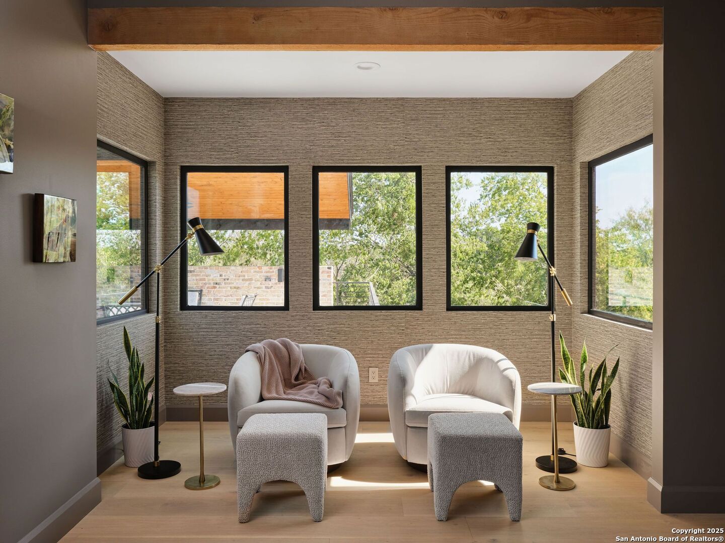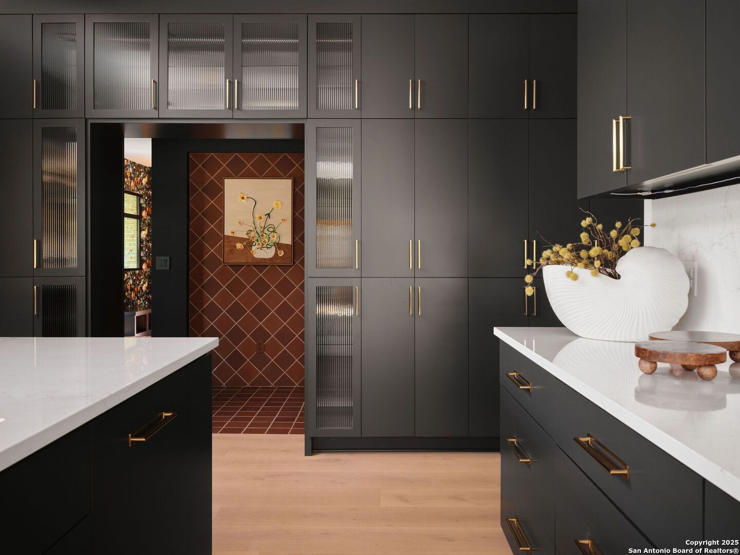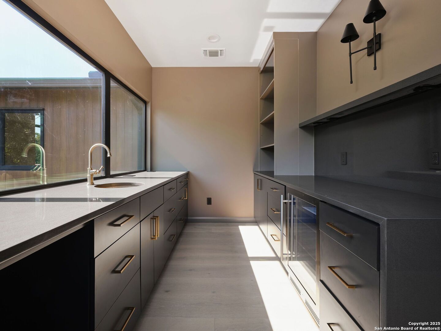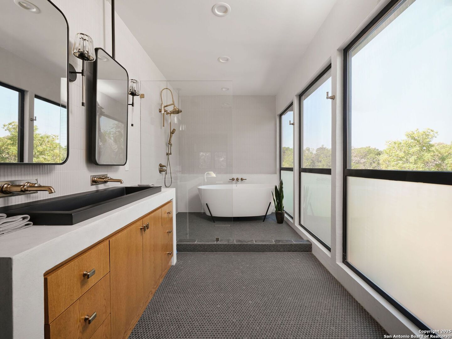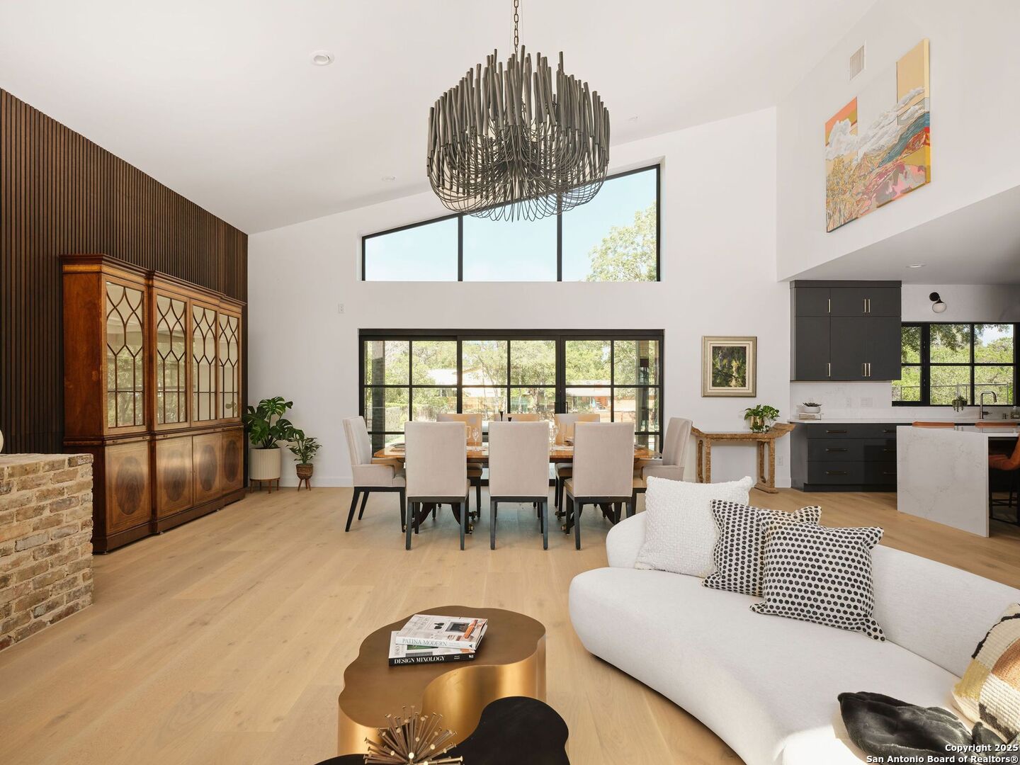 A residence of rare privilege, a fully reimagined modern estate offering the lifestyle every New Braunfels buyer dreams of with exclusive Island access to the Comal River, Keith Zars pool, pickleball court, rooftop entertaining terrace, and a catering kitchen built for unforgettable gatherings. Set on 1.37 oak-studded acres in the prestigious "On the Hill" neighborhood, the home delivers 3,689 square feet of light-filled living space where contemporary design meets timeless charm. A soaring main living area with walls of glass is anchored by a dramatic exposed brick fireplace, blending warmth with sophistication. At the heart of the home, a chef's kitchen with quartz counters, gas cooktop, double ovens, dual dishwashers, and a walk-in pantry flows seamlessly into the living and dining spaces. A versatile glass-wrapped sunroom with its own sink extends the living experience, offering flexibility for entertaining, hobbies, or quiet retreat. The primary suite is a true sanctuary with its own terrace, dual closets, a spa-inspired bath, and a private office complete with built-in bar and beverage fridge. For effortless outdoor connection, the suite opens directly to the rooftop deck. Three additional bedrooms and a total of four laundry rooms ensure comfort and convenience for family and guests. Outdoors, the property unfolds as a private resort. A sparkling Keith Zars pool, pickleball/sport court, and sweeping lawn provide recreation and relaxation in total privacy. What truly distinguishes this offering is its exclusive Island privilege-private, resident-only access to the Comal River. The Island offers more than just water access: enjoy sand volleyball courts, shaded picnic areas, diving boards, and private swimming zones. Whether tubing with friends, enjoying a riverfront cookout, or spending a quiet day by the water, this amenity is reserved for only a select few and rarely available in today's market. With a two-car garage, circle driveway, and brand-new construction from top to bottom, The One On the Hill is as turnkey as it is extraordinary. All within moments of Landa Park, downtown New Braunfels' dining and music scene, and the cultural charm of the Texas Hill Country. This is not simply a home, but an opportunity to claim The One On the Hill-modern luxury, private river access, and a legacy address on Lakeview Boulevard.
