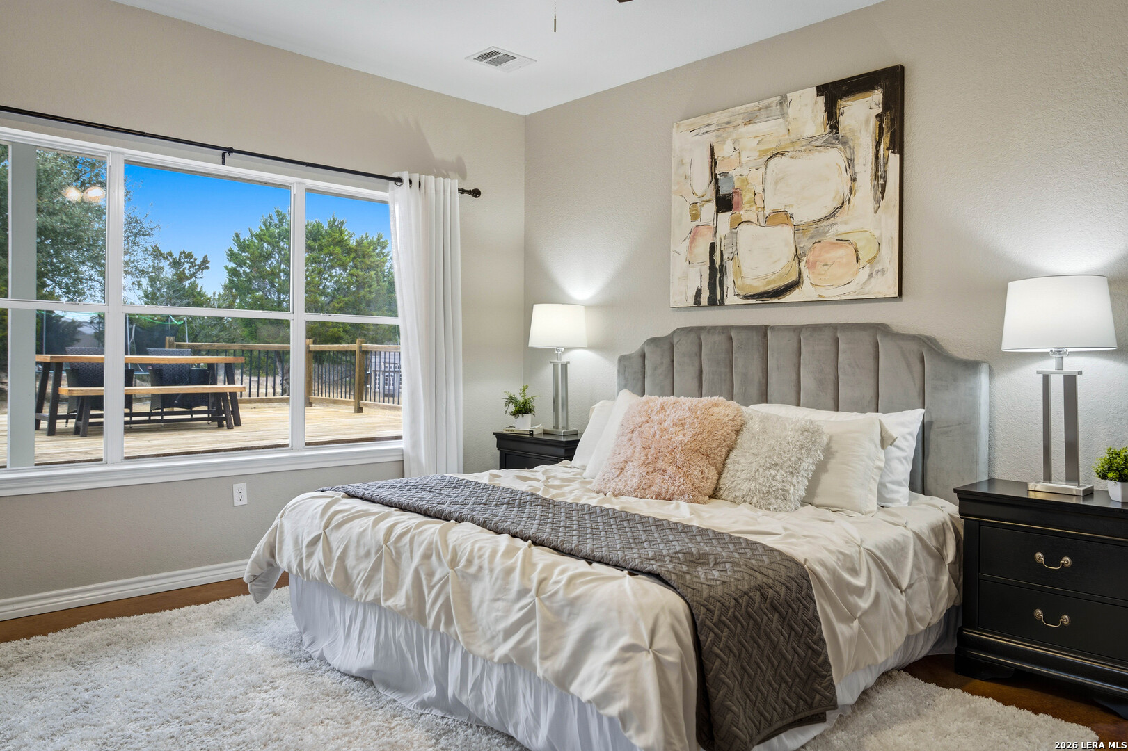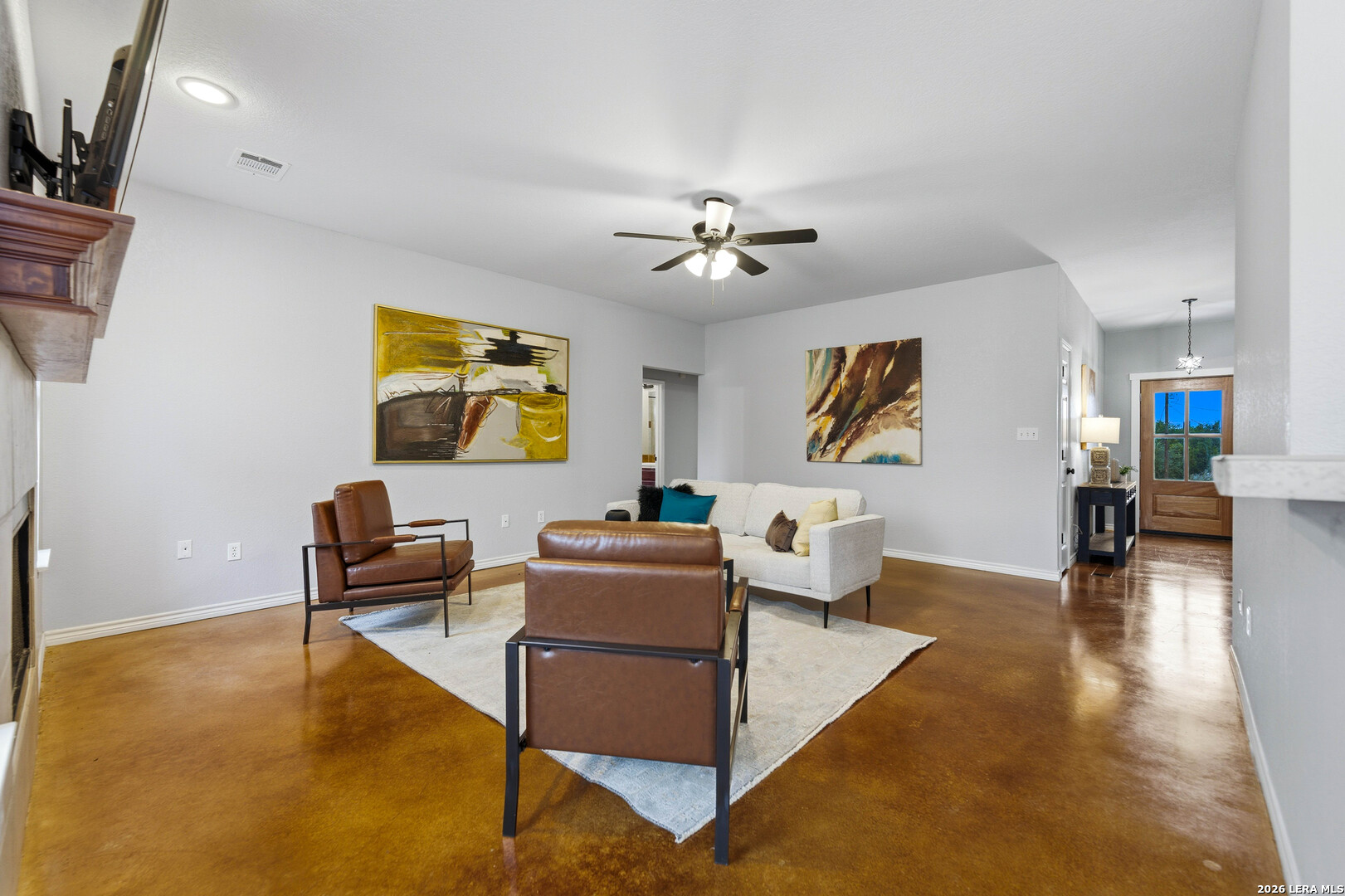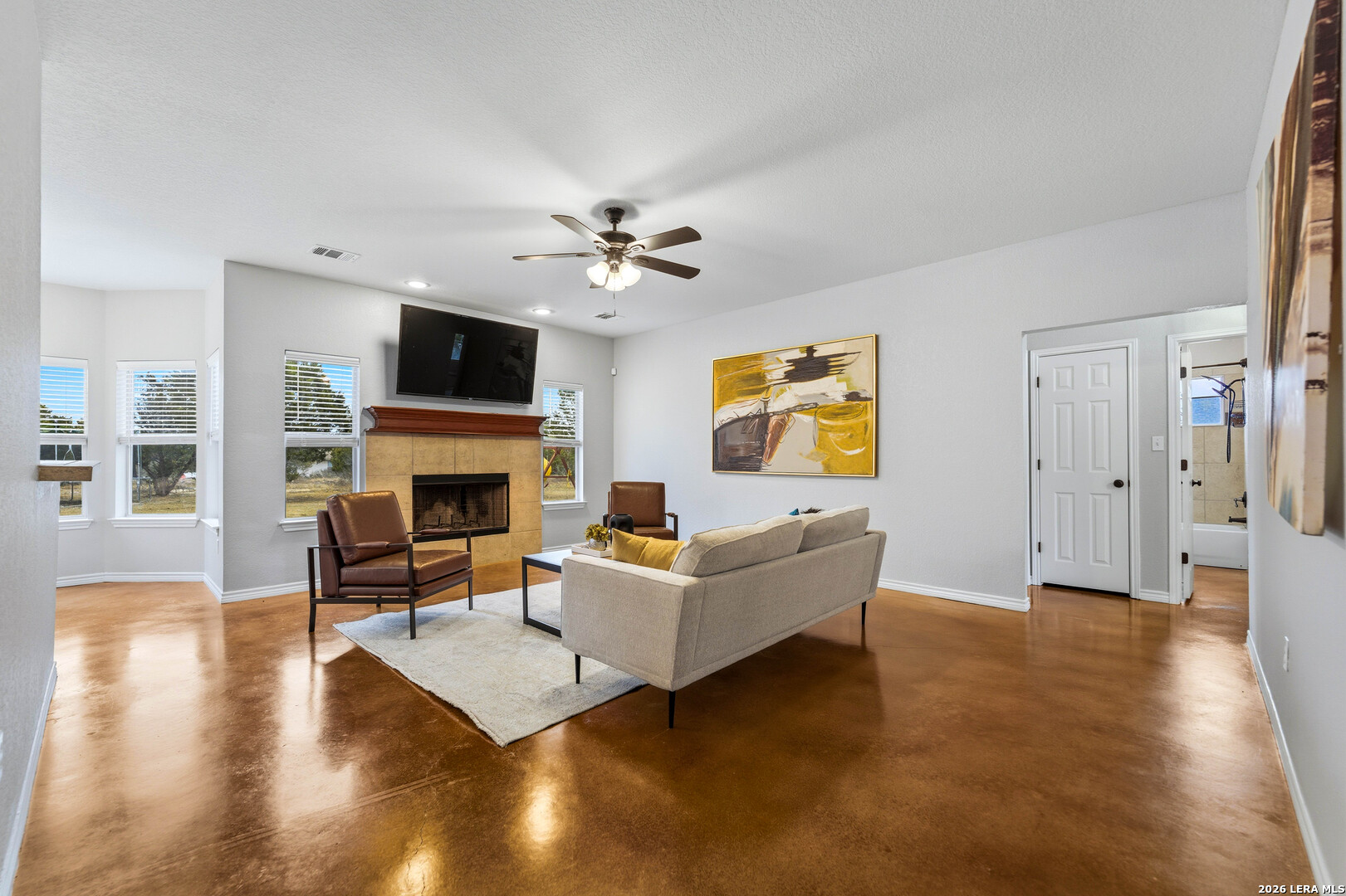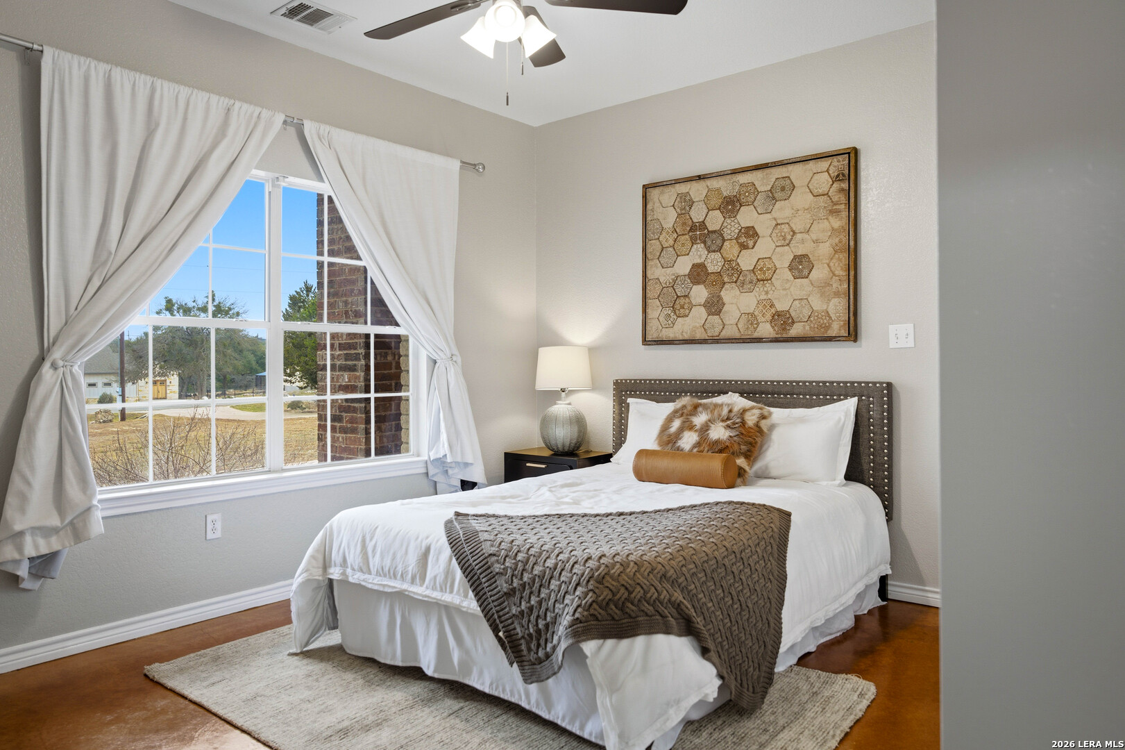 Welcome to hill country living at its finest. This 2062 sqft home is nestled on a peaceful and flat 1-acre lot in the prestigious Mystic Shores of Canyon Lake. Offering 4 bedrooms, 2 full baths, this residence features an open layout with stained-concrete floors throughout. Improvements such as new AC unit (2024), new hot water heater (2023), fresh exterior paint (2023), roof (2016) have been taken care of for you! This home is less than a half mile walk to the beautiful gated 140 acre nature preserve. Follow the maintained gravel road/walking trail down to the community river park at the Guadalupe River. Bring your fishing pole and look for deer antlers and wildlife along the way. Located off Hwy 306, you're just minutes from San Antonio, New Braunfels, Fredericksburg, Wimberly, Bulverde/Sprig Branch, and other Hill Country destinations. For those who value privacy, natural beauty and resort-style amenities, this home delivers! Mystic Shores amenities include two community pools, lakeside and riverside parks, sports courts (basketball, tennis, volleyball and pickle ball), community boat ramp, nature preserve, community boat/RV storage, and community exercise room. Don't miss this rare opportunity for hill country living, morning walks down to the river, and afternoons by the lake in the prestigious Mystic Shores. You won't find a better deal in this neighborhood.
