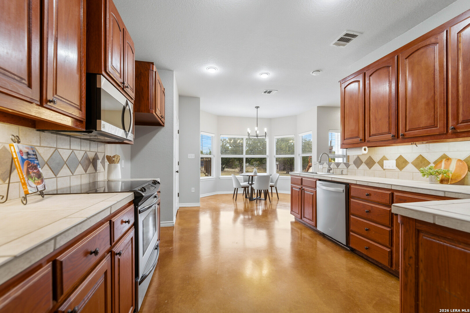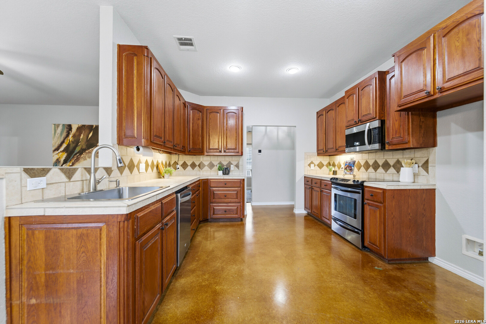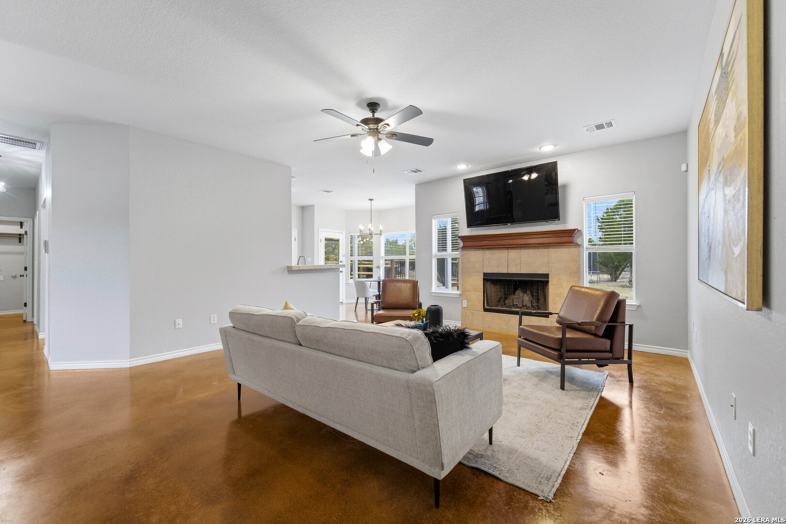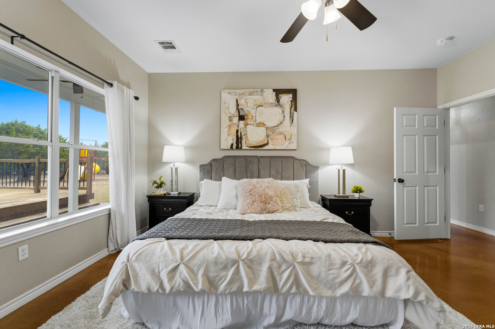 Welcome to hill country living at its finest. This 2062 sqft home is nestled on a peaceful and flat 1-acre lot in the prestigious Mystic Shores of Canyon Lake. Offering 4 bedrooms, 2 full baths, this residence features an open layout with stained-concrete floors throughout. Improvements such as new AC unit (2024), new hot water heater (2023), fresh exterior paint (2023), roof (2016) have been taken care of for you! This home is less than a half mile walk to the beautiful gated 140 acre nature preserve. Follow the maintained gravel road/walking trail down to the community river park at the Guadalupe River. Bring your fishing pole and look for deer antlers and wildlife along the way. Located off Hwy 306, you're just minutes from San Antonio, New Braunfels, Fredericksburg, Wimberly, Bulverde/Sprig Branch, and other Hill Country destinations. For those who value privacy, natural beauty and resort-style amenities, this home delivers! Mystic Shores amenities include two community pools, lakeside and riverside parks, sports courts (basketball, tennis, volleyball and pickle ball), community boat ramp, nature preserve, community boat/RV storage, and community exercise room. Don't miss this rare opportunity for hill country living, morning walks down to the river, and afternoons by the lake in the prestigious Mystic Shores. You won't find a better deal in this neighborhood.