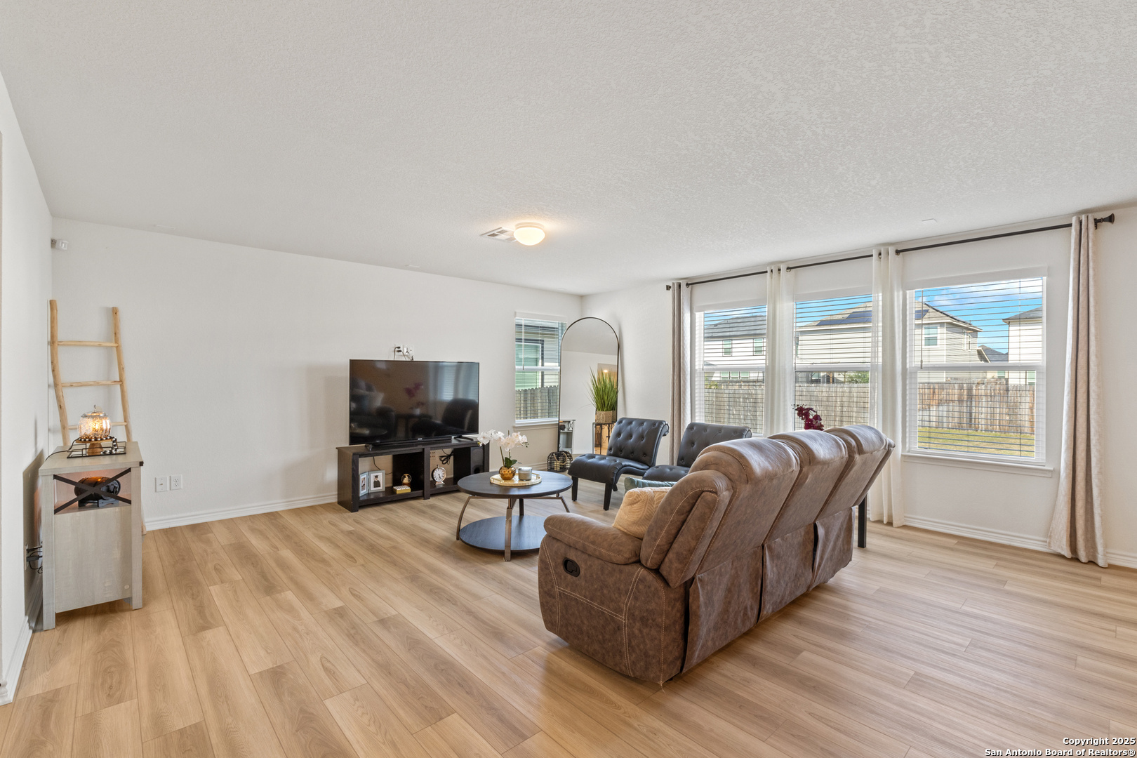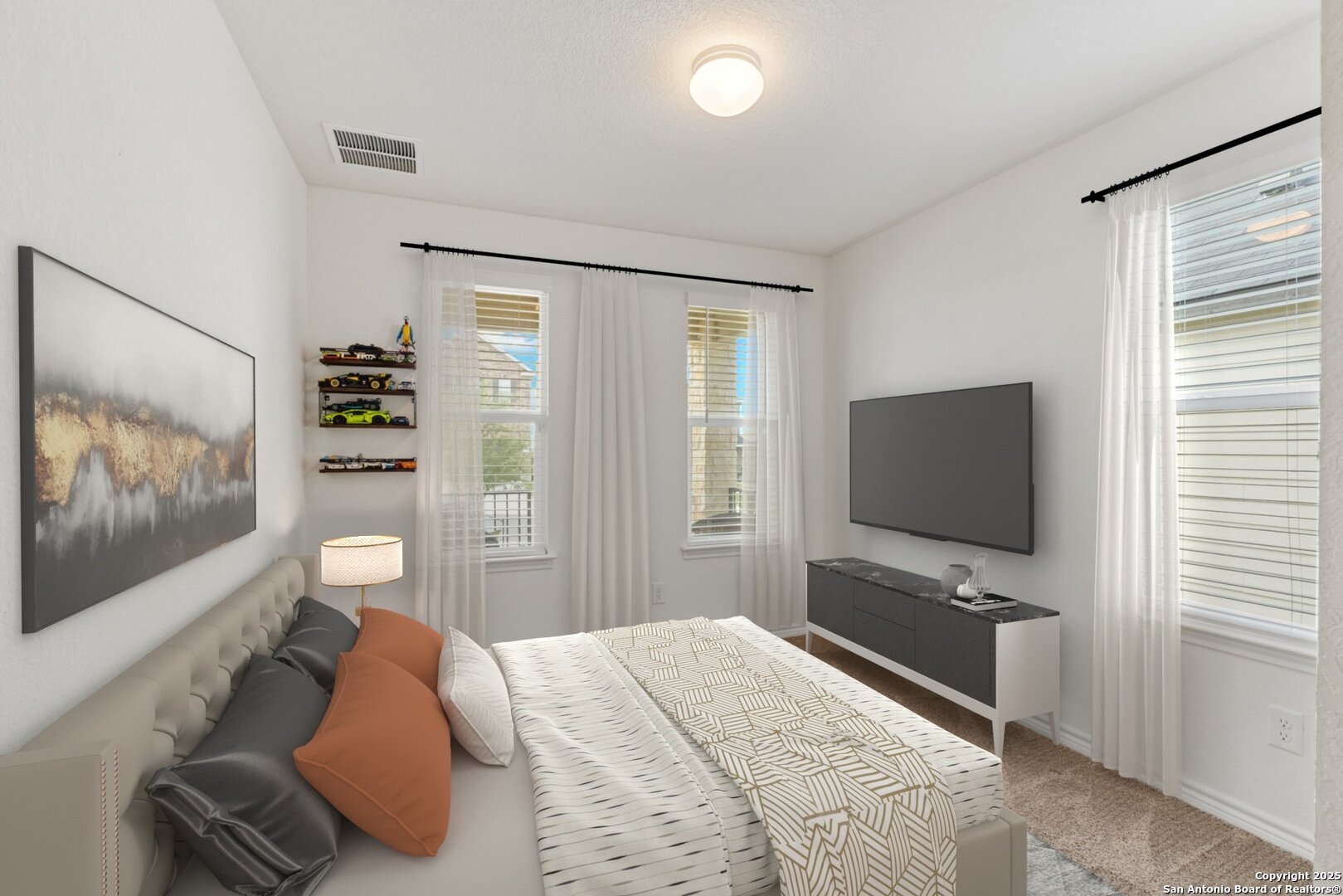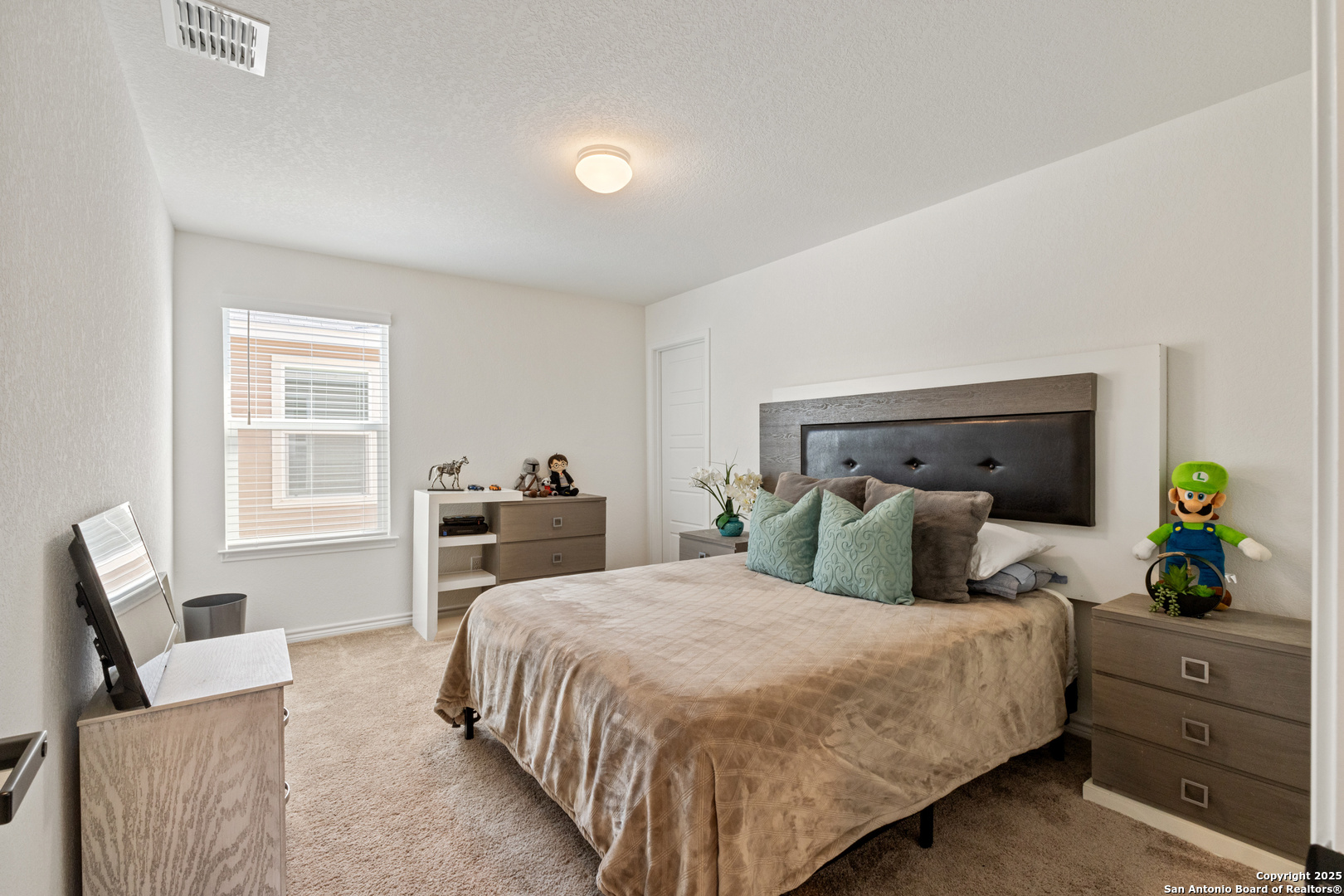 Welcome to this beautiful recently built KB Home located in the desirable Champions Manor community. This spacious two-story home features 5 bedrooms and 3.5 bathrooms, all nestled on a generously sized lot. Upon entering, you'll be greeted by a bright, open-concept floor plan that seamlessly flows into the kitchen which boasts stainless steel appliances, a large island, and ample cabinetry for all your storage needs. The first floor also offers a private guest bedroom with a full bathroom, making it ideal for visitors or as a dedicated office space. Upstairs, you'll find a generously sized primary suite, offering an expansive bathroom with a shower/tub combo, large double vanity, and a roomy walk-in closet. The second floor also includes a versatile game room/loft, plus 3 additional bedrooms to accommodate your family's needs. Outside, the large backyard with plenty of room is perfect for family and friend's gatherings. Conveniently located near 1604 Loop, Hwy 90, shopping, and dining, this home is a must see!