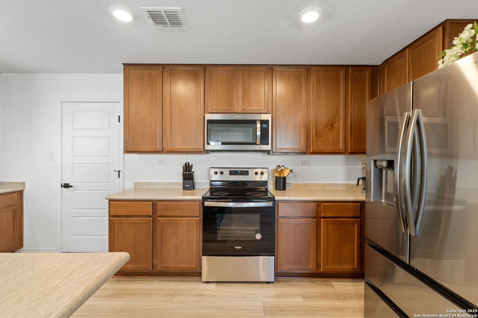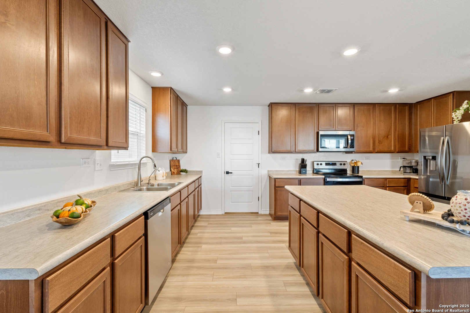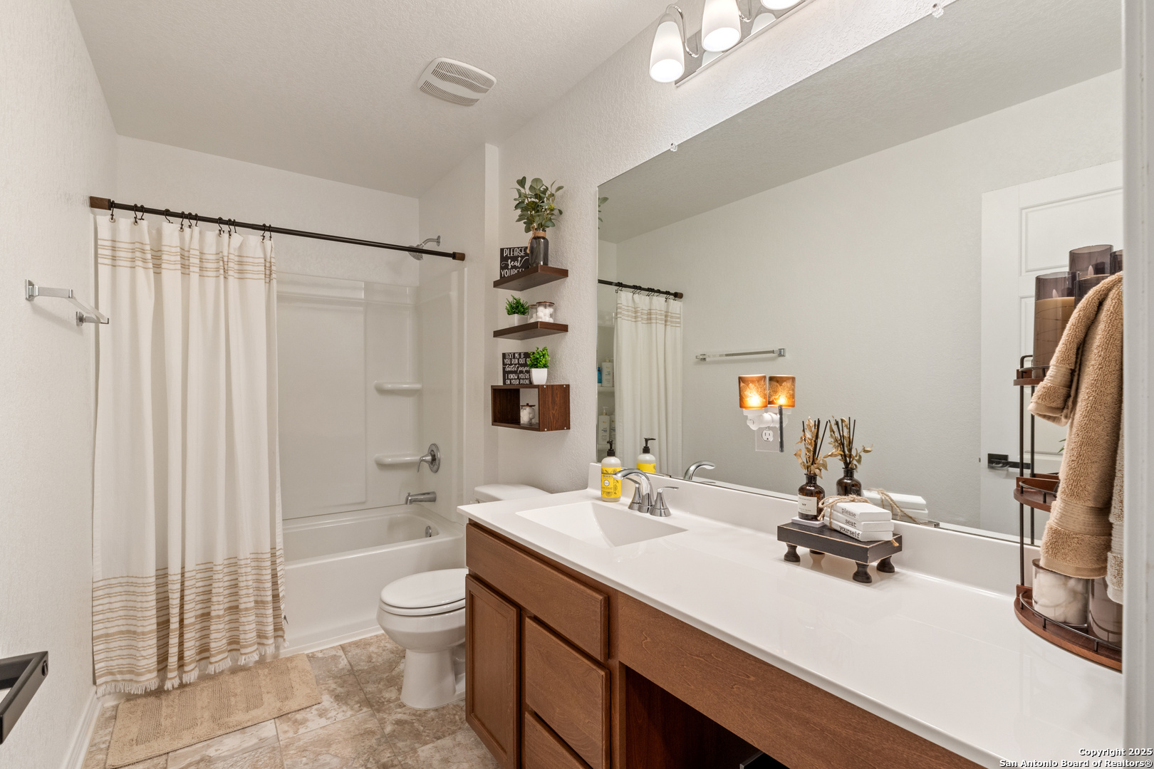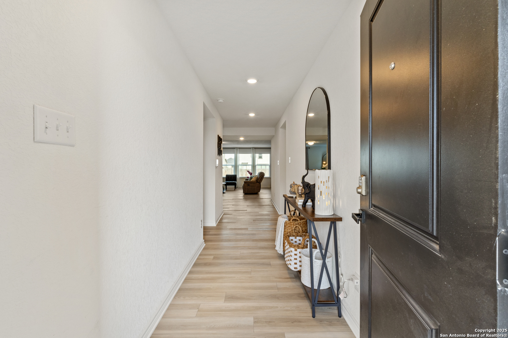 Welcome to this beautiful recently built KB Home located in the desirable Champions Manor community. This spacious two-story home features 5 bedrooms and 3.5 bathrooms, all nestled on a generously sized lot. Upon entering, you'll be greeted by a bright, open-concept floor plan that seamlessly flows into the kitchen which boasts stainless steel appliances, a large island, and ample cabinetry for all your storage needs. The first floor also offers a private guest bedroom with a full bathroom, making it ideal for visitors or as a dedicated office space. Upstairs, you'll find a generously sized primary suite, offering an expansive bathroom with a shower/tub combo, large double vanity, and a roomy walk-in closet. The second floor also includes a versatile game room/loft, plus 3 additional bedrooms to accommodate your family's needs. Outside, the large backyard with plenty of room is perfect for family and friend's gatherings. Conveniently located near 1604 Loop, Hwy 90, shopping, and dining, this home is a must see!