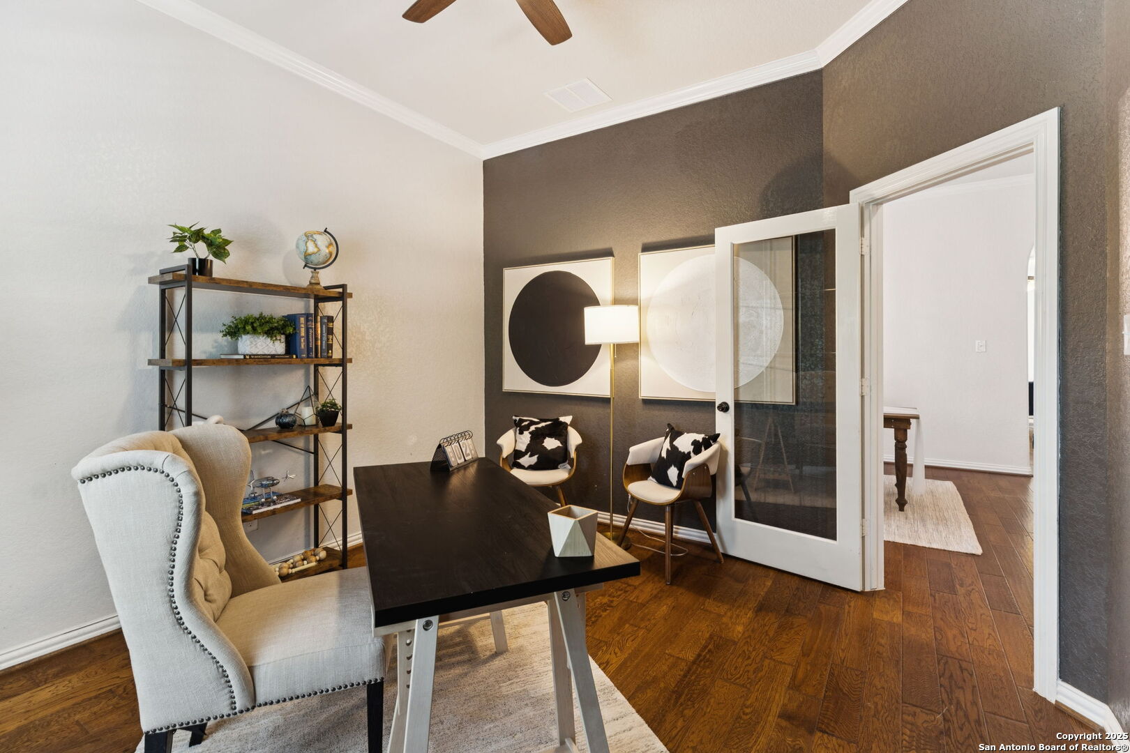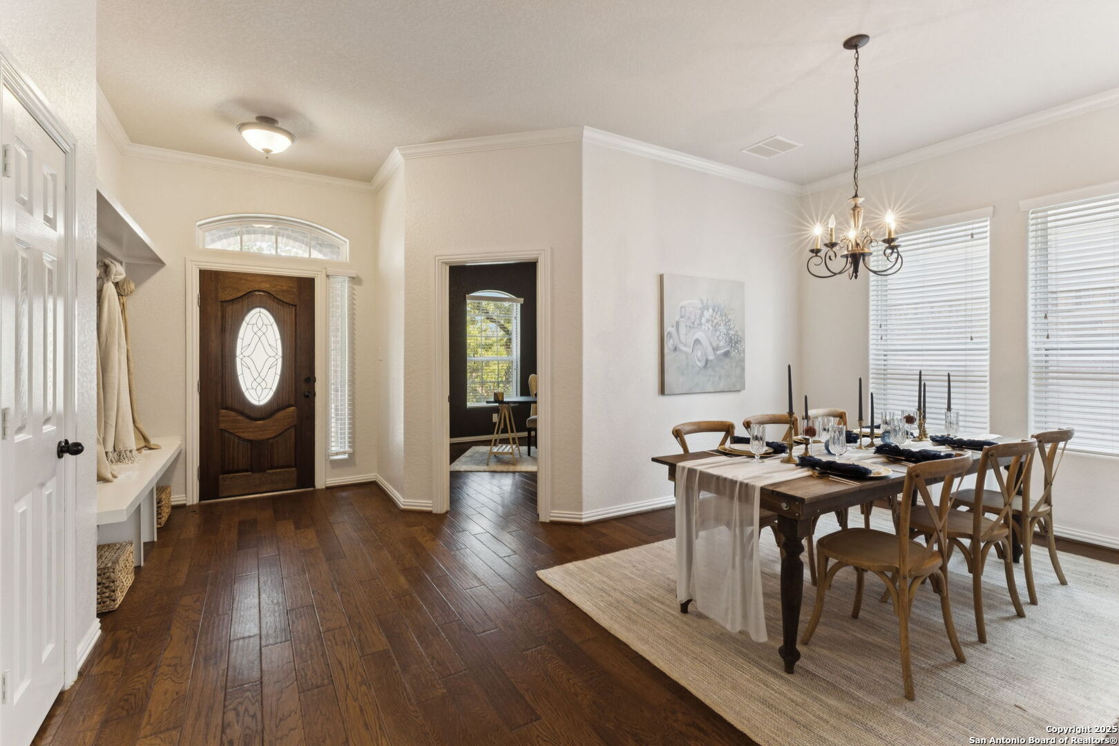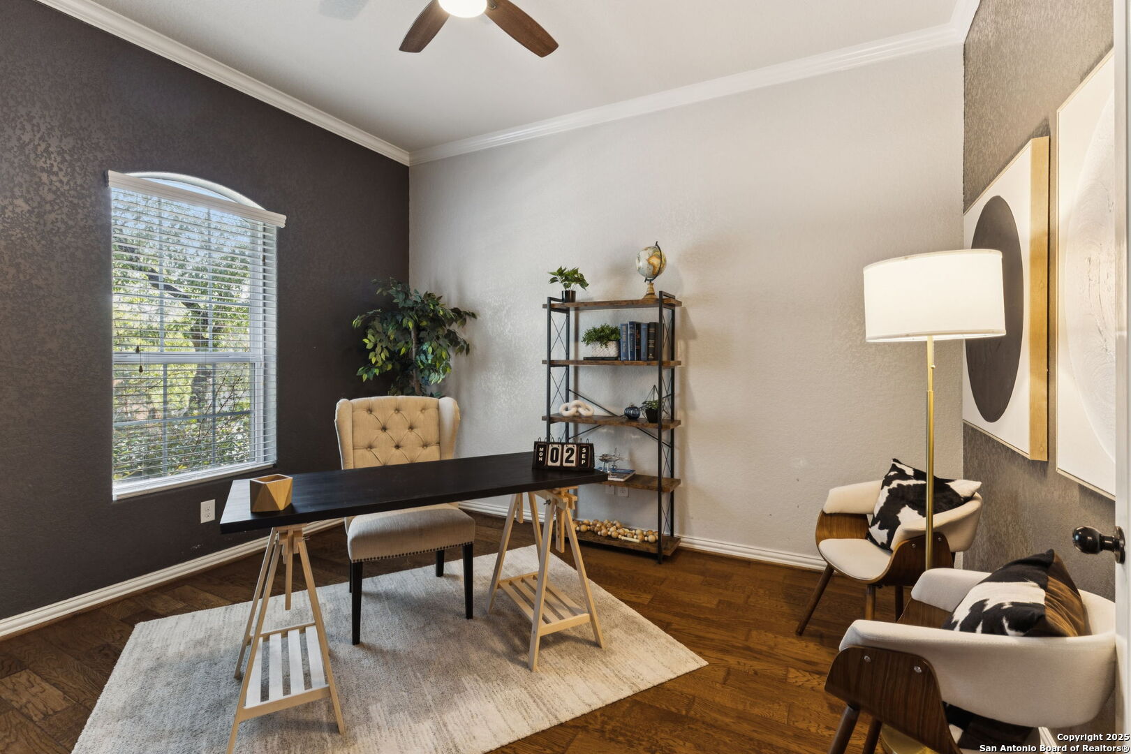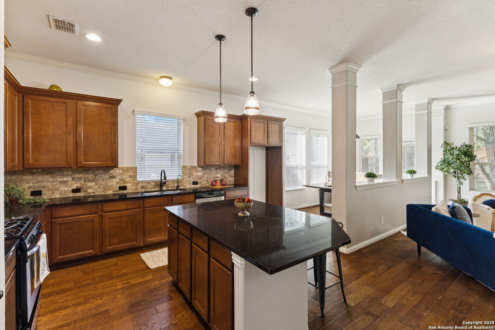 Welcome to 3539 Arroyo Grande in The Estates at Arroyo Crossing, a gated enclave of Alamo Ranch. Built by David Weekley, this home features 4 bedrooms, 2.5 bathrooms, plus a dedicated office, flex room, formal dining, breakfast nook, and an upstairs "game room" or "4th bedroom". The open layout highlights a granite island kitchen with gas cooking, a spacious living room with stone fireplace, and a private primary suite on the main floor. Outdoors, enjoy the covered patio, stone firepit, and mature trees creating a private retreat. Conveniently located near shopping, dining, schools, and major highways.