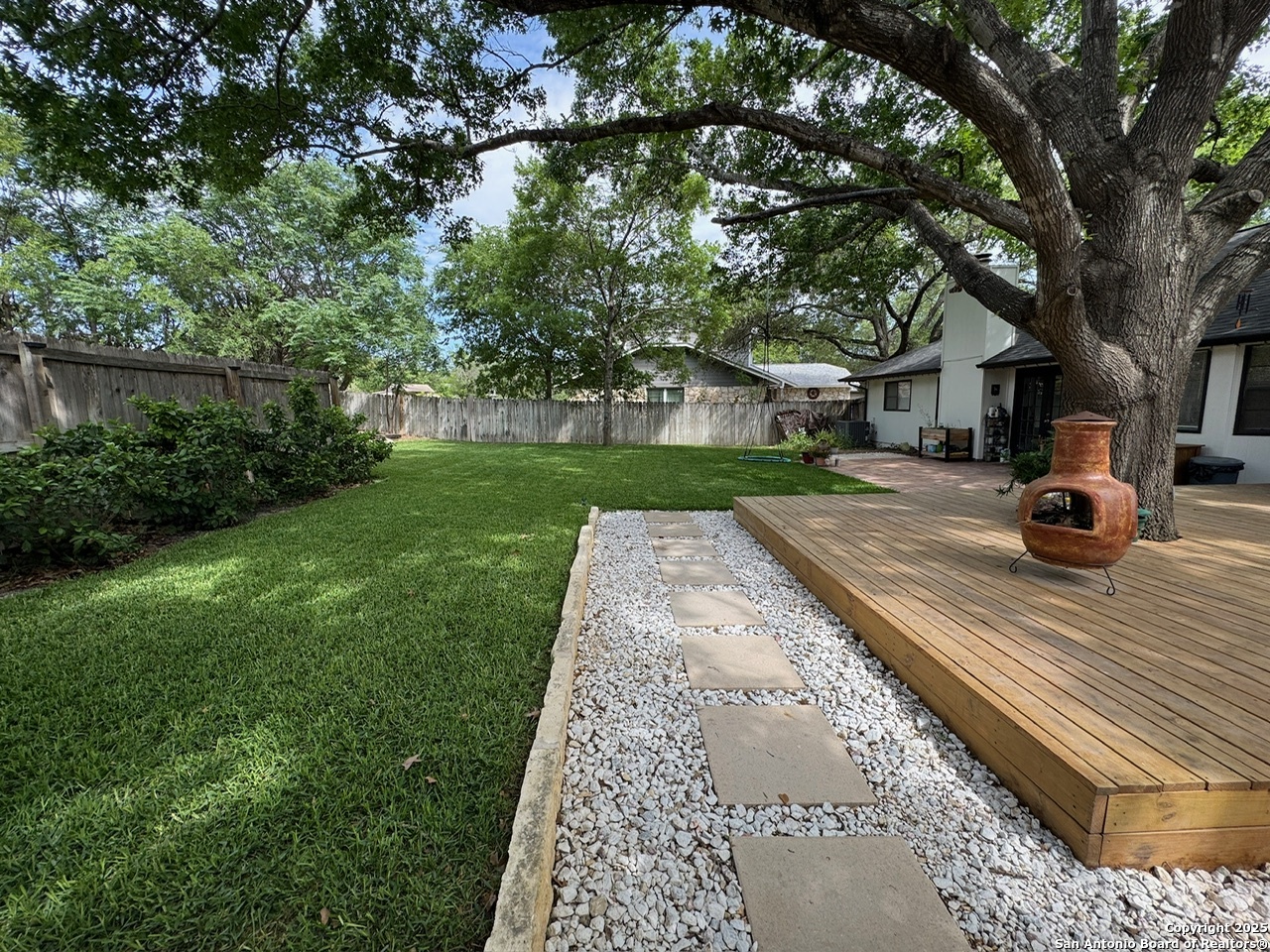 Discover this beautifully remodeled single-story home nestled in high desired neighborhood of Eden. This spacious 4 bedrooms, 2 bath home has been remodeled, perfectly blending classic charm with contemporary updates. The open floor plan is ideal for entertaining, the expansive living and dining areas flow seamlessly, creating a welcoming atmosphere. Kitchen has been modernized equipped with updated appliances and ample counter space, it's a culinary enthusiast's dream! Step into a spacious backyard adorned with a large deck and mature trees, perfect for BBQs and gatherings. Situated in the desirable Eden subdivision, enjoy the tranquility of a well-established community without the constraints of an HOA. Benefit from proximity to top-rated schools in the North East I.S.D., shopping centers, dining, and major highways, making daily commutes a breeze. Don't miss this opportunity to own this gem in San Antonio, it won't last long!