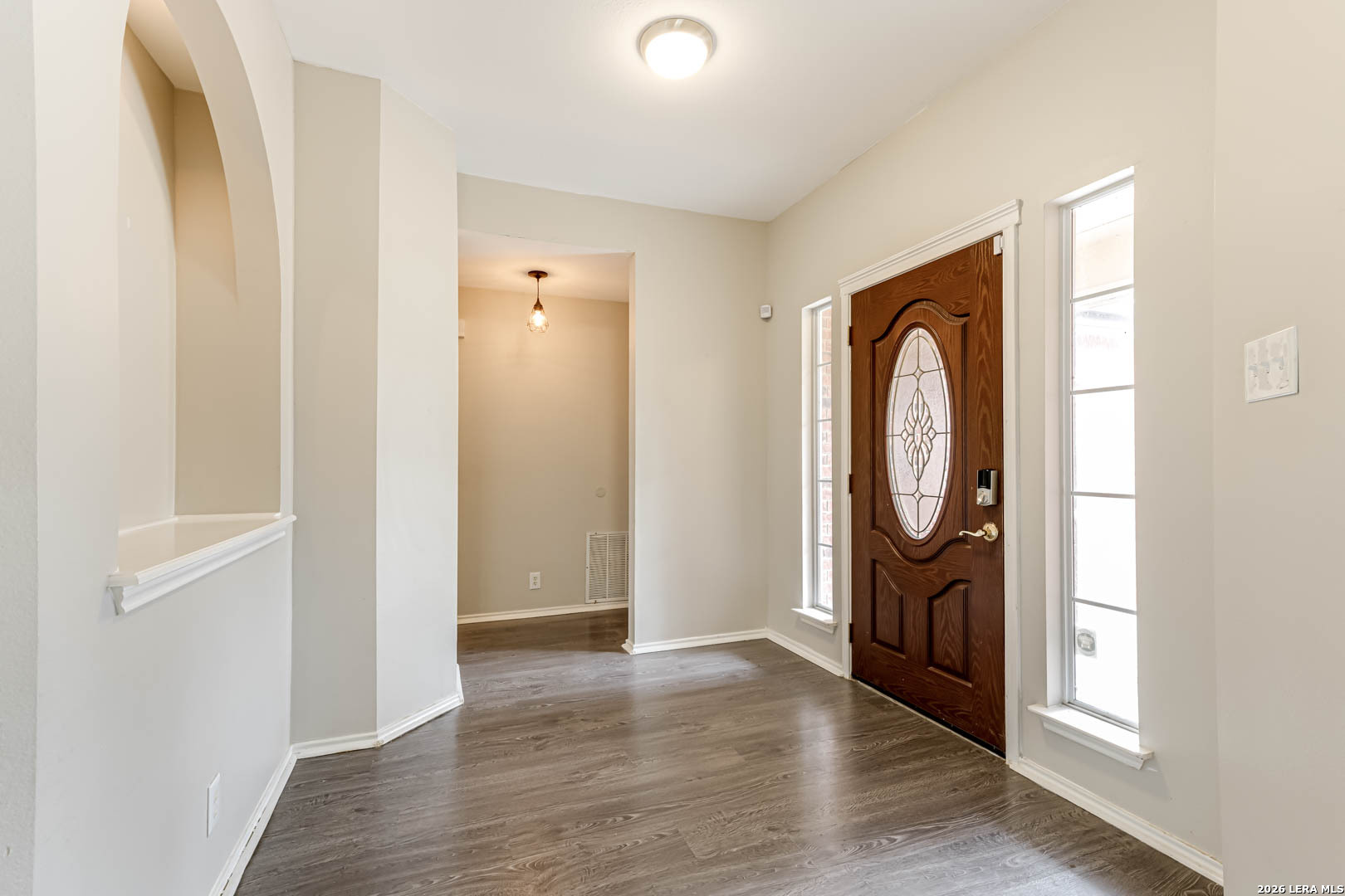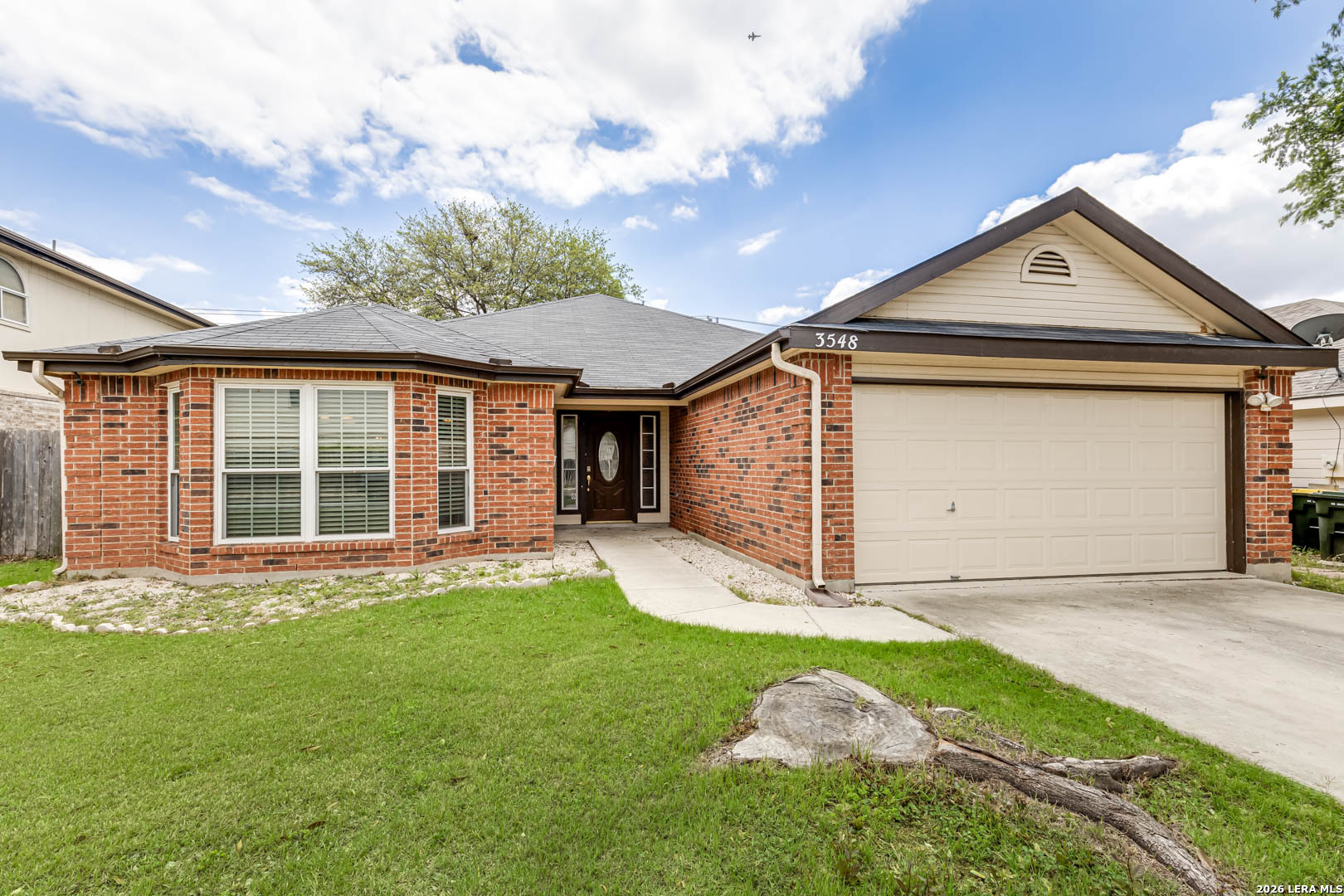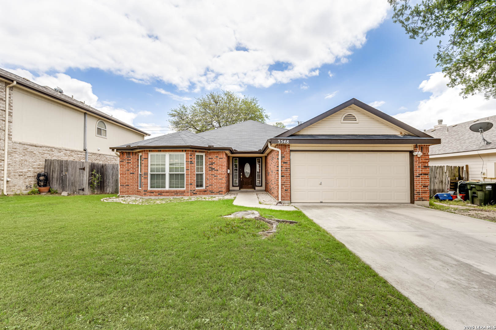 This 3-bedroom, 2-bath home in Carolina Crossing has a functional, open layout. Wood-look flooring runs through the main living areas. The living room connects to a formal dining space, offering flexibility for everyday living or entertaining. The kitchen features granite countertops, stainless steel appliances, two-tone cabinetry, a pantry, and a bay-window breakfast area. The primary suite includes a private bath with a soaking tub, separate shower, and walk-in closet. Secondary bedrooms are well-sized. Fenced backyard with patio and mature trees for shade. Convenient location near schools, parks, shopping, dining, and quick access to I-35.