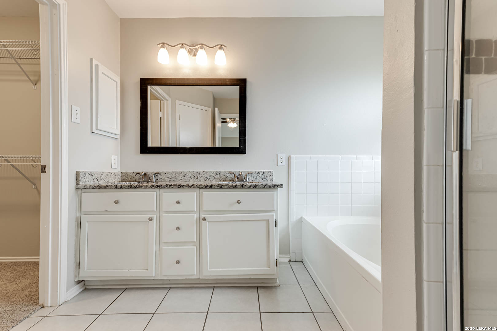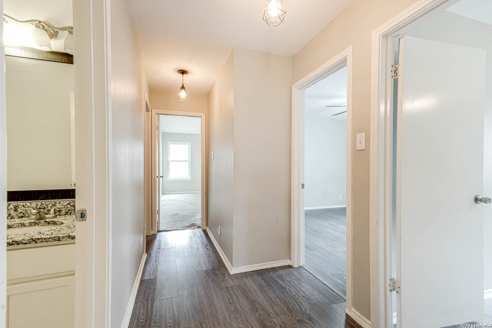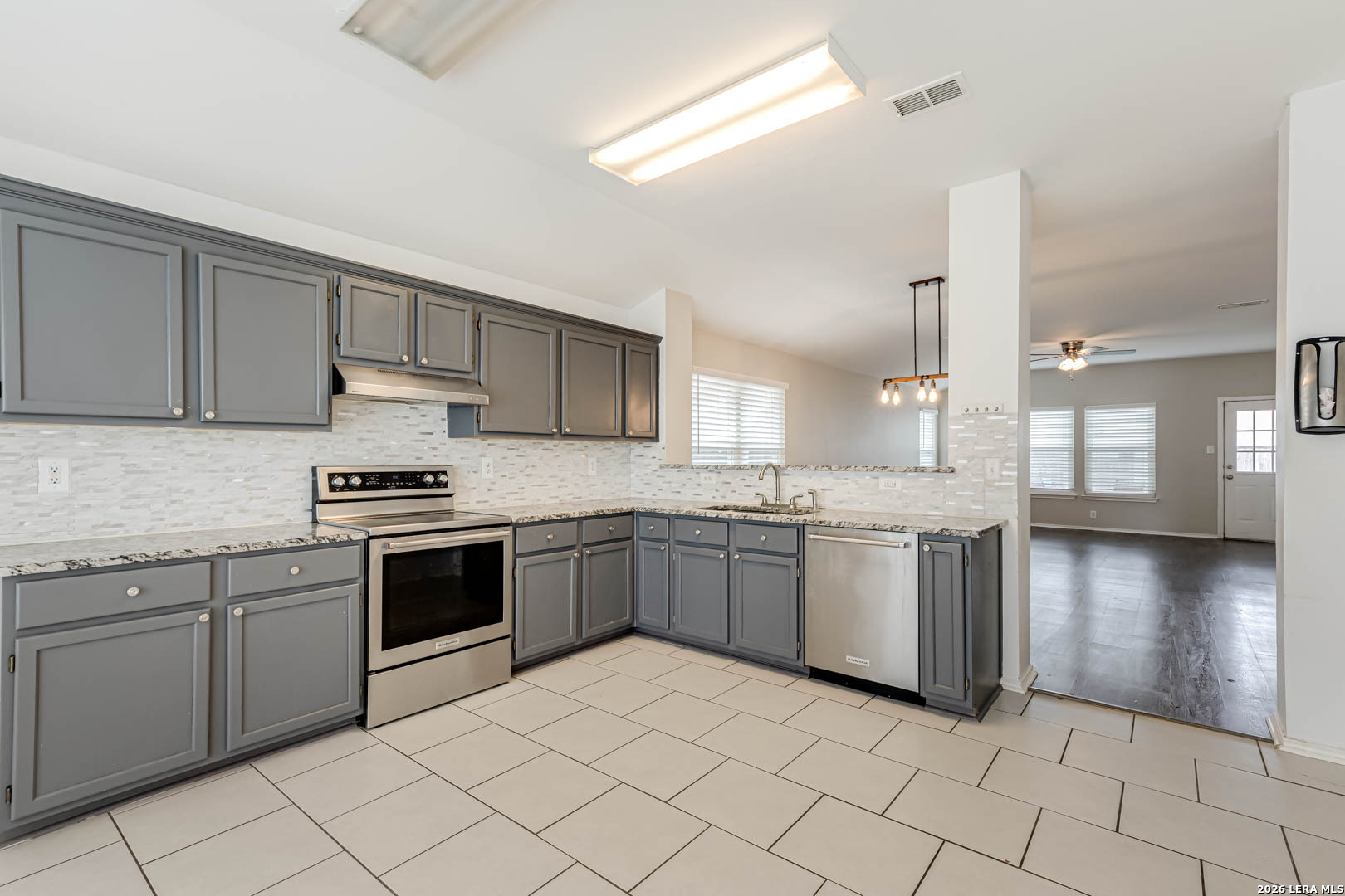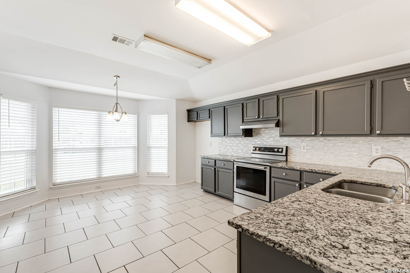 This 3-bedroom, 2-bath home in Carolina Crossing has a functional, open layout. Wood-look flooring runs through the main living areas. The living room connects to a formal dining space, offering flexibility for everyday living or entertaining. The kitchen features granite countertops, stainless steel appliances, two-tone cabinetry, a pantry, and a bay-window breakfast area. The primary suite includes a private bath with a soaking tub, separate shower, and walk-in closet. Secondary bedrooms are well-sized. Fenced backyard with patio and mature trees for shade. Convenient location near schools, parks, shopping, dining, and quick access to I-35.