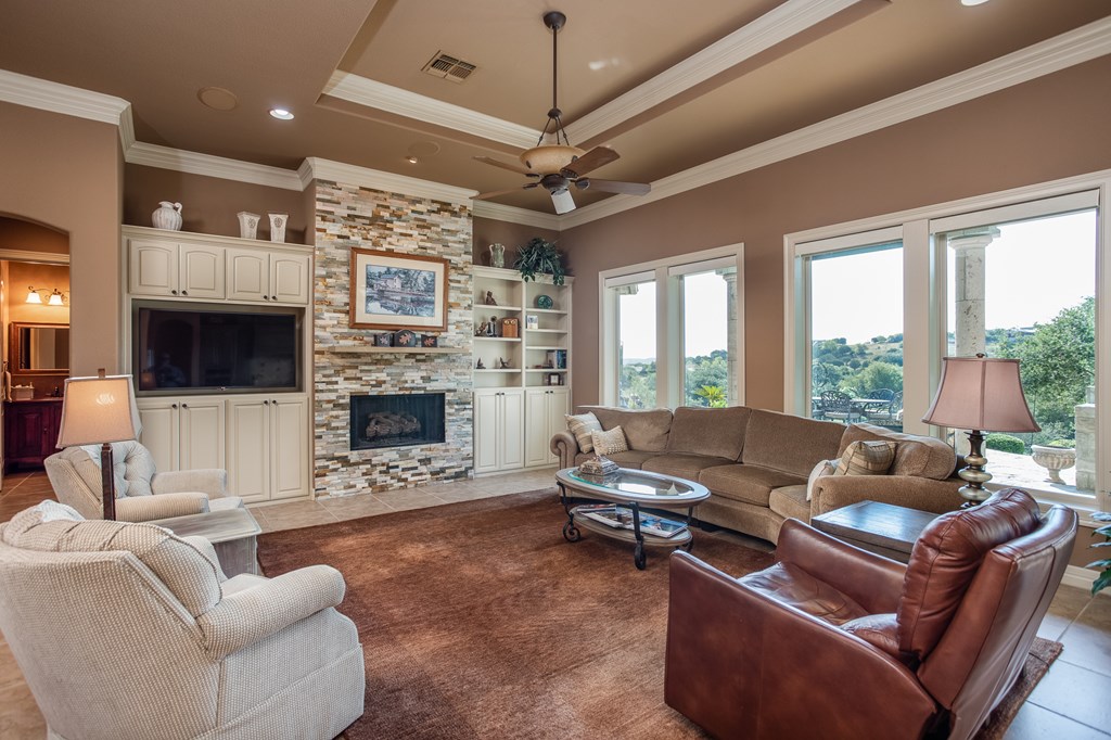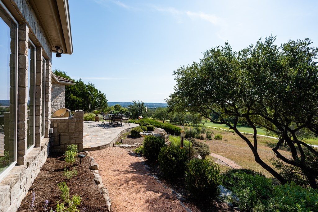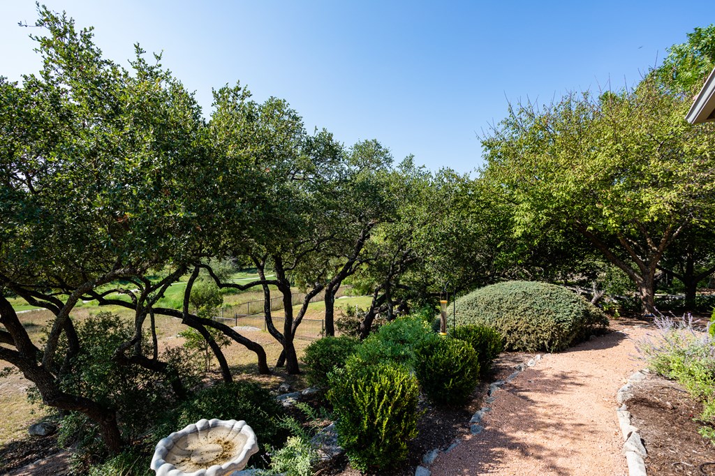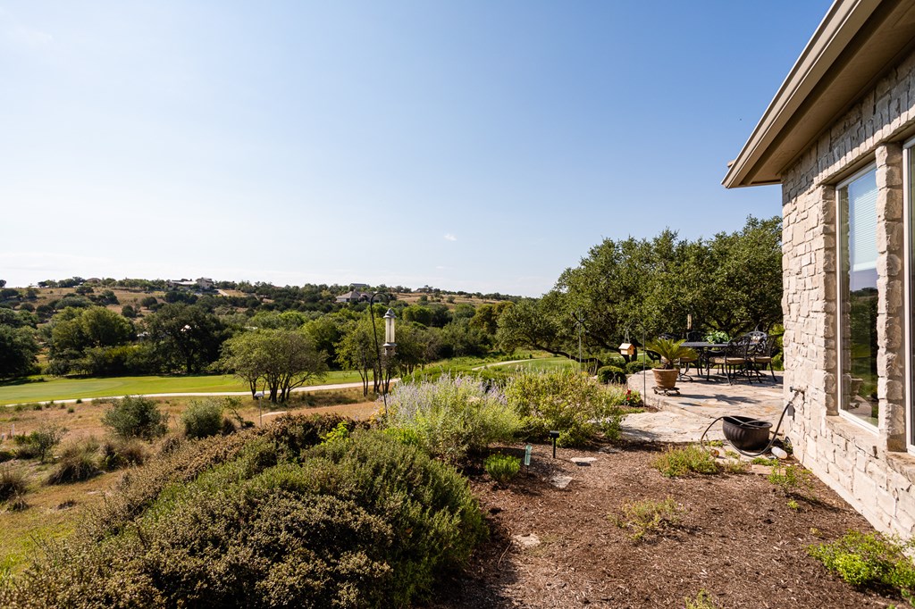 Gorgeous home in pristine condition with fabulous views of the surrounding hill country and golf course. Perfect SE exposure off the back patio. Sits on a lot and a half with beautiful trees and mature landscaping. Spacious open floor plan filled with quality and attention to detail. Step up ceilings, crown moldings, plaster walls in 3rd bedroom which is over-sized study/bedroom, built ins throughout the house, large pantry, bar area with sink & wine rack, stacked stone fireplace with gas logs, walk in shower in master and jetted tub, large laundry off master closet, mud area and large 2 1/2 car garage filled with built ins. Flagstone back patio with gas grill and steps down to the golf course. Once you step onto the back patio and enjoy the SE breeze and the spectacular views you won't want to leave! Come for the view and stay for the lifestyle. Comanche Trace is a Master-Planned community with many amenities including private Guadalupe River Park, community garden, stocked fishing lake, walking trails and more. Golf and Social Memberships are available for a separate fee.