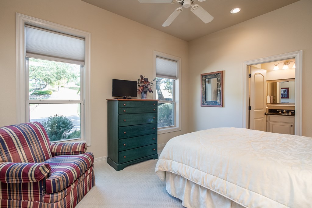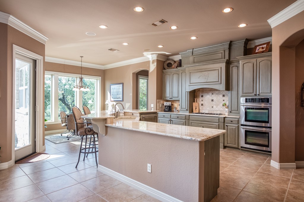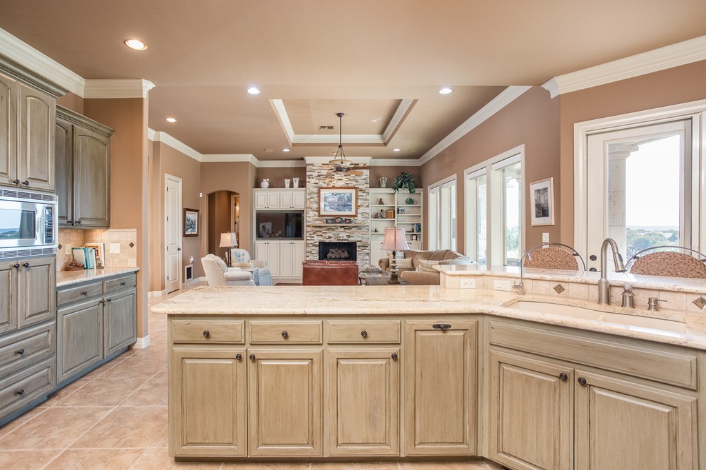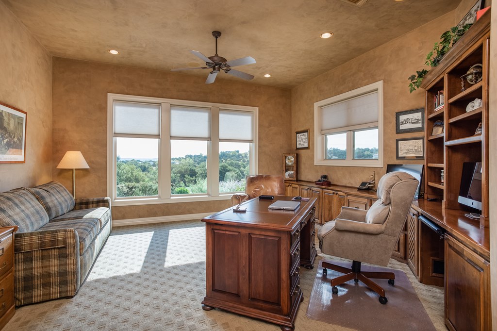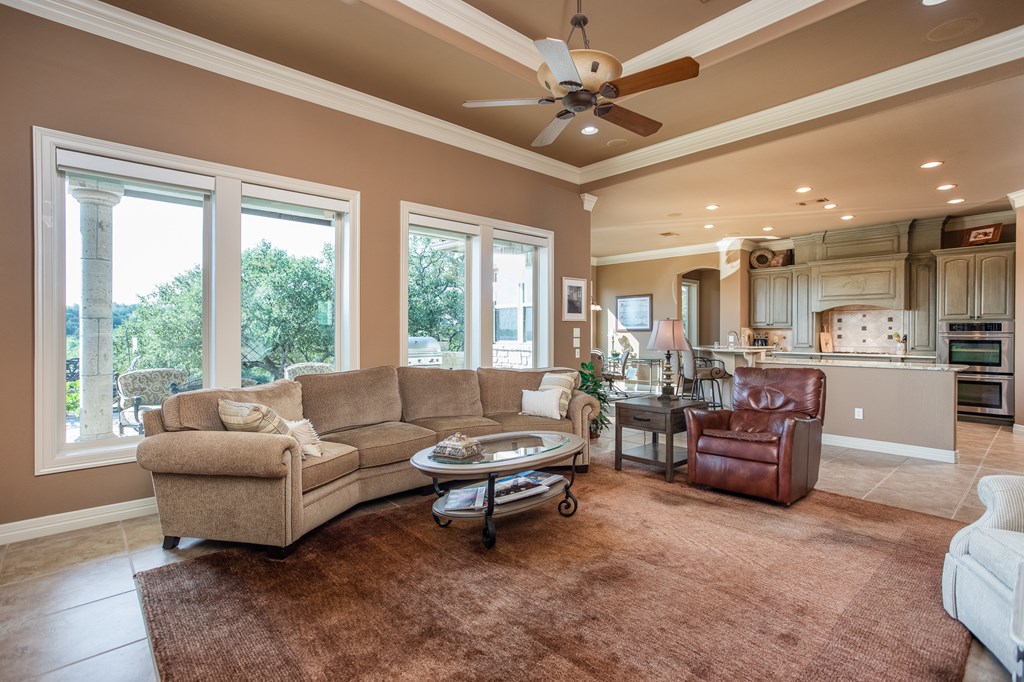 Gorgeous home in pristine condition with fabulous views of the surrounding hill country and golf course. Perfect SE exposure off the back patio. Sits on a lot and a half with beautiful trees and mature landscaping. Spacious open floor plan filled with quality and attention to detail. Step up ceilings, crown moldings, plaster walls in 3rd bedroom which is over-sized study/bedroom, built ins throughout the house, large pantry, bar area with sink & wine rack, stacked stone fireplace with gas logs, walk in shower in master and jetted tub, large laundry off master closet, mud area and large 2 1/2 car garage filled with built ins. Flagstone back patio with gas grill and steps down to the golf course. Once you step onto the back patio and enjoy the SE breeze and the spectacular views you won't want to leave! Come for the view and stay for the lifestyle. Comanche Trace is a Master-Planned community with many amenities including private Guadalupe River Park, community garden, stocked fishing lake, walking trails and more. Golf and Social Memberships are available for a separate fee.