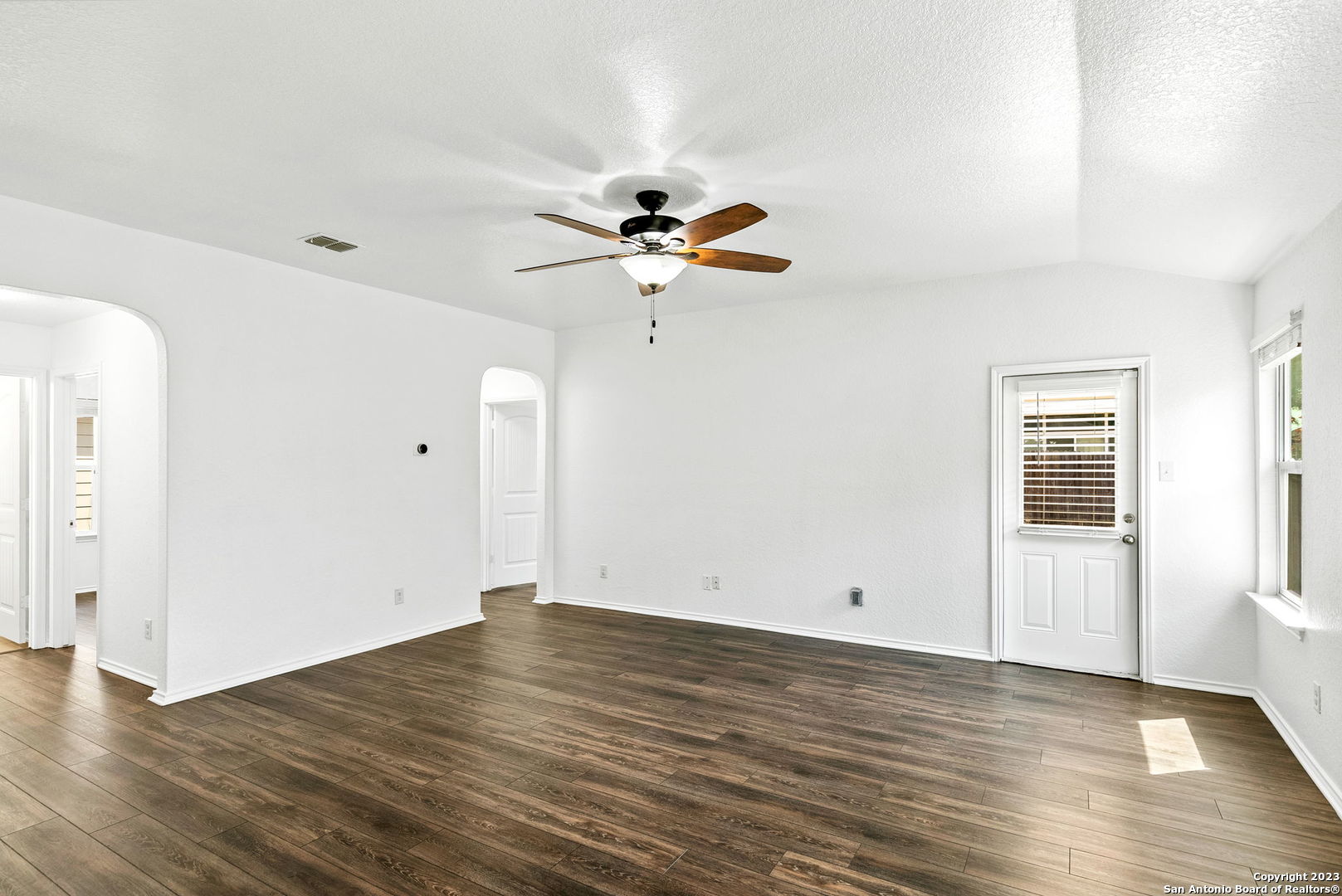 3 BEDROOM 2 BATHROOM. NO CARPET. NEW LVP FLOORS. NEWLY PAINTED. REFRIGERATOR. NEW LANDSCAPE. Warm and inviting one story ranch located in Forest Meadows. Perfectly designed with an open concept layout. Island kitchen with bar top seating. Stainless steel appliances with refrigerator included. Complete home paint with neutral color palette. New luxury vinyl plank throughout. Two car garage with epoxy floors. Park with pond and walking trails nearby. Conveniently located close to Joint Base San Antonio, Randolph, SAMC and shopping.