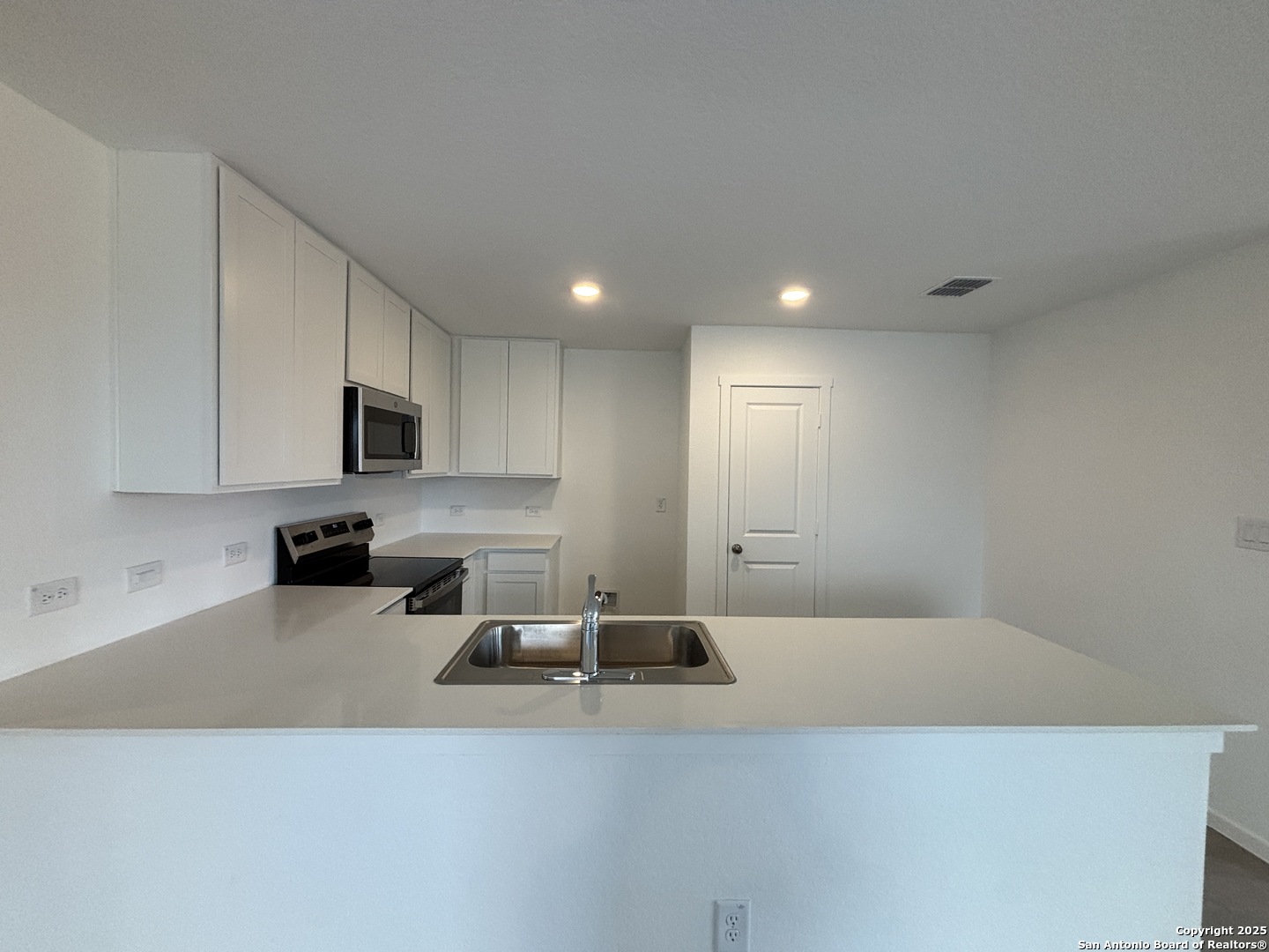 Close to I-10/1604 East Corridor and Randolph AFb. New construction. The Ramsey - This thoughtfully designed single-story home maximizes every inch of space. All three secondary bedrooms are located at the front of the layout, conveniently positioned near a full-sized bathroom. Moving down the foyer, a contemporary open-concept area connects a peninsula kitchen crafted for inspired cooking, a cozy dining space, and a welcoming family room perfect for gatherings. Nestled in a private corner, the owner's suite features its own bathroom and a spacious walk-in closet. Come claim it as your home.