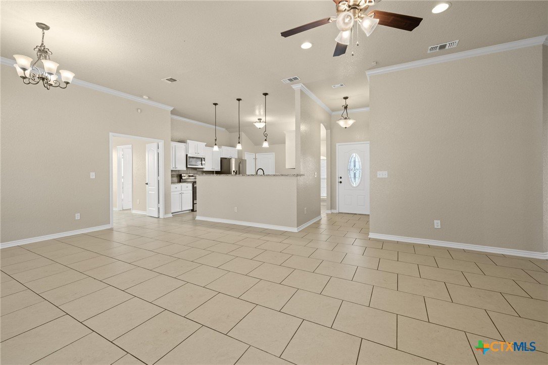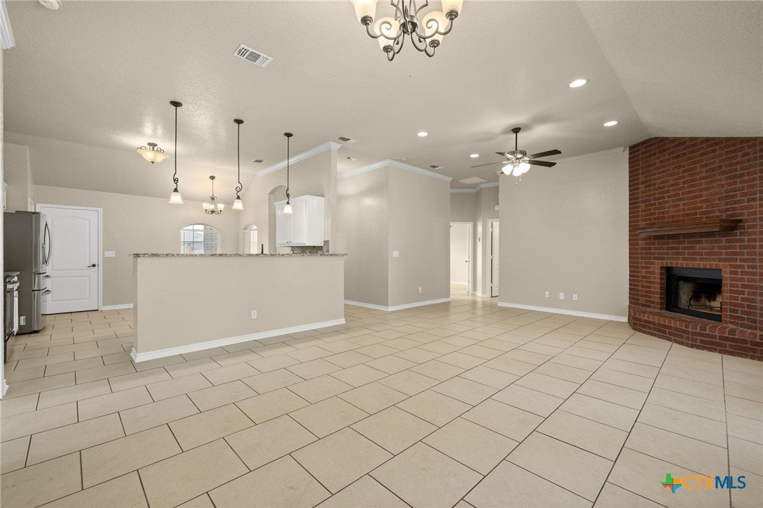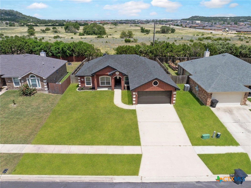 Welcome to this charming 4-bedroom, 2-bathroom all-sides brick home, offering comfort, style, and updates throughout. Step inside to find a spacious living area featuring a classic wood-burning brick fireplace and two dining areas, perfect for gatherings and entertaining. The primary suite is a true retreat, complete with a large walk-in closet and a bathroom with a separate shower, soaking tub, and dual vanities. Fresh interior paint brightens the entire home, while ceramic tile flooring in every room adds both durability and easy maintenance. The kitchen shines with stainless steel appliances and beautiful granite countertops, making it both functional and inviting. Additional updates include fresh exterior paint, a brand-new architectural shingle roof, and a full sprinkler system for convenience and peace of mind. Enjoy outdoor living year-round with both a covered porch and covered patio, and take advantage of the privacy of no backyard neighbors. This move-in ready home combines updates with timeless features—perfect for comfortable living and entertaining. This home is perfectly situated near everyday conveniences and attractions, including: Schools: Haynes Elementary, Roy J. Smith Middle, and Ellison High School Shopping & Dining: Killeen Mall, Killeen Crossing, and numerous restaurants along WS Young Drive and Central Texas Expressway Recreation: Lions Club Park, Long Branch Park, and the Mayborn Planetarium Healthcare: Advent Health Central Texas, Darnell Army Medical Center, and Seton Medical Center Harker Heights Military Access: Just minutes from Fort Hood