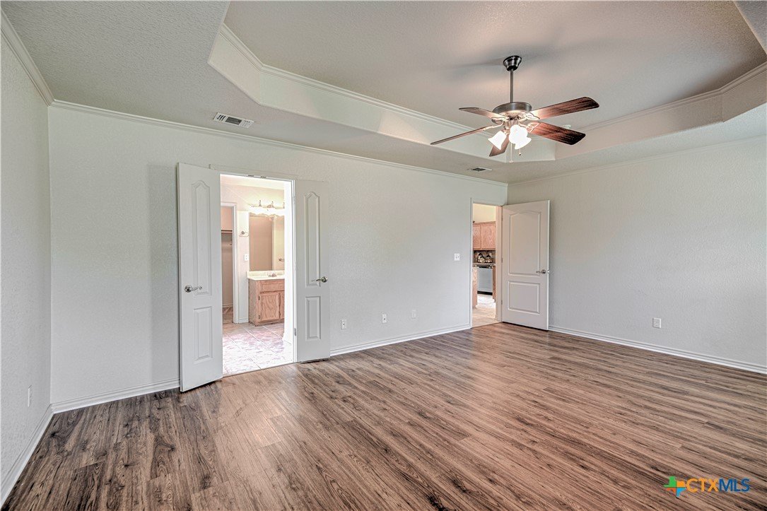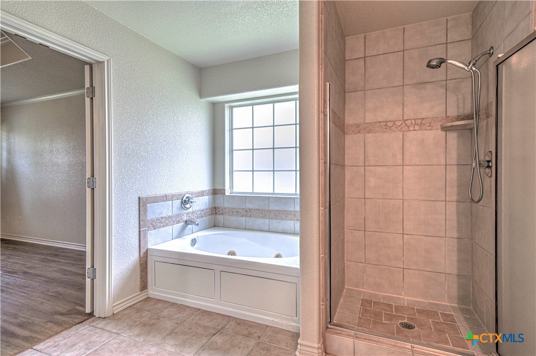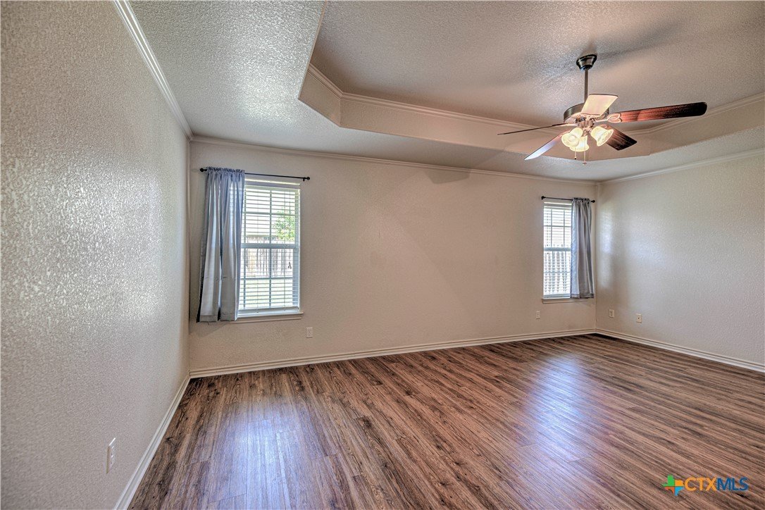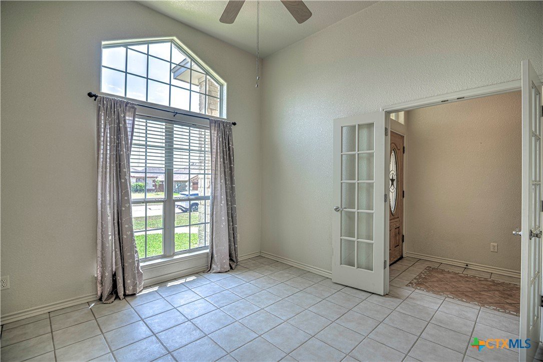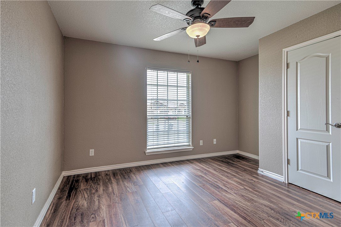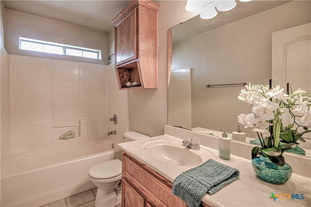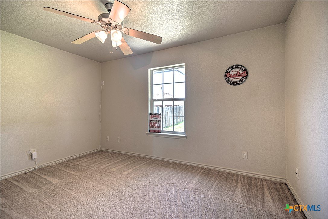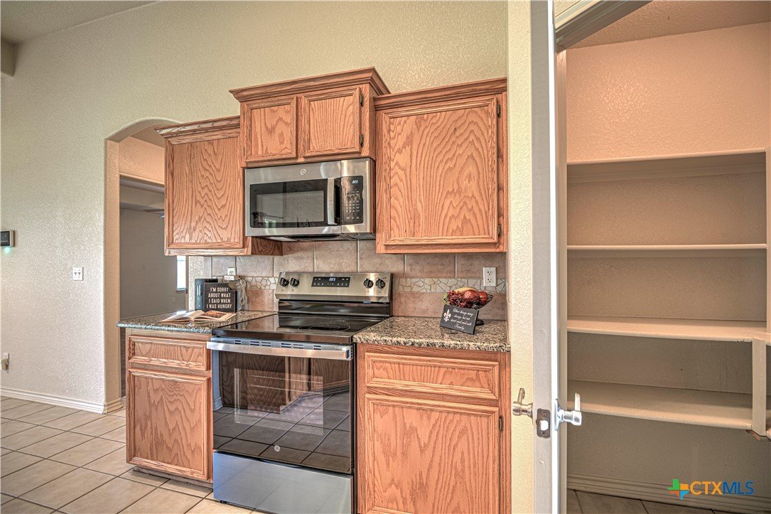 Welcome home to comfort, space, and style in the highly desirable Goodnight Ranch subdivision. This beautifully maintained 4-bedroom, 2-bath home offers everything today’s buyers are looking for—modern finishes, spacious living, and a flexible floor plan designed for both everyday living and entertaining. With 2,075 square feet of open and inviting space, this single-story home sits on a large 0.21-acre lot. The layout includes a spacious main living area, a flex space that can serve as a formal dining room or home office, and a split-bedroom design that ensures privacy. A cozy wood-burning fireplace adds warmth and charm to the main living space, making it ideal for relaxing evenings or gathering with guests. The kitchen features granite countertops, a tile backsplash, a breakfast bar, and NEW stainless steel appliances. The private owner’s suite includes an oversized walk-in closet and a luxurious bathroom with a jetted tub, separate shower, and double vanity. Three additional bedrooms provide plenty of space for guests, family, or hobbies. Only one room has carpet, while the rest of the home offers easy-to-maintain tile and vinyl flooring. Step outside to a covered back patio that overlooks a fully fenced backyard—perfect for pets, play, or outdoor entertaining. The attached 2-car garage provides secure parking and additional storage. Located in a quiet, sidewalk-lined neighborhood within Killeen city limits, this home offers full city utilities and no HOA. All major appliances convey, including the refrigerator, range, dishwasher, and microwave. Just minutes from schools, shopping, dining, and Fort Cavazos, this move-in-ready home offers the perfect blend of value, location, and comfort.