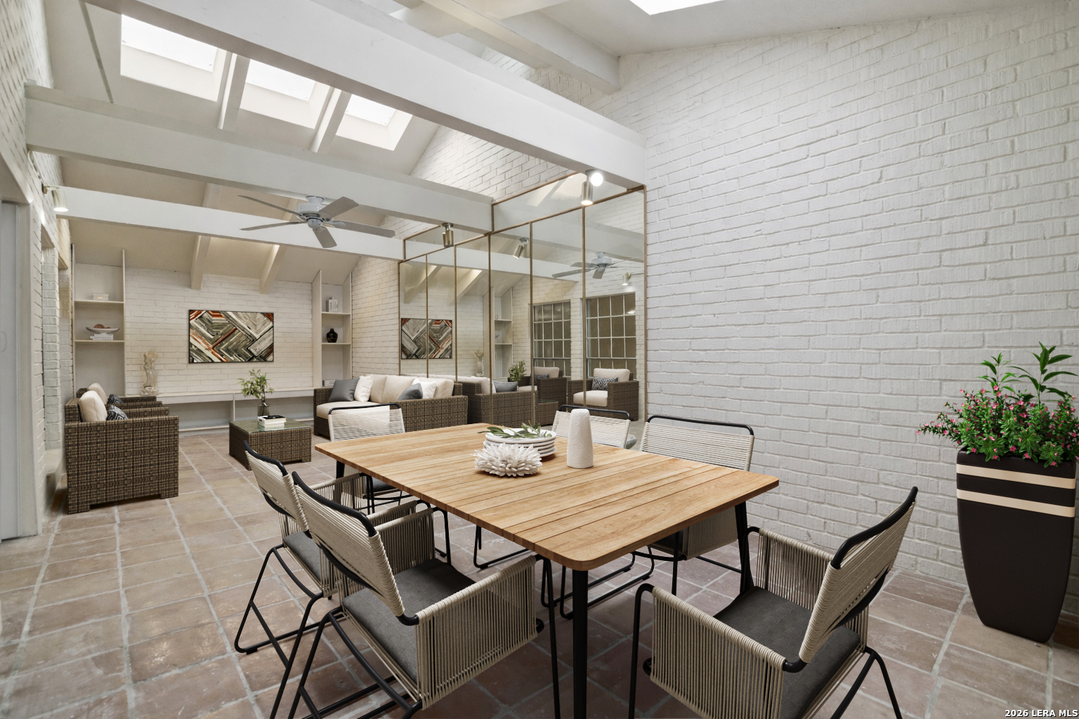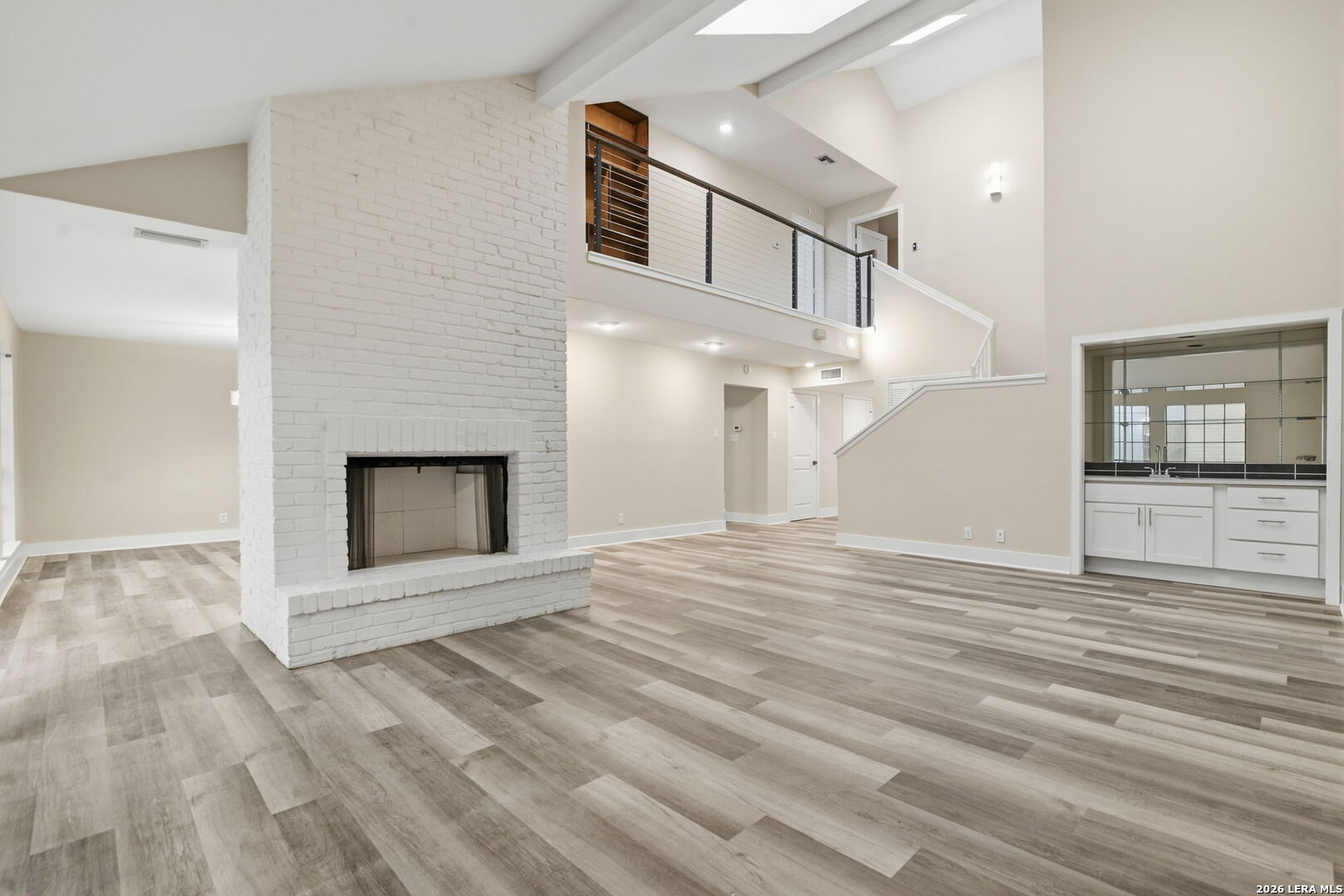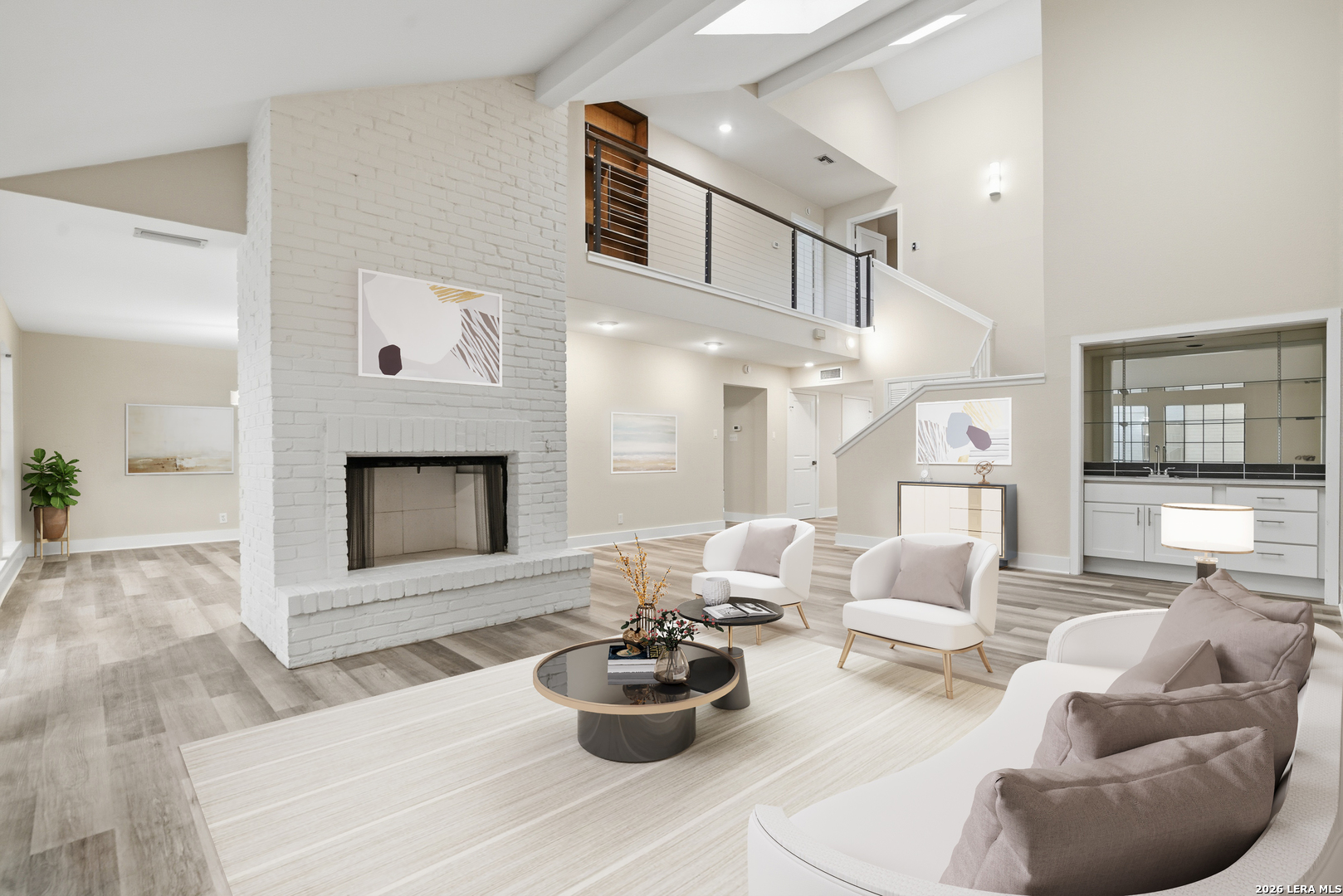 Rare opportunity to own a fully updated townhouse in the gated Idlewood community, located in sought-after NEISD. This light-filled home features a desirable first-floor primary bedroom and an impressive living room with vaulted ceilings, fireplace, and wet bar, perfect for everyday comfort or entertaining. A beautiful sunroom/terrace adds flexible living space and indoor-outdoor appeal. The chef-ready kitchen showcases custom cabinetry, granite countertops, and luxury vinyl plank flooring. Upstairs offers spacious secondary bedrooms and a versatile loft/office area ideal for work, media, or fitness. Skylights, bay windows, and an open layout fill the home with natural light and highlight the modern finishes throughout. Conveniently located near Northeast Baptist Hospital, approximately 8 miles from SAT, with quick access to Loop 410, Wurzbach Parkway, and U.S. 281. Schedule your private showing today and experience this move-in-ready gem.