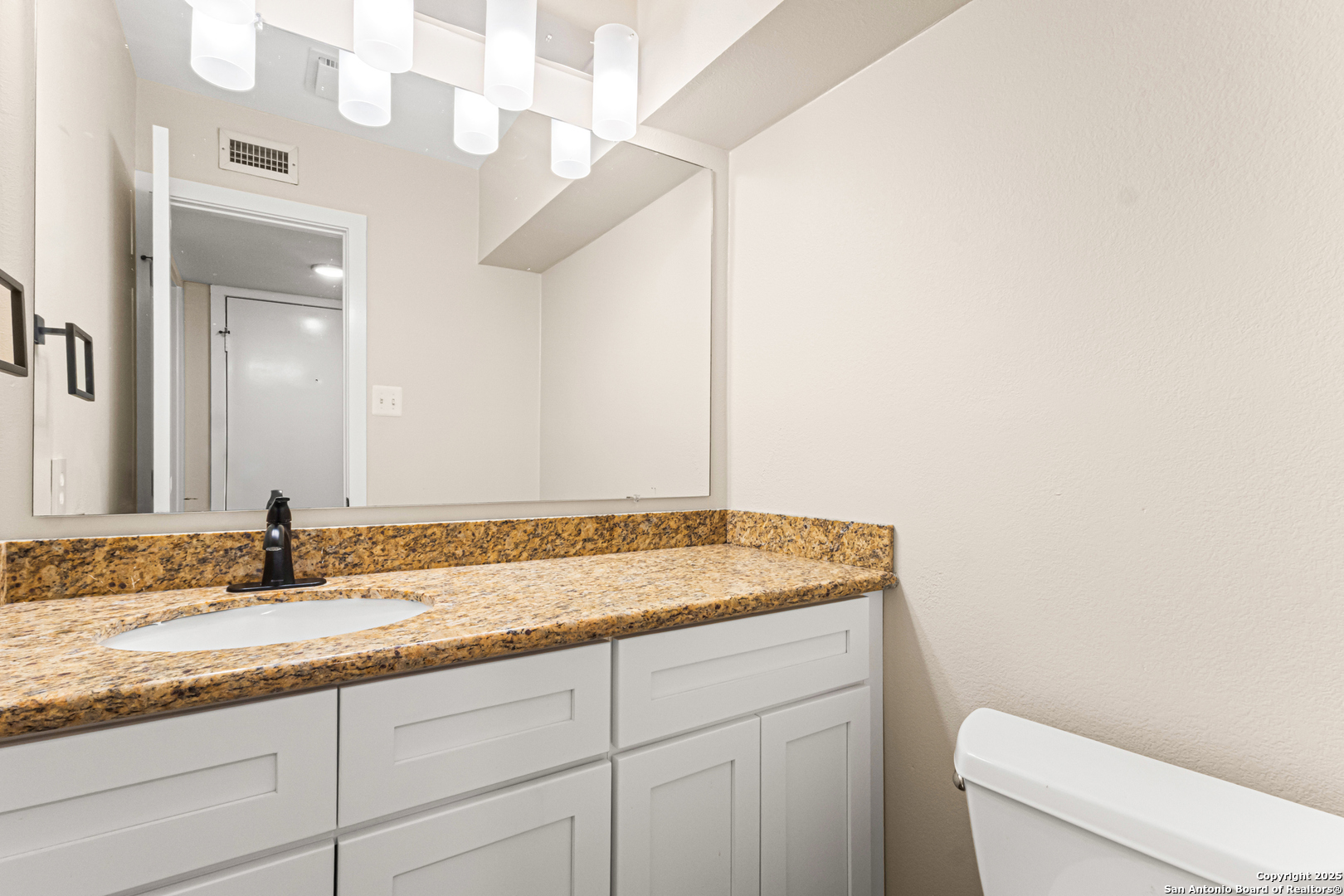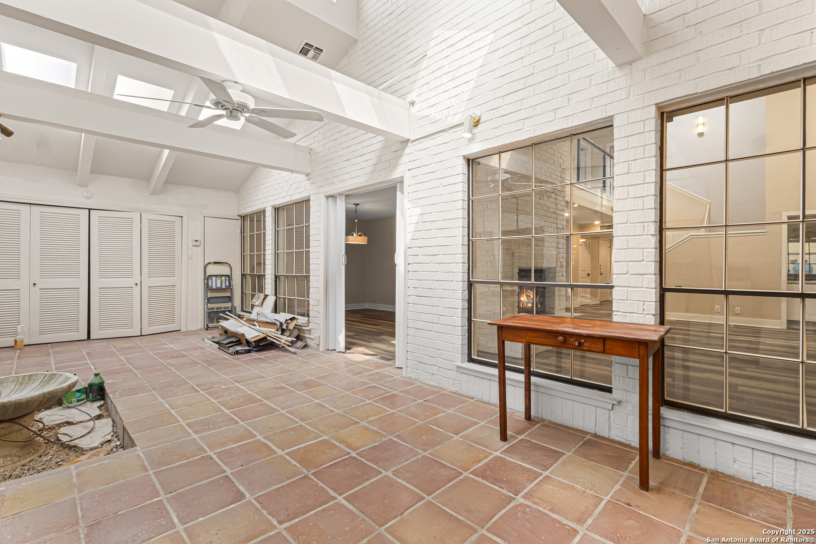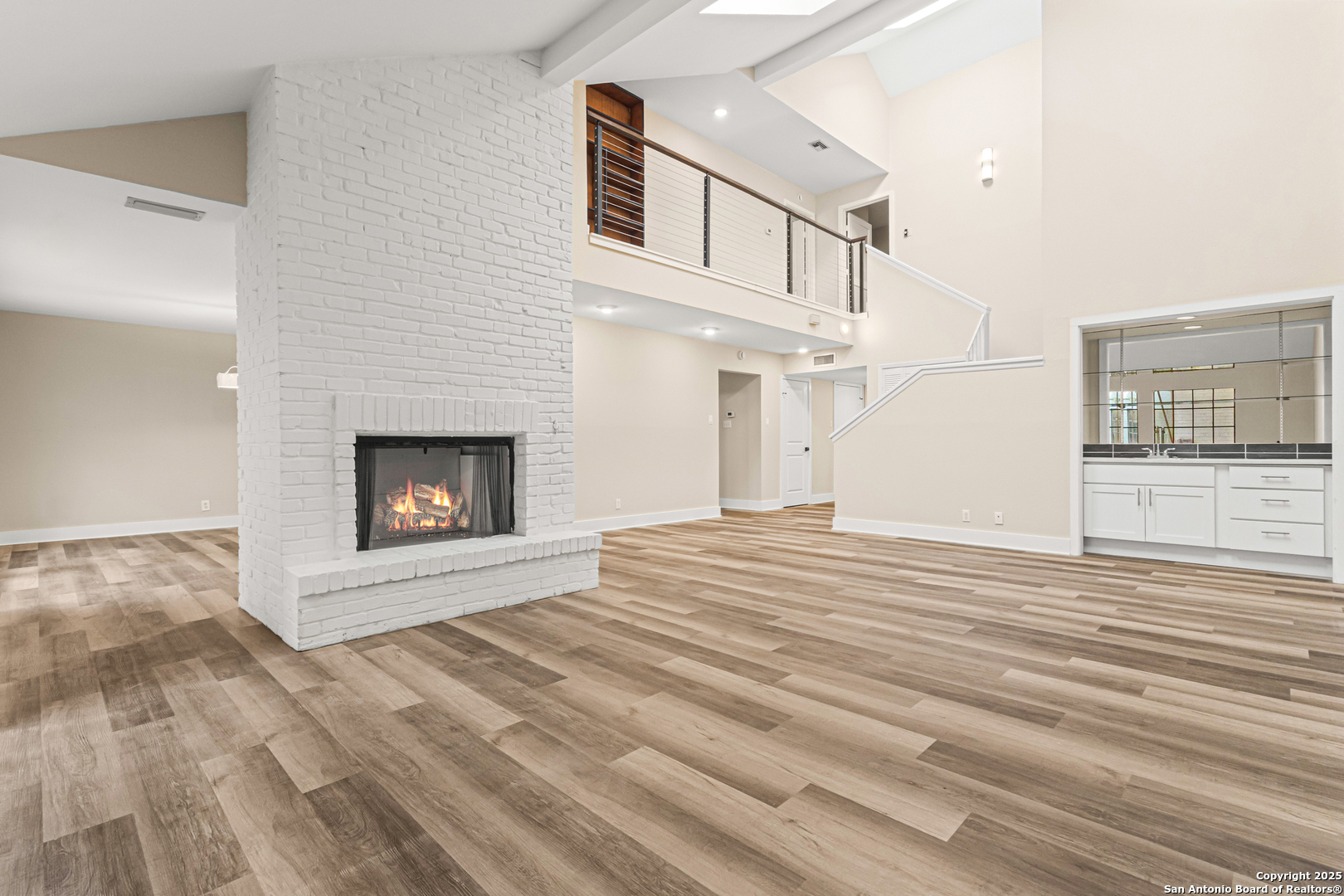 A rare, fully modernized townhouse in gated Idlewood within NEISD, offering unparalleled style and sophistication. The first-floor PRIMARY BEDROOM, dramatic living room with vaulted ceilings, fireplace, wet bar, and a stunning sunroom/terrace create the perfect setting for refined living. The chef-ready kitchen boasts custom cabinetry, granite countertops, and luxury vinyl plank flooring for effortless elegance. Upstairs features generous bedrooms and a versatile OFFICE / LOFT AREA ideal for work, media, or fitness. Skylights, bay windows, and an open layout flood the home with natural light, highlighting every high-end finish. Minutes from Northeast Baptist Hospital, about 8 miles to SAT, with quick access to Loop 410, Wurzbach Parkway, and U.S. 281 - schedule your private showing today and experience a one-of-a-kind residence.