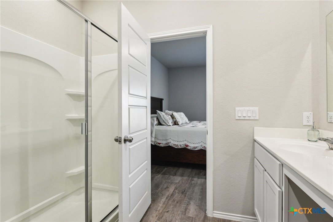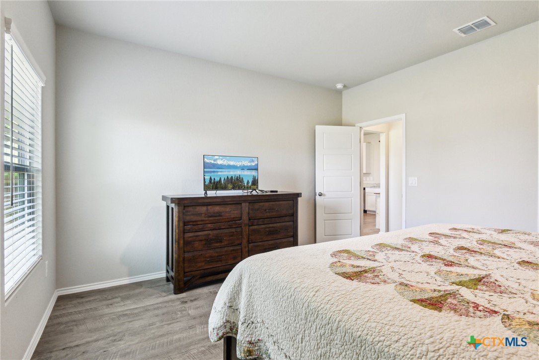 Welcome to this charming house that's certainly a cut above the rest! Nestled in a serene and peaceful neighborhood just beyond the bustling city limits of San Antonio, this "Better than New" home offers a perfect blend of comfort and modernity. Step inside and be enchanted by the open floor plan, boasting 3 cozy bedrooms and 2 well-appointed bathrooms. This home comes packed with upgrades that surpass the standard offerings of new home builders. Revel in the luxury of 9-foot ceilings that exude a sense of spaciousness, elegant granite countertops that elevate the kitchen, and luxurious vinyl plank flooring that graces every room, including the bathrooms and bedrooms. Further enhancing the charm are upgraded fixtures, a generously sized walk-in shower for your indulgence, convenient blinds, an automatic garage door opener for added ease, gutters for practicality, a water softener and filtration system for premium water quality, and a security system complete with security cameras for peace of mind. This single-story abode is strategically situated for your convenience, with quick access to S. Loop 1604 and less than a mile away from IH-37, offering seamless connections to major highways. Not to mention, you'll find it incredibly easy to reach the Toyota Manufacturing plant, making commuting a breeze. Surrounded by a wealth of amenities, this home is a haven of tranquility. Enjoy being in proximity to Southside High School, Toyota Motor Manufacturing, Texas, Inc., and the picturesque Victor Braunig Lake, each offering a unique experience just a stone's throw away. Don't miss this opportunity to make this delightful house your new home sweet home. Say goodbye to the ordinary and embrace the extraordinary with this meticulously crafted dwelling. Visit soon and let this home work its magic on you!