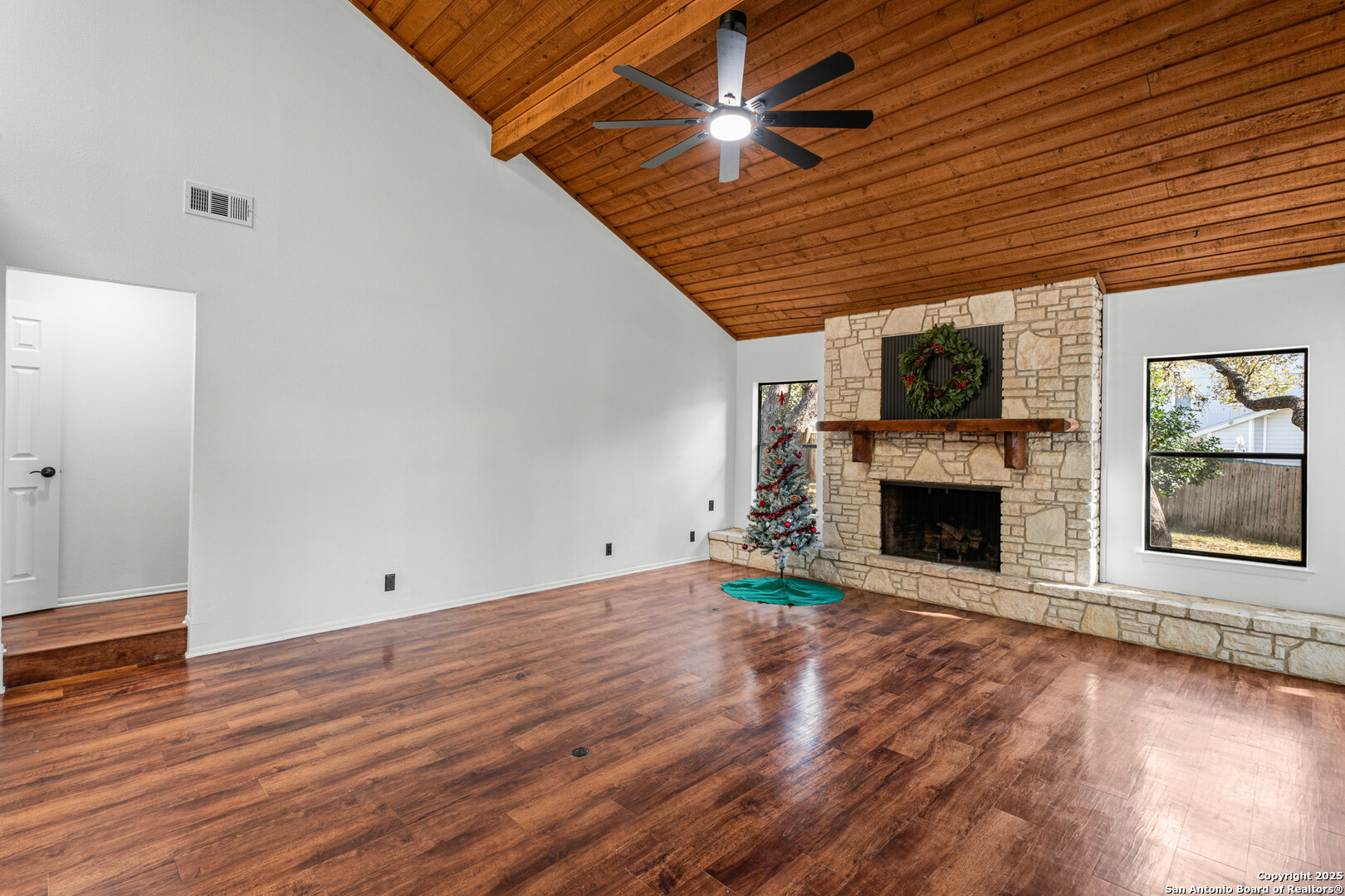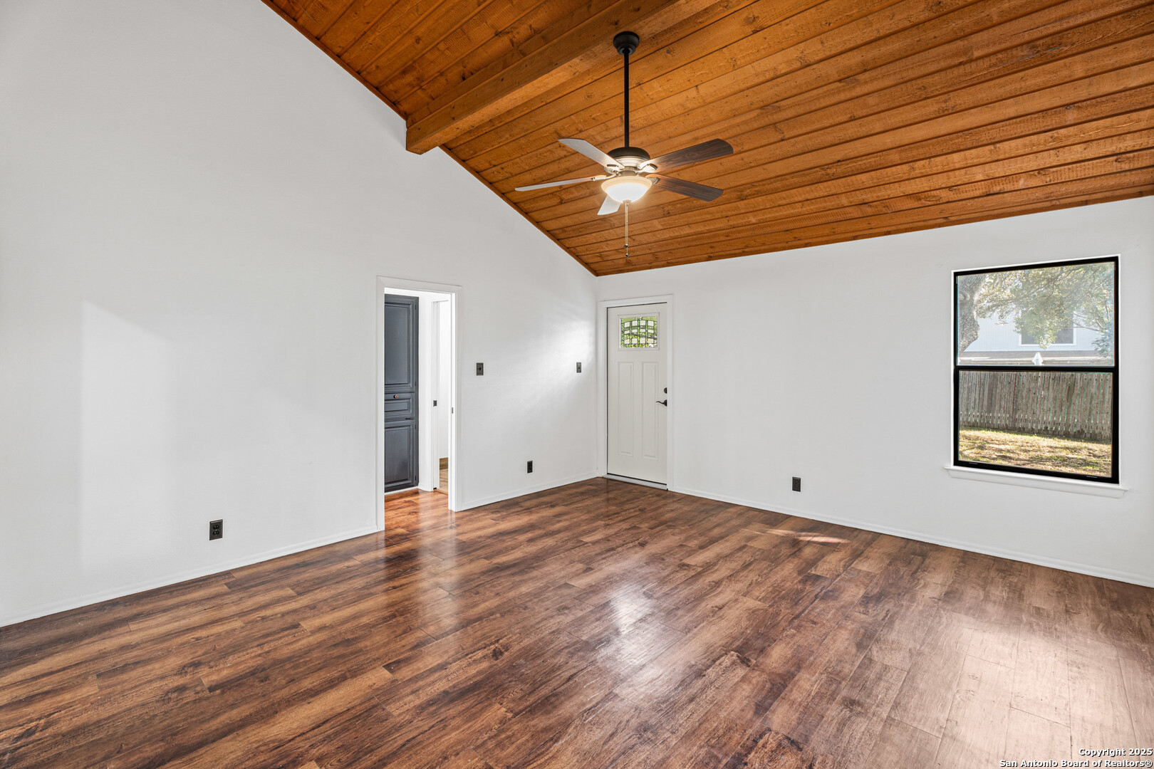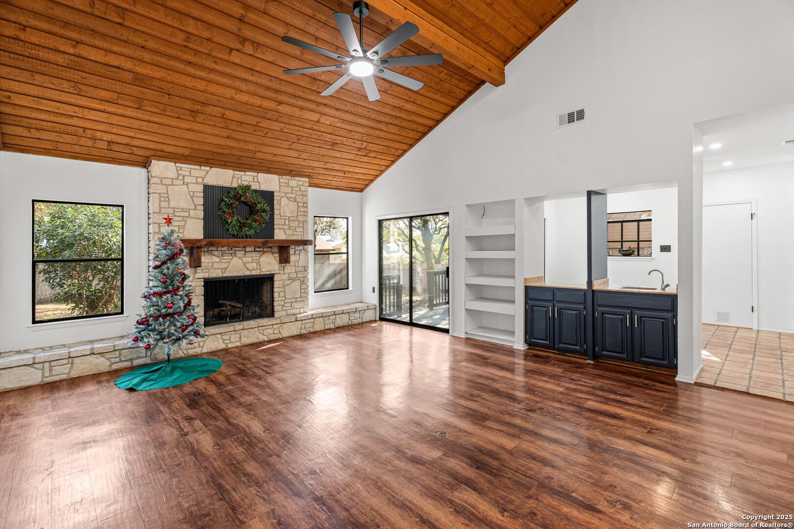 Discover the perfect blend of timeless character and modern updates in this beautifully renovated, spacious single-story home located in the highly sought-after Green Spring Valley community. Surrounded by mature trees and exceptional neighborhood amenities, this home offers comfort, convenience, and style. Designed for effortless entertaining, the home features a large living area with a wet bar, a separate dining room, a cozy breakfast nook, and a unique atrium-perfect for an indoor garden, seasonal decor, or a relaxing sitting space. Recent renovations include fresh paint, updated fixtures throughout, and a brand-new HVAC system. The kitchen offers modern countertops and sink, along with a new dishwasher, oven, and microwave. The refrigerator also conveys, making move-in a breeze. Step outside to a peaceful backyard retreat. Enjoy a covered patio ideal for morning coffee or evening drinks, along with an expansive, tree-shaded yard ready for gardening, a play area, or outdoor entertaining. Green Spring Valley offers an unmatched lifestyle with a community pool, tennis, basketball, and pickleball courts and a 32-acre nature park with walking, biking trails and picnic areas. With quick access to 1604, 410, and 281, you'll enjoy the perfect balance of serene suburban living and city convenience.