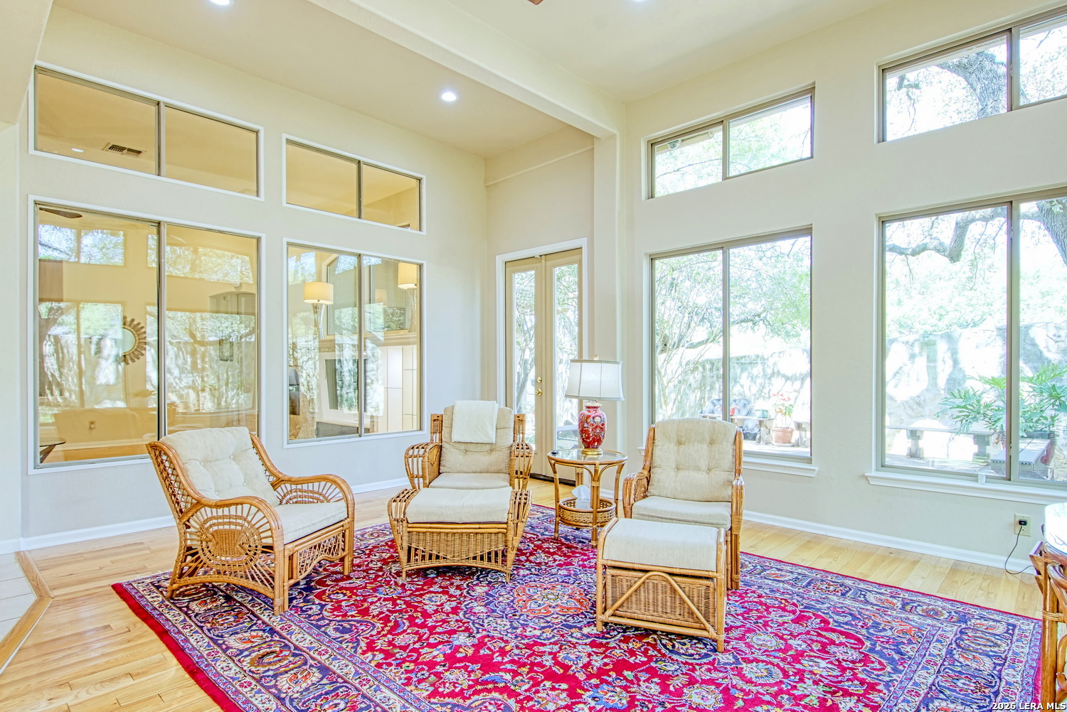 Gorgeous Sitterle Garden Home on premium CUL-DE-SAC lot. Drive into GUARD GATED Emerald Forest Subdivision--Your OASIS living has started. Pool/Preserve trails/Peace & Quiet can be yours. Enter GRAND FOYER leading to lrg fam rm & adjacent formal din rm w/12' ceilings. BRIGHT, open kitchen w/gas stove, dbl ovens, and fridge that conveys. MBR w/lots of windows & bath w/doorless double shower. Double vanities, TWO CLOSETS finish this gorgeous master bath. SHOWCASE SUNROOM; Huge windows that look into 8' walled-in, private, tree-filled back yard; also enjoyed on 16X16 50 yr TREX deck. OVERSIZED 2-car garage w/water softener. SOLAR PANELS--4,200W ION solar--$54/month SAVINGS. New water heater Apr 2026. Mins to 1604/281/35; 15 mins to Randolph/20 mins to Ft Sam. Restaurants/shopping/HEB at your fingertips. Come get it!!.