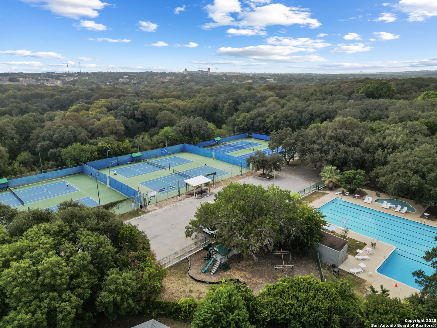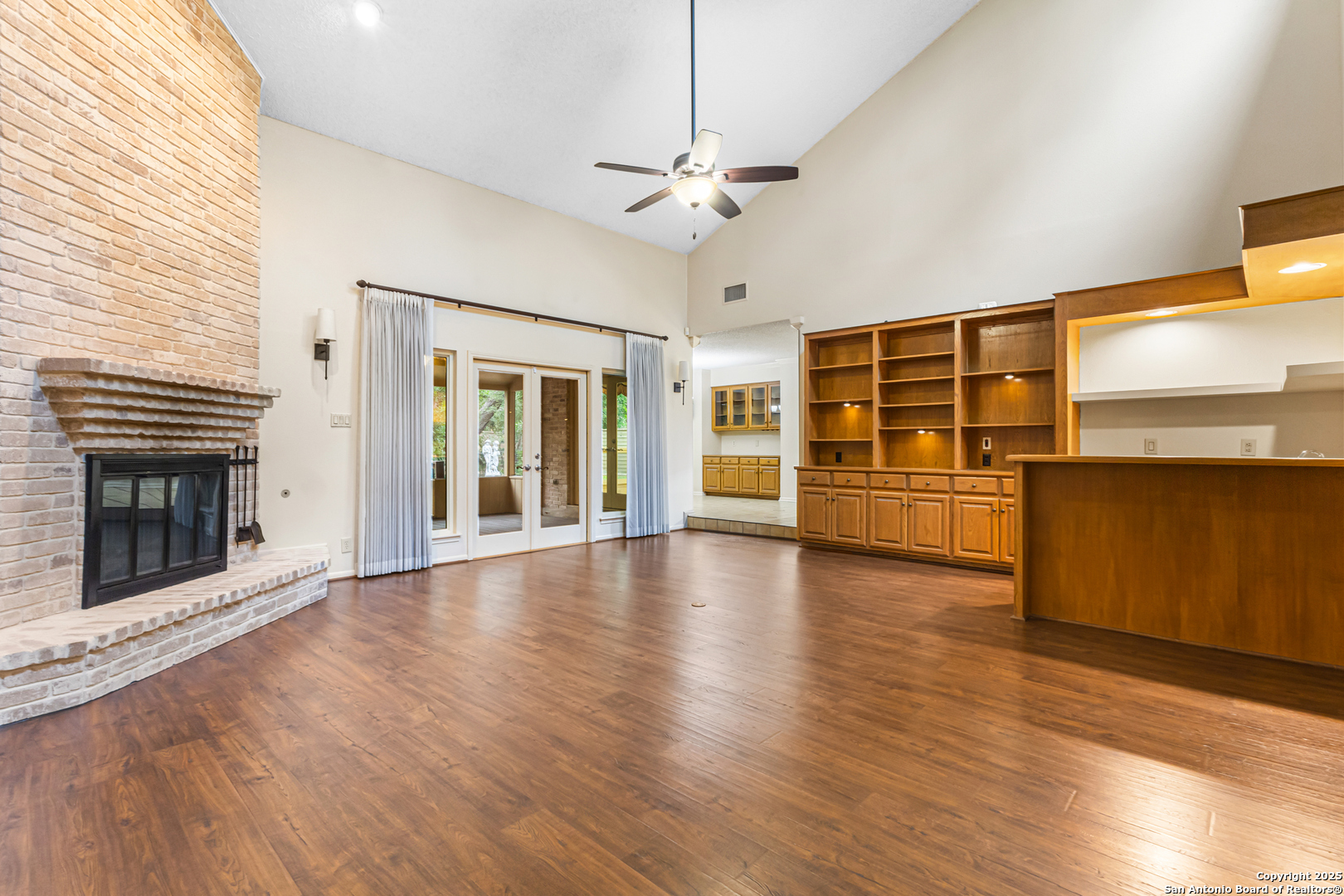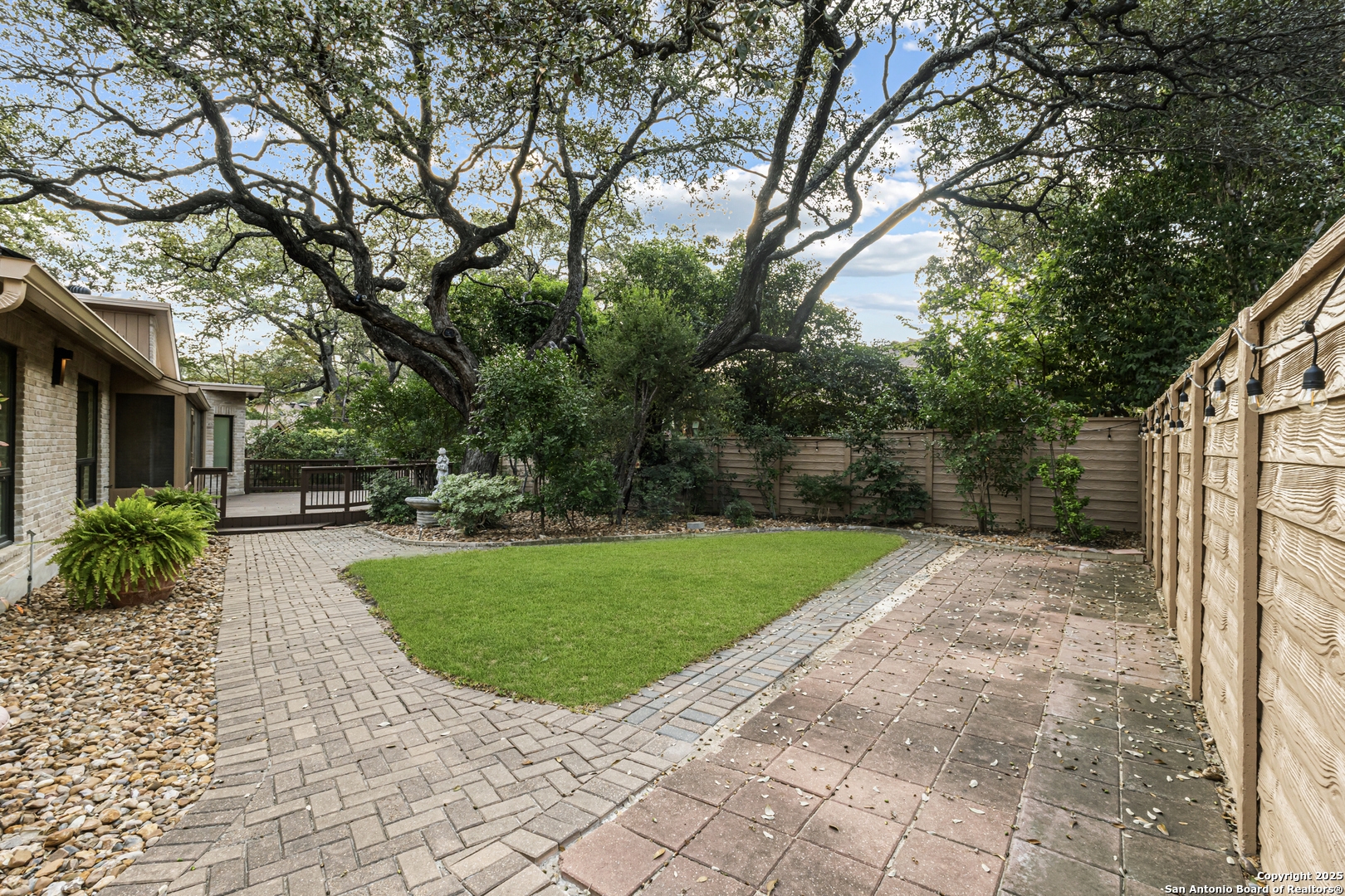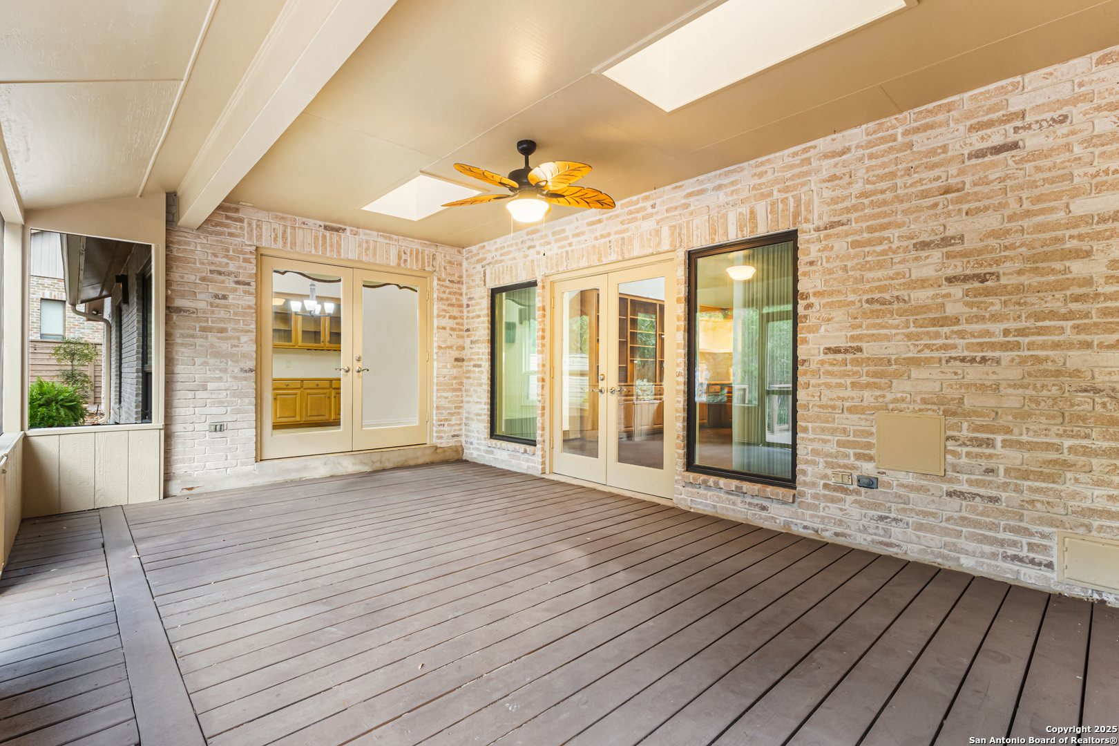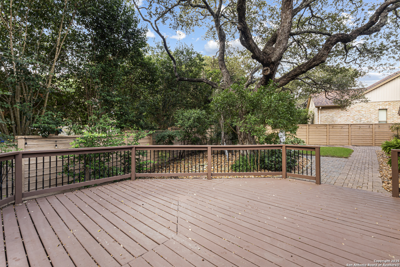 Exceptionally updated single-story home on a quiet cul-de-sac street. This stunning 4-bedroom, 2.5-bath home offers a split bedroom floorplan filled with natural light and recent upgrades throughout. The spacious living room features clerestory windows, built-in bookshelves, a wet bar, and a large fireplace - perfect for entertaining or relaxing. The remodeled primary suite spans the length of the home and showcases a luxurious, newly updated bath with a walk-in shower, dual vanities, and custom cabinetry. Enjoy modern comfort with two HVAC systems and new ductwork, updated roof, windows and doors, and Pergo flooring throughout. The kitchen features updated appliances, granite counters and opens to the breakfast area and screened-in porch - ideal for year-round outdoor enjoyment. You will find mature oak trees throughout, full sprinkler system, and yard lighting in both the front and back yards. Additional highlights include a side-entry garage, deck for entertaining, low-maintenance Fencecrete backyard fence, and freshly painted four-sides brick exterior. Located close to USAA, Medical Center, Alon Market and the convivences of North Central San Antonio.