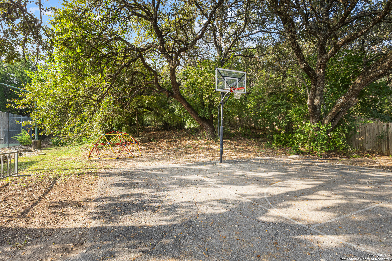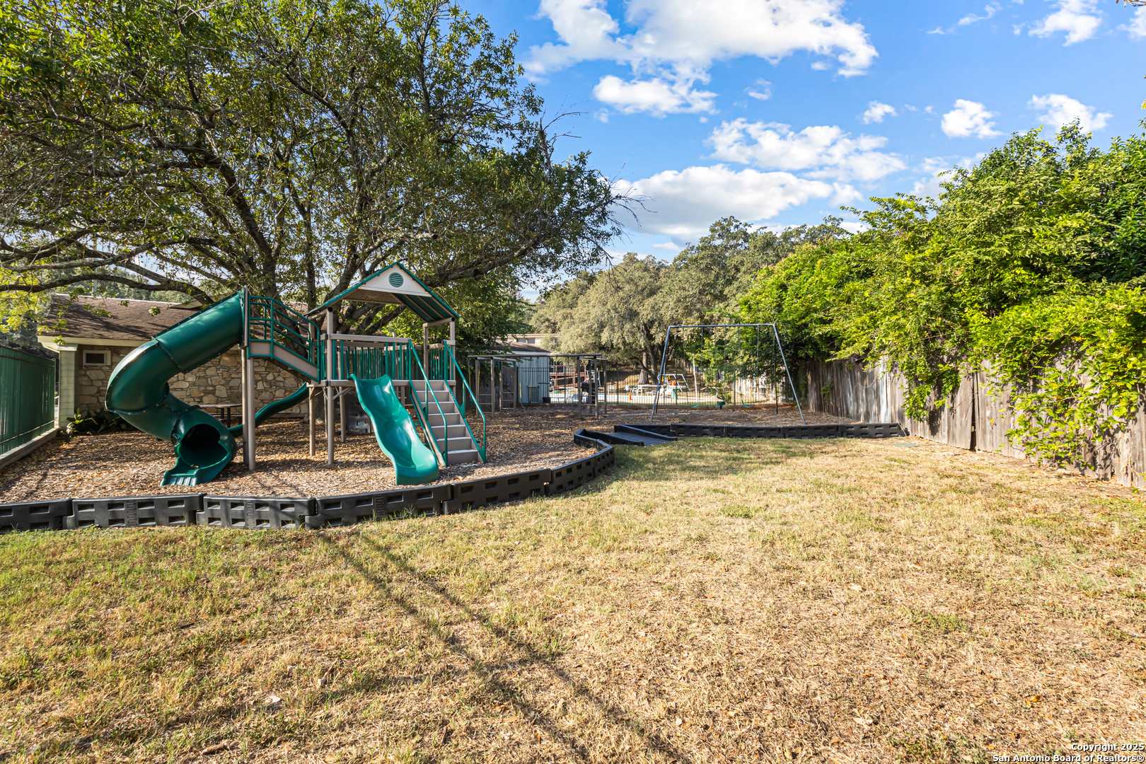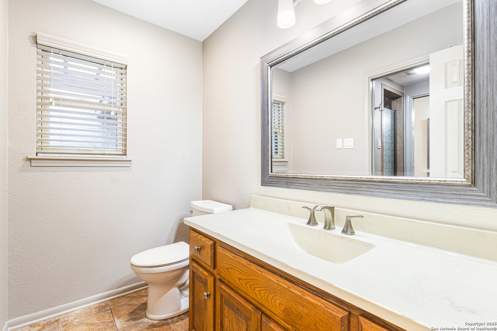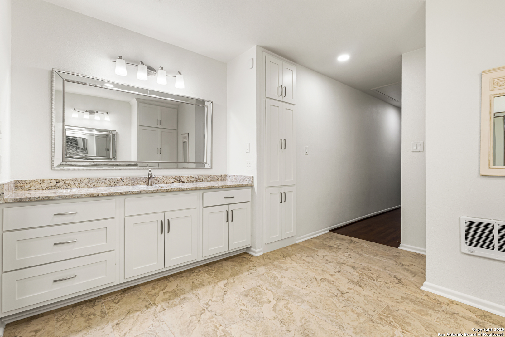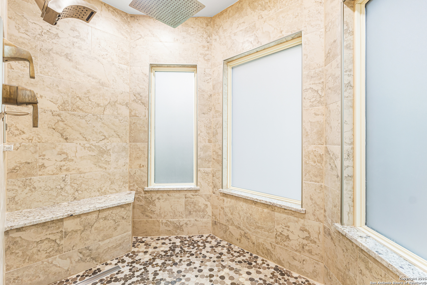 Exceptionally updated single-story home on a quiet cul-de-sac street. This stunning 4-bedroom, 2.5-bath home offers a split bedroom floorplan filled with natural light and recent upgrades throughout. The spacious living room features clerestory windows, built-in bookshelves, a wet bar, and a large fireplace - perfect for entertaining or relaxing. The remodeled primary suite spans the length of the home and showcases a luxurious, newly updated bath with a walk-in shower, dual vanities, and custom cabinetry. Enjoy modern comfort with two HVAC systems and new ductwork, updated roof, windows and doors, and Pergo flooring throughout. The kitchen features updated appliances, granite counters and opens to the breakfast area and screened-in porch - ideal for year-round outdoor enjoyment. You will find mature oak trees throughout, full sprinkler system, and yard lighting in both the front and back yards. Additional highlights include a side-entry garage, deck for entertaining, low-maintenance Fencecrete backyard fence, and freshly painted four-sides brick exterior. Located close to USAA, Medical Center, Alon Market and the convivences of North Central San Antonio.