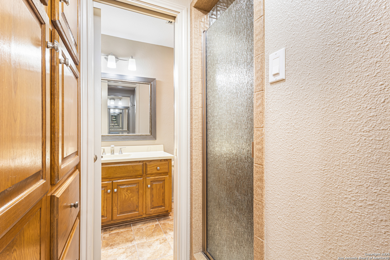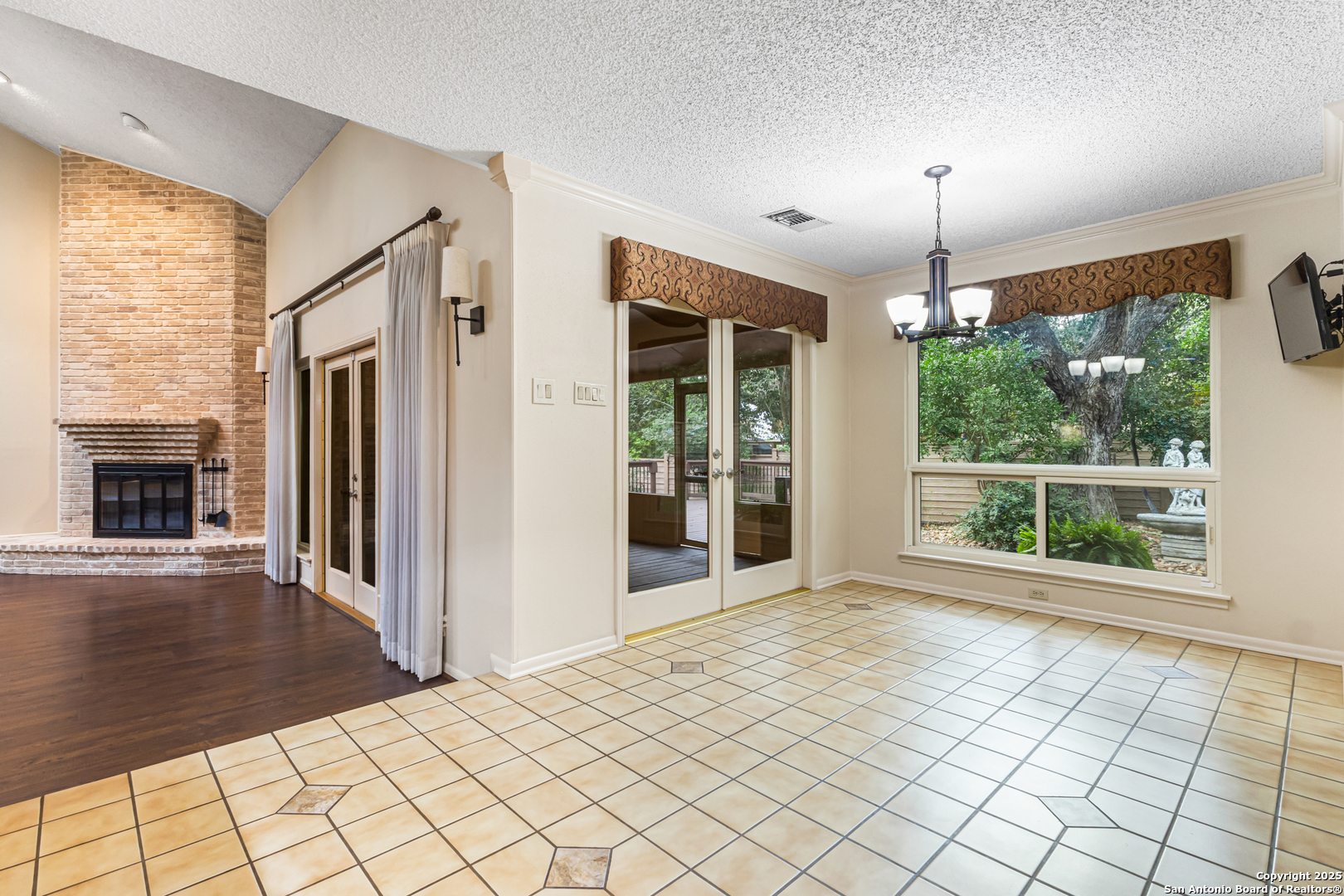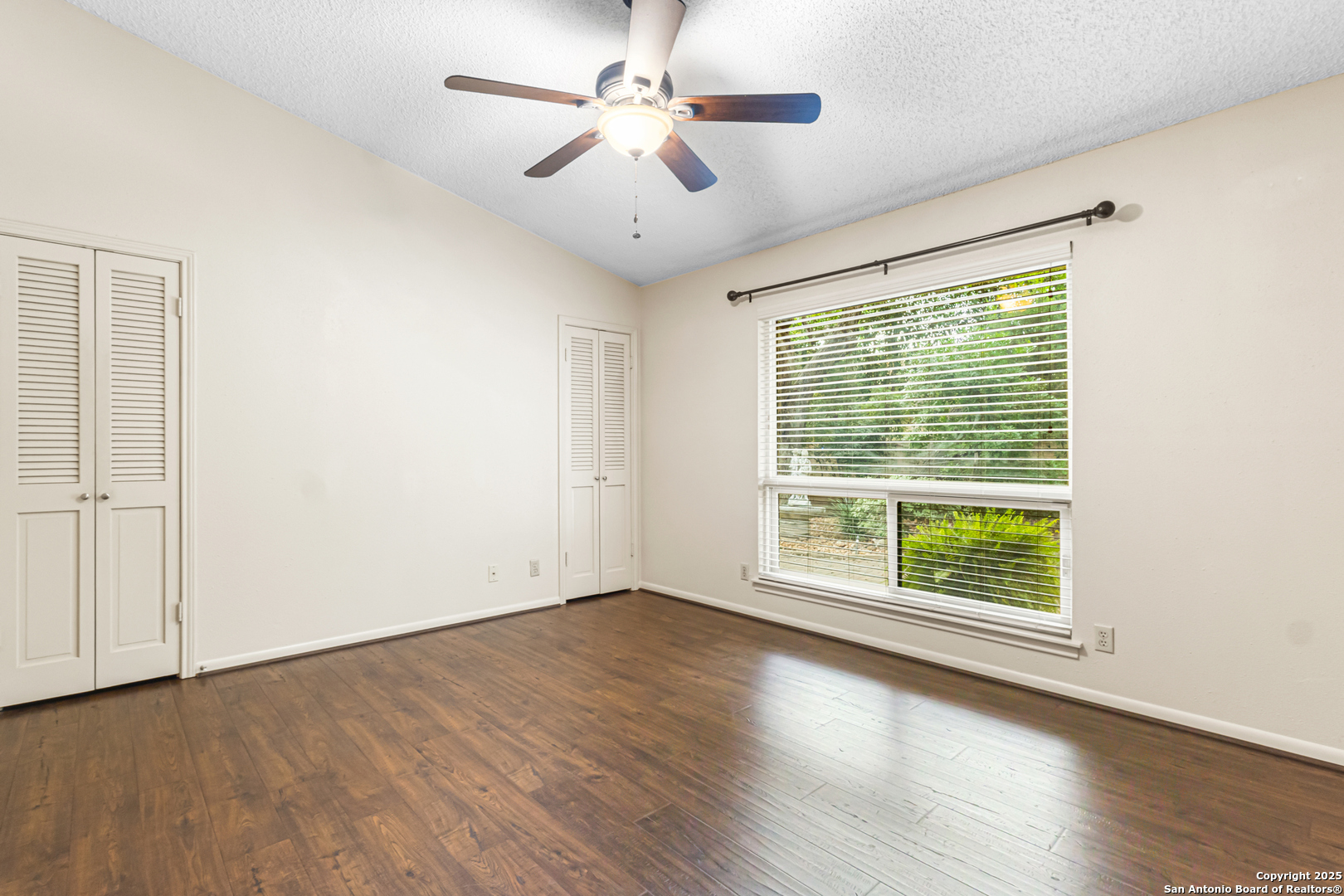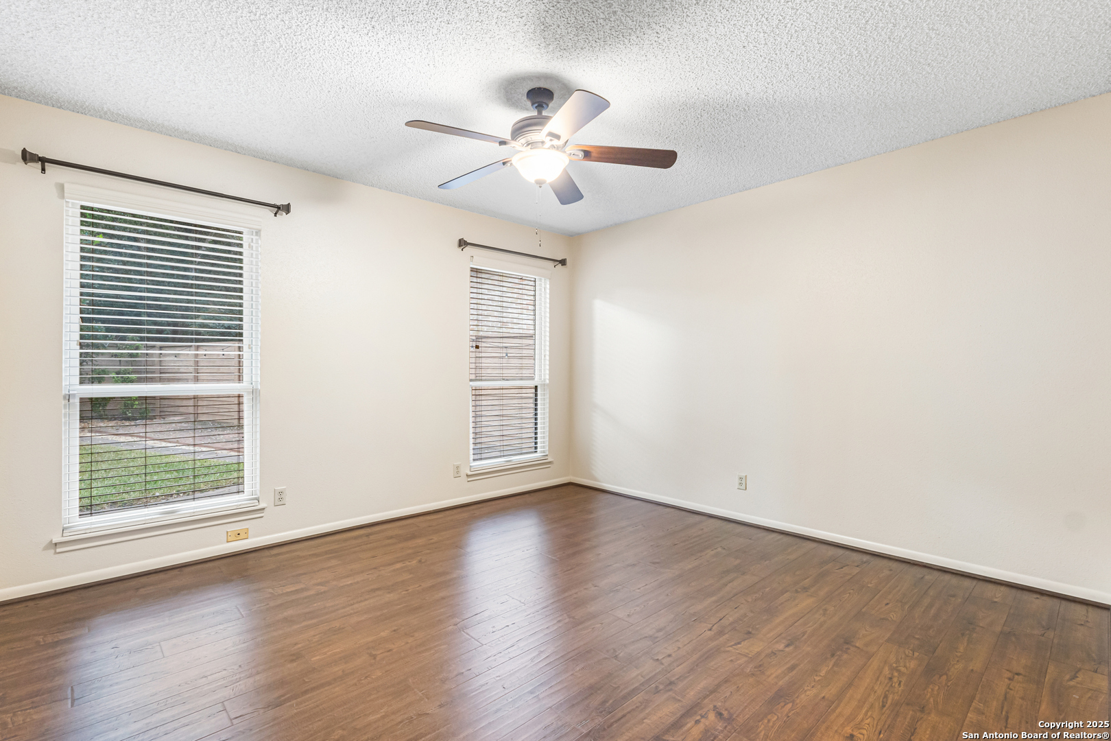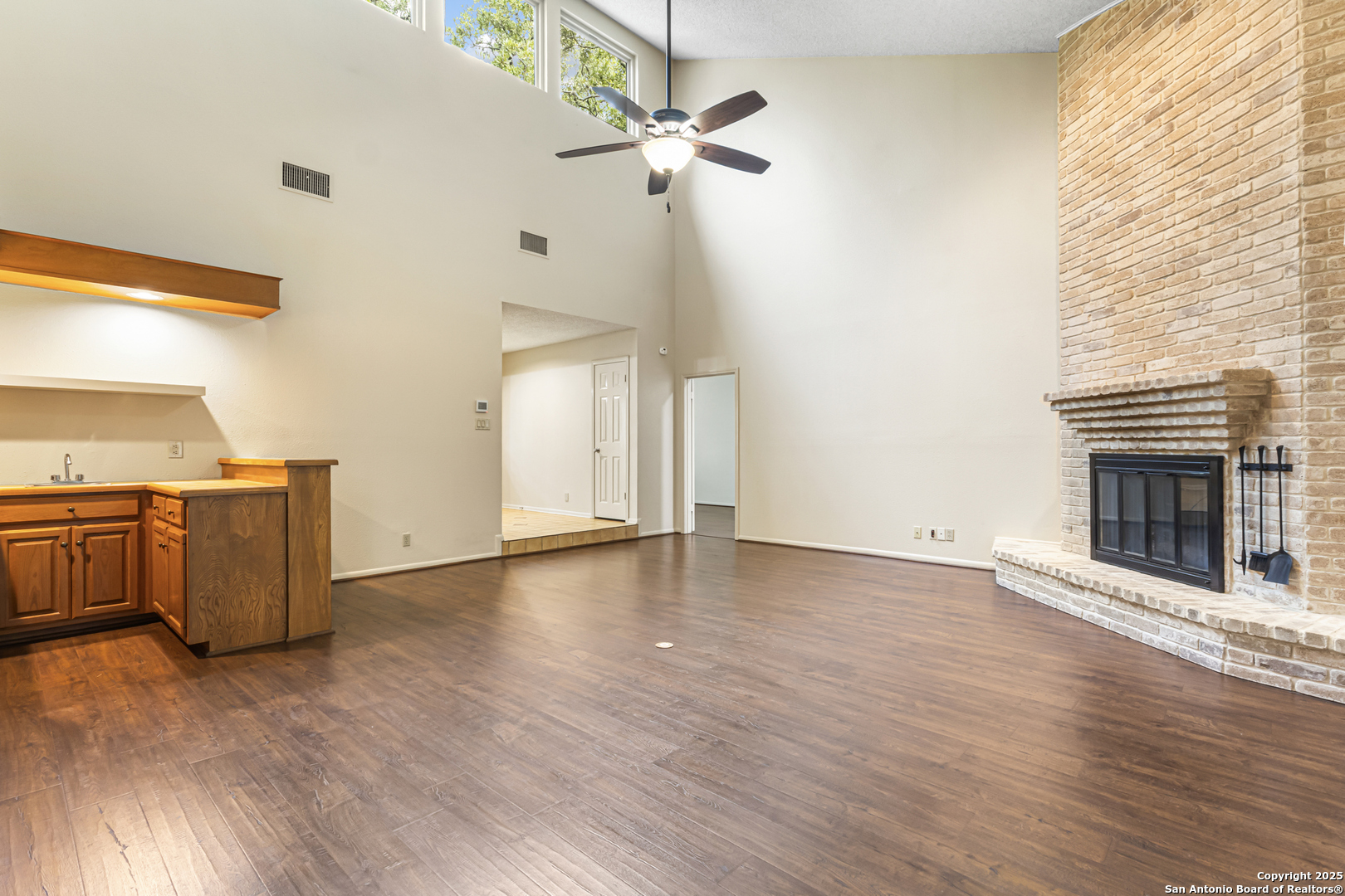 Exceptionally updated single-story home on a quiet cul-de-sac street. This stunning 4-bedroom, 2.5-bath home offers a split bedroom floorplan filled with natural light and recent upgrades throughout. The spacious living room features clerestory windows, built-in bookshelves, a wet bar, and a large fireplace - perfect for entertaining or relaxing. The remodeled primary suite spans the length of the home and showcases a luxurious, newly updated bath with a walk-in shower, dual vanities, and custom cabinetry. Enjoy modern comfort with two HVAC systems and new ductwork, updated roof, windows and doors, and Pergo flooring throughout. The kitchen features updated appliances, granite counters and opens to the breakfast area and screened-in porch - ideal for year-round outdoor enjoyment. You will find mature oak trees throughout, full sprinkler system, and yard lighting in both the front and back yards. Additional highlights include a side-entry garage, deck for entertaining, low-maintenance Fencecrete backyard fence, and freshly painted four-sides brick exterior. Located close to USAA, Medical Center, Alon Market and the convivences of North Central San Antonio.