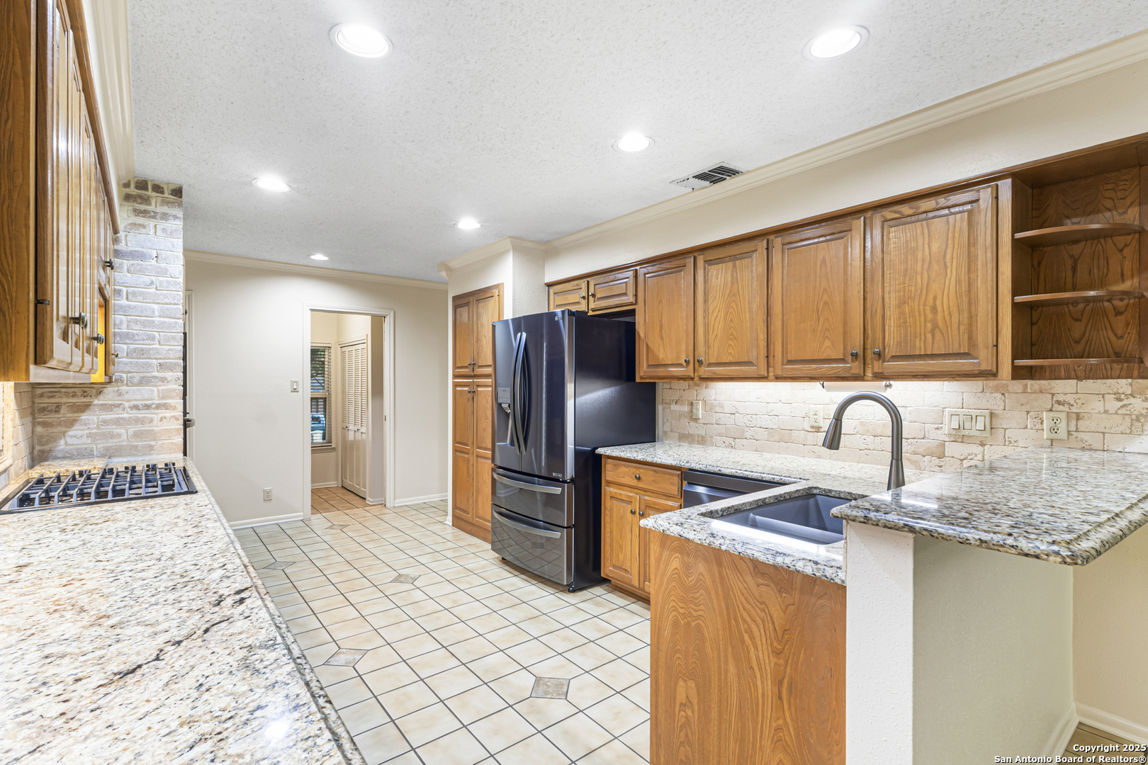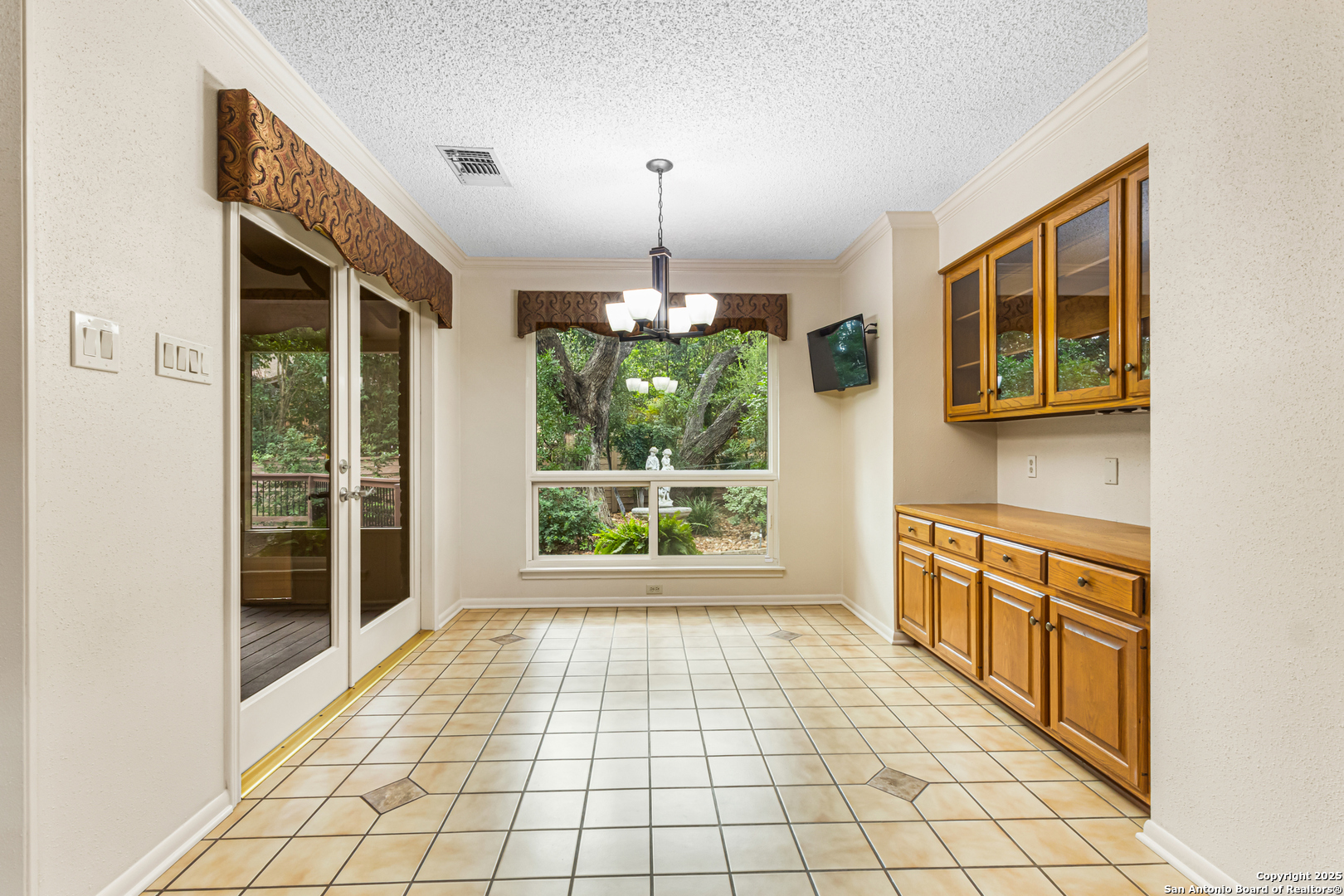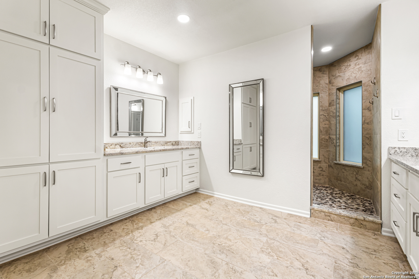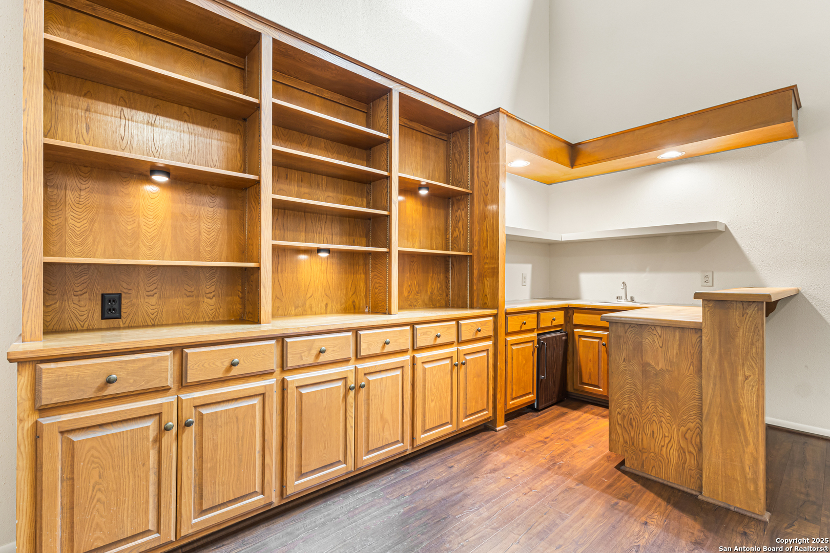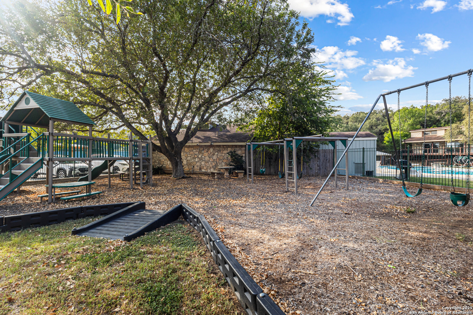 Exceptionally updated single-story home on a quiet cul-de-sac street. This stunning 4-bedroom, 2.5-bath home offers a split bedroom floorplan filled with natural light and recent upgrades throughout. The spacious living room features clerestory windows, built-in bookshelves, a wet bar, and a large fireplace - perfect for entertaining or relaxing. The remodeled primary suite spans the length of the home and showcases a luxurious, newly updated bath with a walk-in shower, dual vanities, and custom cabinetry. Enjoy modern comfort with two HVAC systems and new ductwork, updated roof, windows and doors, and Pergo flooring throughout. The kitchen features updated appliances, granite counters and opens to the breakfast area and screened-in porch - ideal for year-round outdoor enjoyment. You will find mature oak trees throughout, full sprinkler system, and yard lighting in both the front and back yards. Additional highlights include a side-entry garage, deck for entertaining, low-maintenance Fencecrete backyard fence, and freshly painted four-sides brick exterior. Located close to USAA, Medical Center, Alon Market and the convivences of North Central San Antonio.