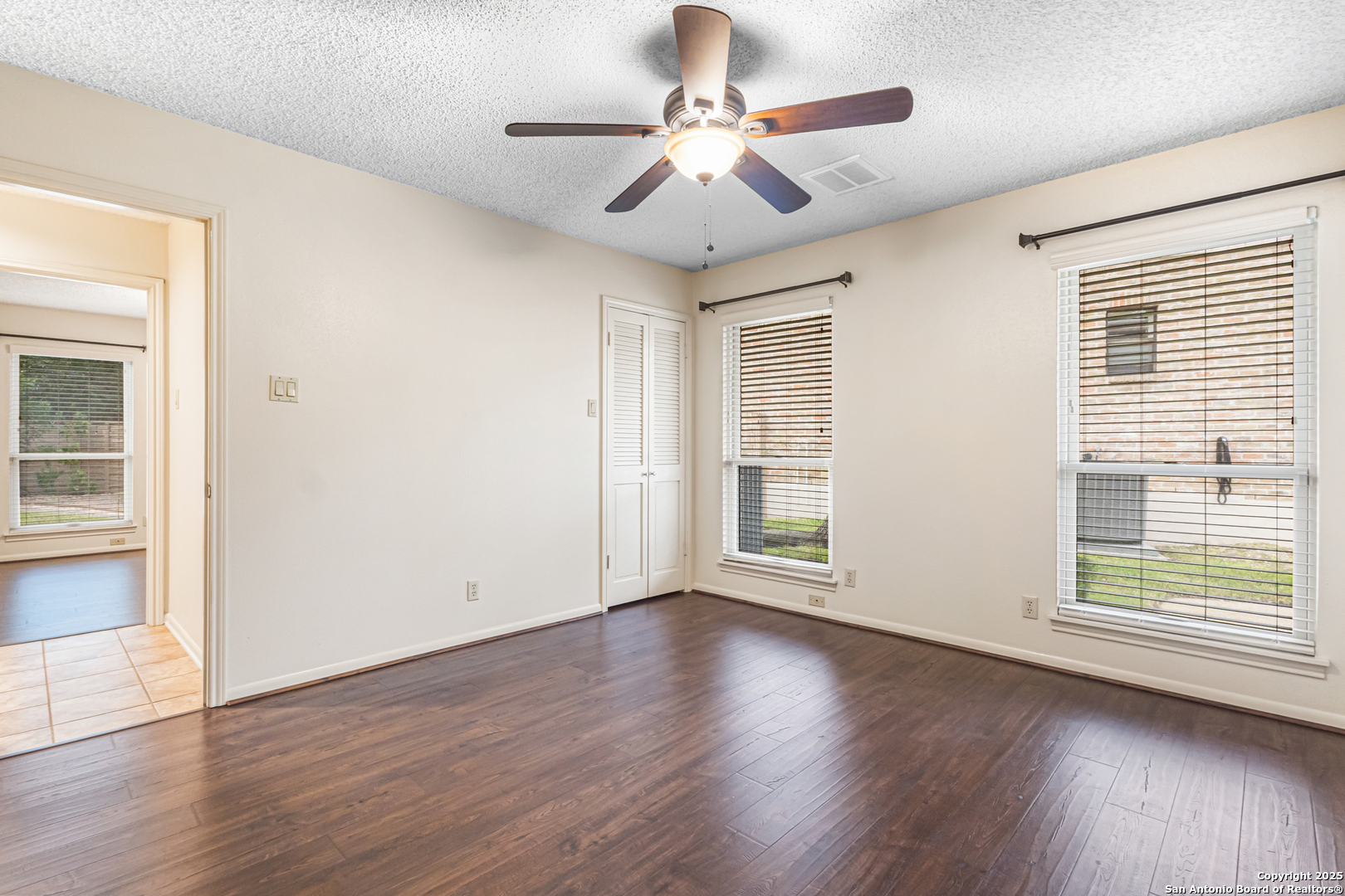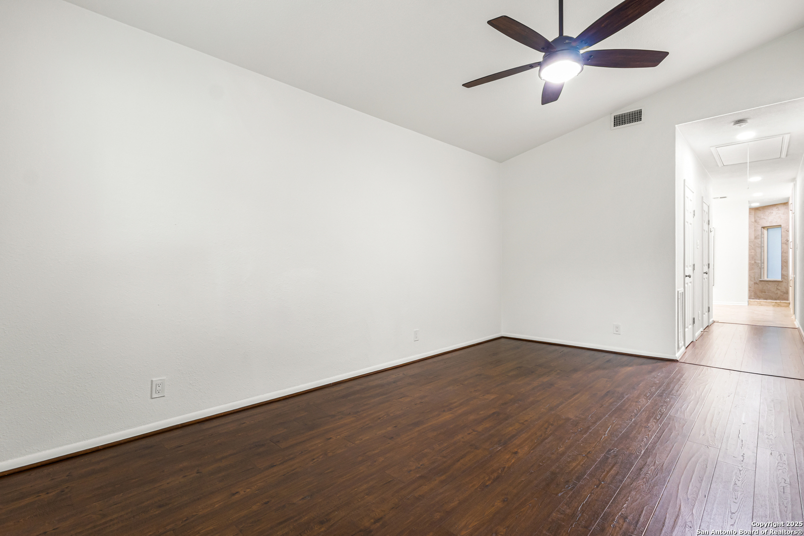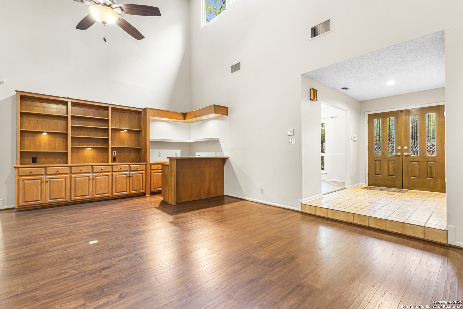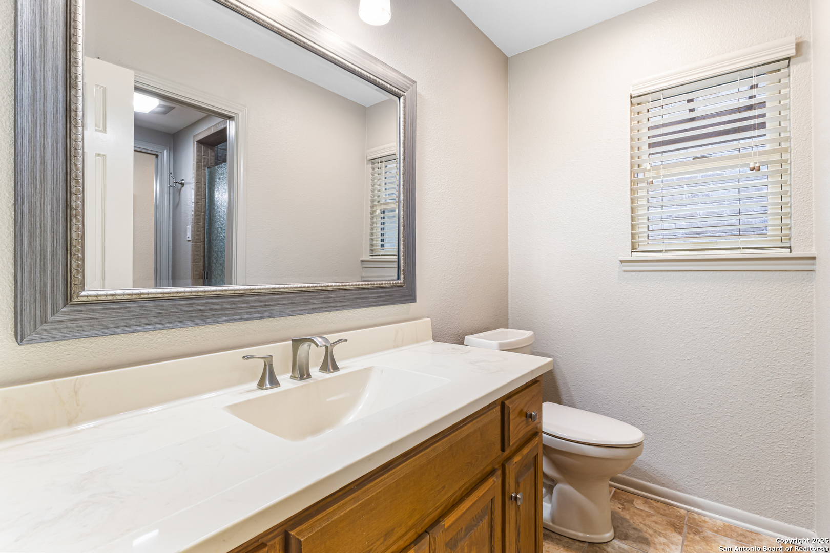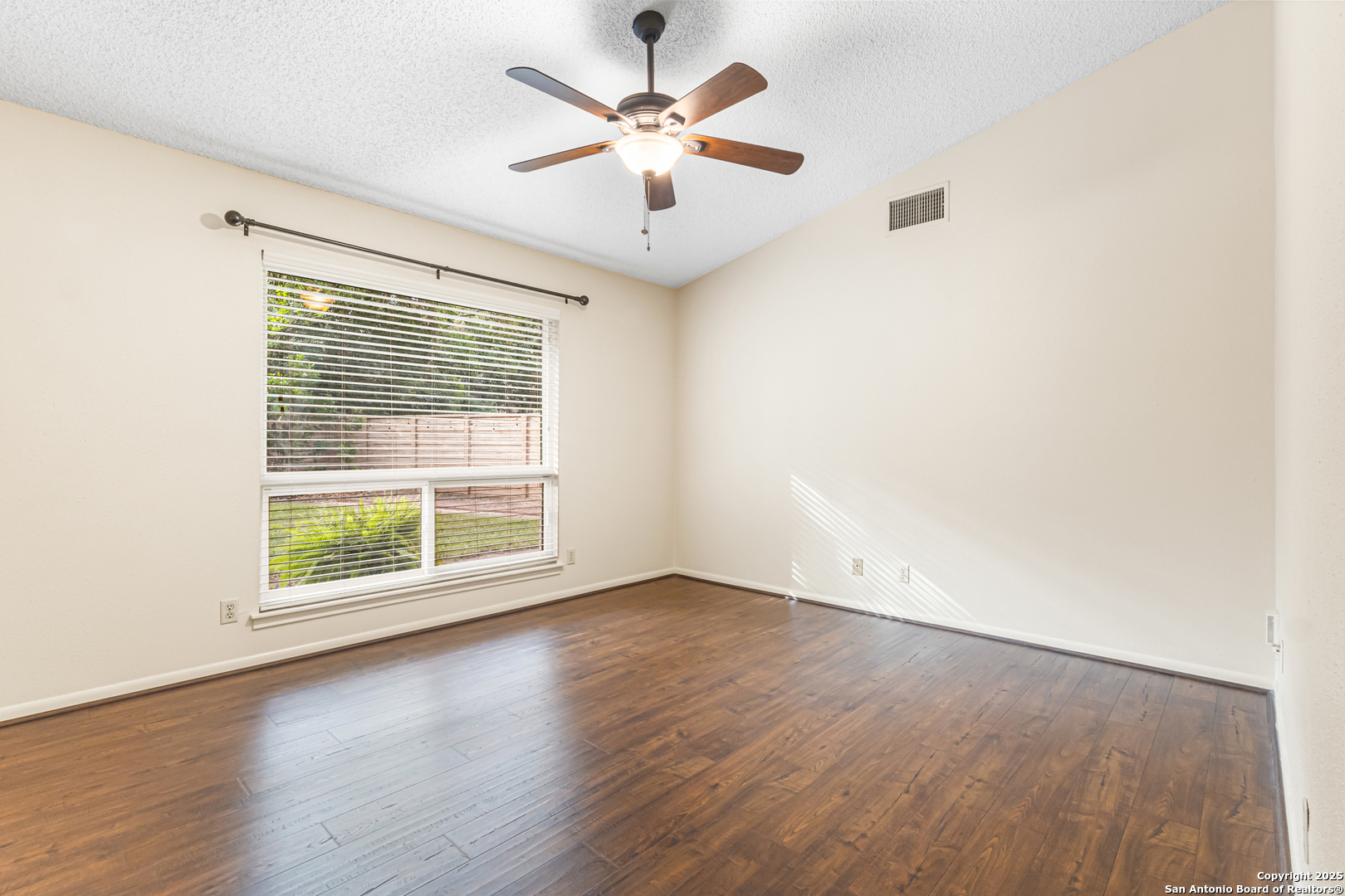 Exceptionally updated single-story home on a quiet cul-de-sac street. This stunning 4-bedroom, 2.5-bath home offers a split bedroom floorplan filled with natural light and recent upgrades throughout. The spacious living room features clerestory windows, built-in bookshelves, a wet bar, and a large fireplace - perfect for entertaining or relaxing. The remodeled primary suite spans the length of the home and showcases a luxurious, newly updated bath with a walk-in shower, dual vanities, and custom cabinetry. Enjoy modern comfort with two HVAC systems and new ductwork, updated roof, windows and doors, and Pergo flooring throughout. The kitchen features updated appliances, granite counters and opens to the breakfast area and screened-in porch - ideal for year-round outdoor enjoyment. You will find mature oak trees throughout, full sprinkler system, and yard lighting in both the front and back yards. Additional highlights include a side-entry garage, deck for entertaining, low-maintenance Fencecrete backyard fence, and freshly painted four-sides brick exterior. Located close to USAA, Medical Center, Alon Market and the convivences of North Central San Antonio.