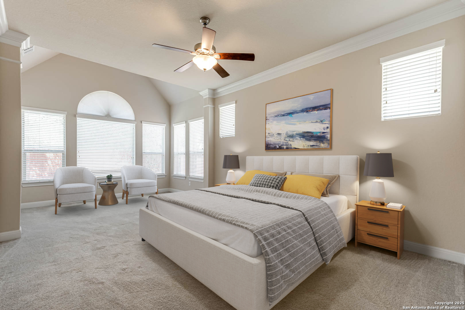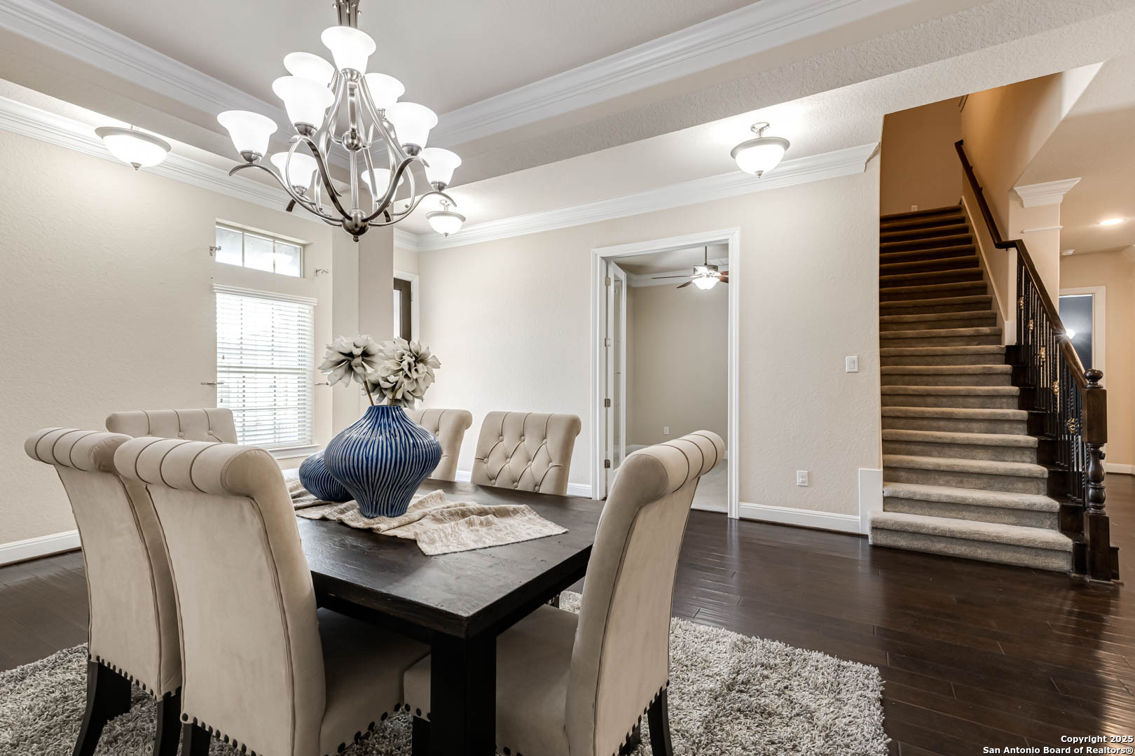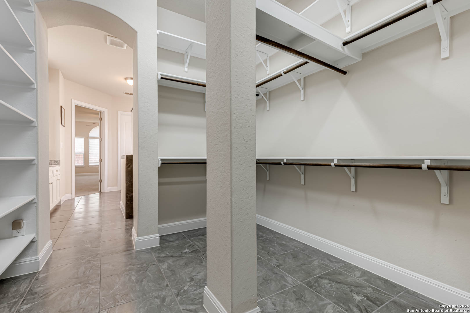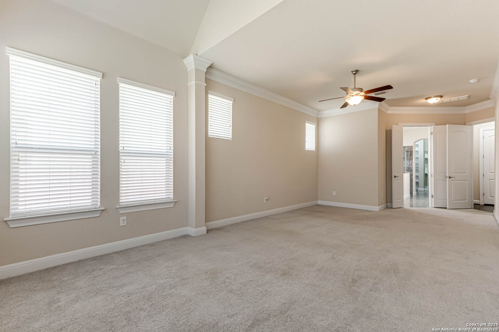 This architecturally distinct 1.5 custom David Weekly home is nestled in the exclusive gated community of Shavano Highlands & will take your breath away. Drive up to the manicured premium lot with metal roof, lush landscape, exquisite curb appeal & a 3 car garage. Features inc: Spacious rooms and efficient layout with, open floorplan, Dedicated office, Stunning hard wood flooring throughout traffic areas, Natural Sunlight flows through home, Gourmet chefs kitchen with upgraded granite counters, custom cabinets with lots of storage space, gas cooking, huge island, high-end stainless appliances and so much more! The large open family room is open to kitchen & perfect for entertaining with a custom sliding glass door out to the backyard. The master suite is split from the other bedrooms on its own private wing of the home and the ensuite adorns a huge dressing room and separate upgraded granite vanities & custom cabinetry. There is a dedicated media room that could also be used as a game room or 5th bedroom to accommodate family & guests. All bedrooms are downstairs and have their own bathroom. Upstairs features a HUGE game room & half bathroom. Walk out to your own private backyard paradise with an oversized covered patio on a quiet & serene culdesac lot. It couldn't get more perfect! Biking/jogging trails nearby, Very easy and quick access to great schools, major highways, RIM, La Cantera, UTSA, USAA, Medical Center etc. You must see it to appreciate all the exquisite details of this truly remarkable home!