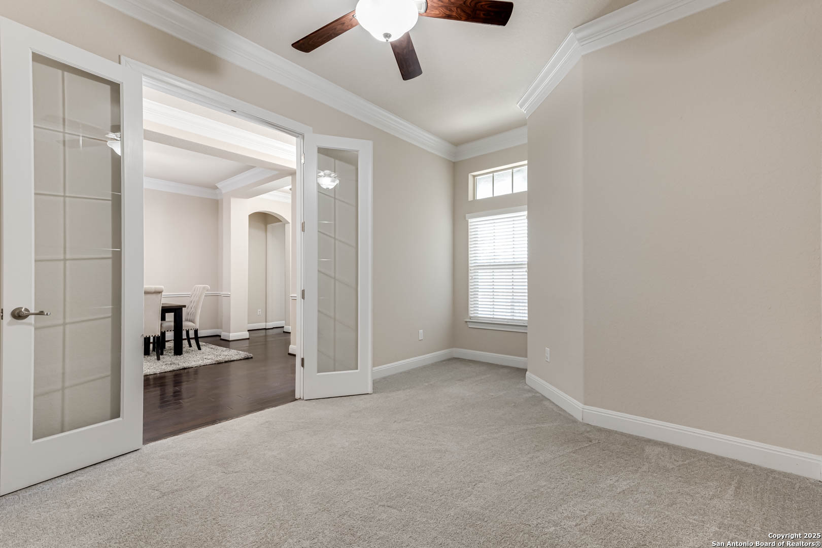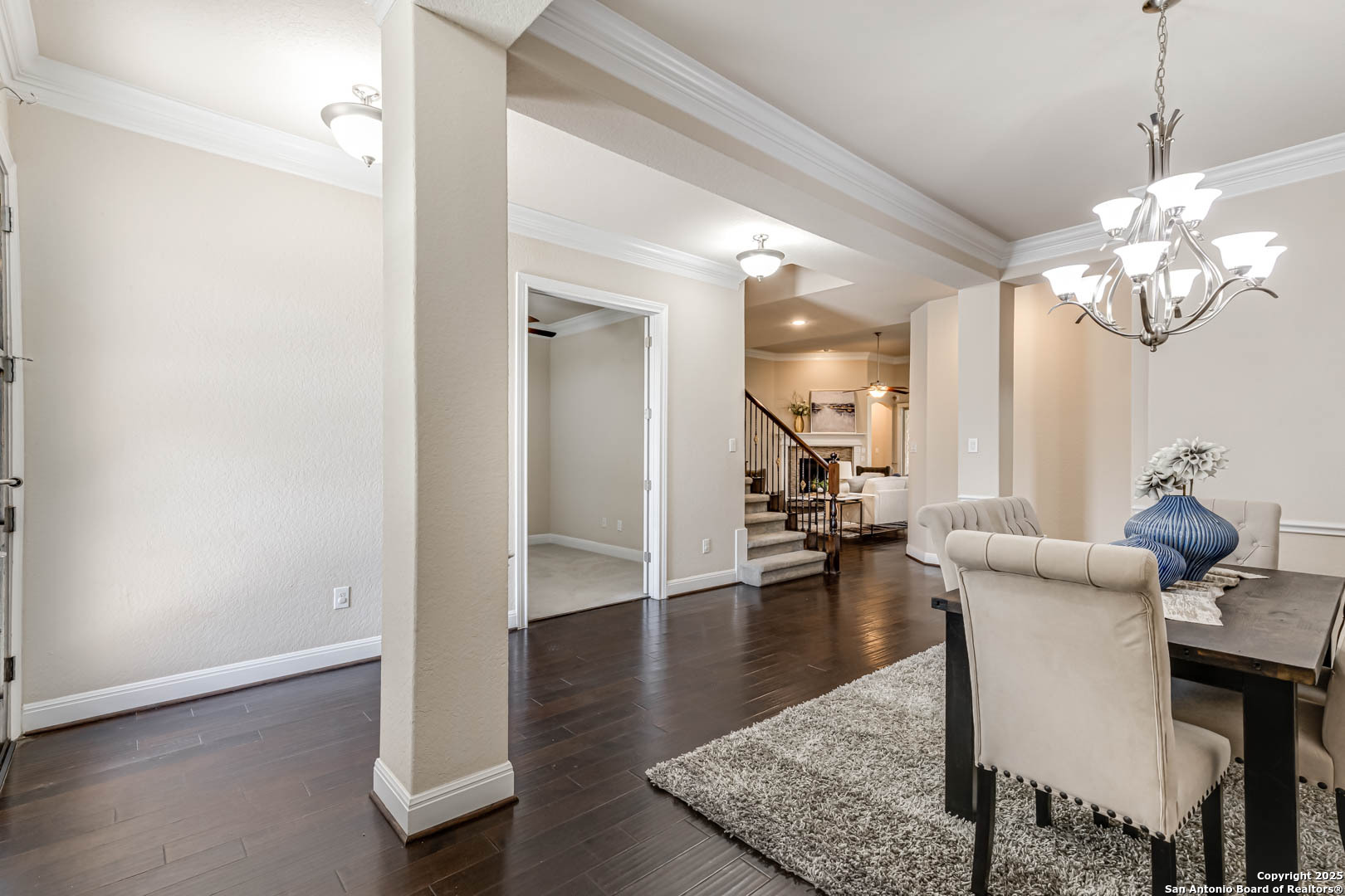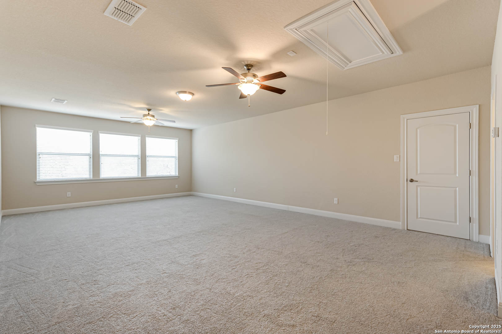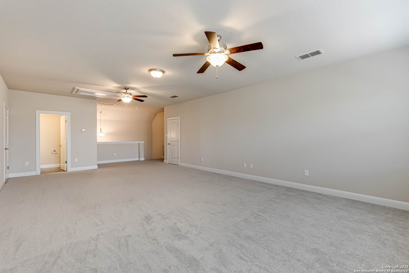 This architecturally distinct 1.5 custom David Weekly home is nestled in the exclusive gated community of Shavano Highlands & will take your breath away. Drive up to the manicured premium lot with metal roof, lush landscape, exquisite curb appeal & a 3 car garage. Features inc: Spacious rooms and efficient layout with, open floorplan, Dedicated office, Stunning hard wood flooring throughout traffic areas, Natural Sunlight flows through home, Gourmet chefs kitchen with upgraded granite counters, custom cabinets with lots of storage space, gas cooking, huge island, high-end stainless appliances and so much more! The large open family room is open to kitchen & perfect for entertaining with a custom sliding glass door out to the backyard. The master suite is split from the other bedrooms on its own private wing of the home and the ensuite adorns a huge dressing room and separate upgraded granite vanities & custom cabinetry. There is a dedicated media room that could also be used as a game room or 5th bedroom to accommodate family & guests. All bedrooms are downstairs and have their own bathroom. Upstairs features a HUGE game room & half bathroom. Walk out to your own private backyard paradise with an oversized covered patio on a quiet & serene culdesac lot. It couldn't get more perfect! Biking/jogging trails nearby, Very easy and quick access to great schools, major highways, RIM, La Cantera, UTSA, USAA, Medical Center etc. You must see it to appreciate all the exquisite details of this truly remarkable home!