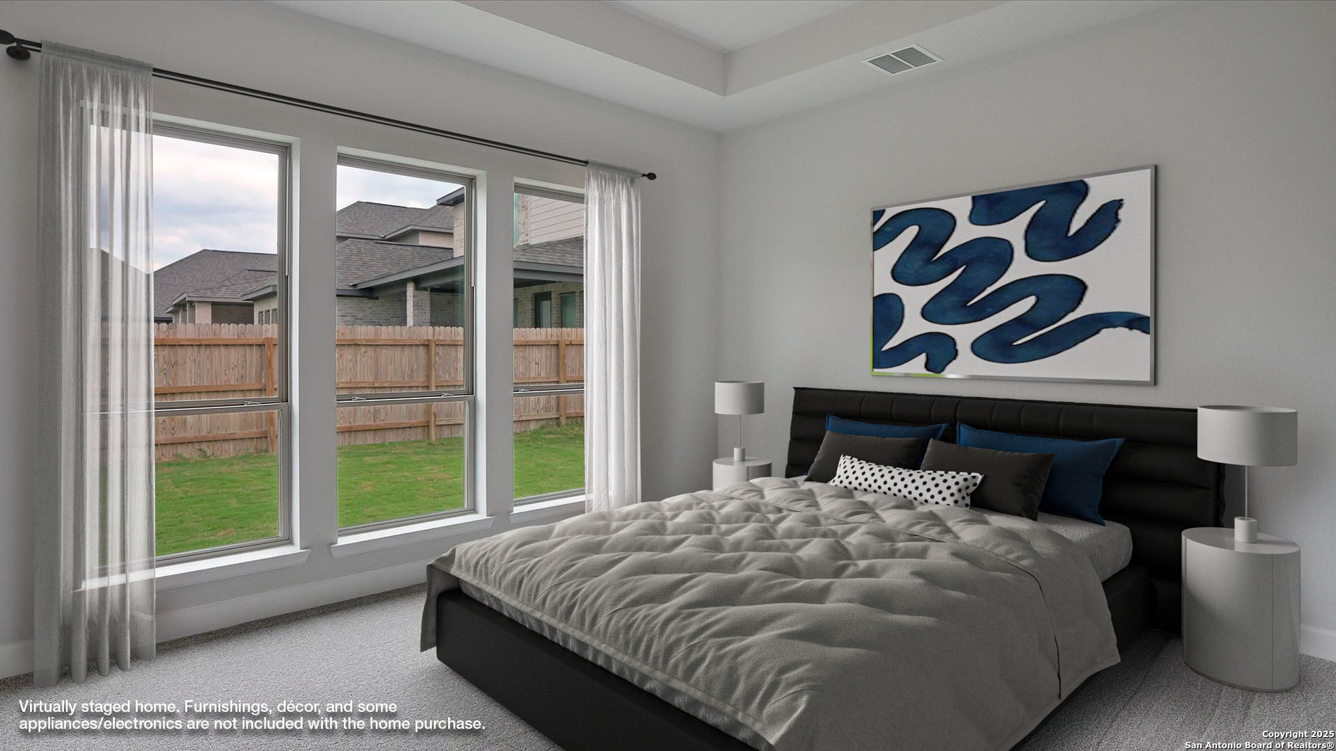 READY FOR MOVE-IN! Step off the front porch into the two-story entryway. French doors open into the home office at the front of the house. Past the staircase you enter into the open living areas. The kitchen features an island with built-in seating, walk-in corner pantry, and an adjacent dining room with ample natural light. The family room boasts a wall of windows and 19-foot ceiling. The primary bedroom has coffered ceilings and three large windows. French doors open into the primary bathroom which showcases a glass-enclosed shower, dual vanities, a garden tub, and an oversized walk-in closet. Upstairs on the second floor you are greeted by a large game room with a wall of windows. A private guest suite with a full bathroom is off of the staircase. Secondary bedrooms featuring walk-in closets, separate linen closets, and a shared bathroom complete this floor. Covered backyard patio. Mud room and utility room are off of the two-car garage.