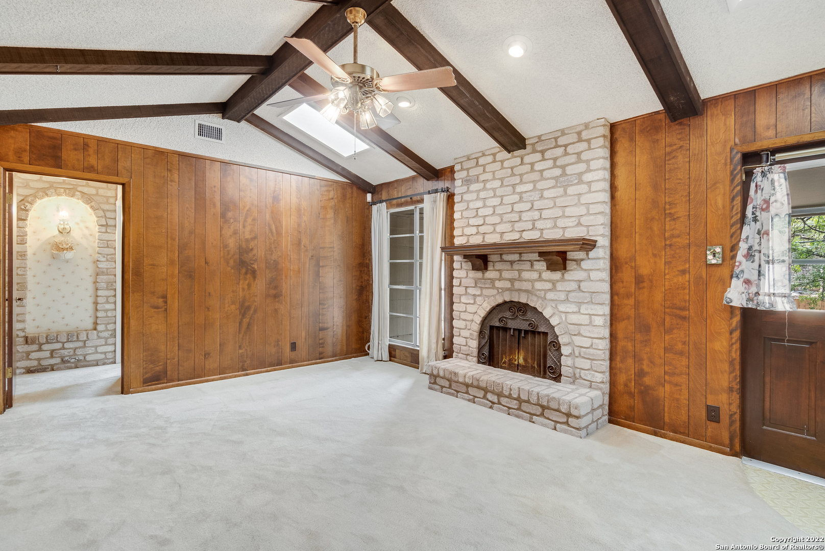Move in Special!!!Offering first two weeks free with approved 12month lease!!!!!Cozy home nestled within mature trees offers a serene peaceful feeling. The living room features a vaulted ceiling accented by dark wood beams and a floor-to-ceiling white brick fireplace with a contrasting dark mantel. There is a cozy breakfast nook off the kitchen with a built-in cabinet and a Bay-style window facing the covered patio. The galley kitchen features double built-in ovens and a separate cooktop, dishwasher, and fridge. The formal dining area boasts an abundance of natural light through t