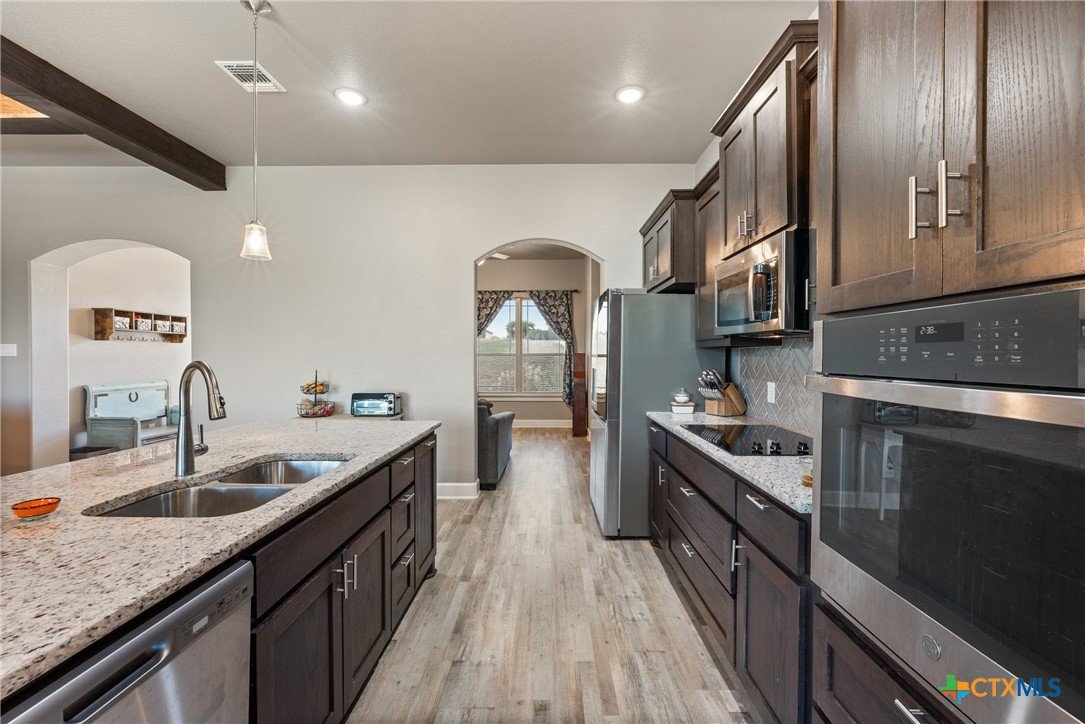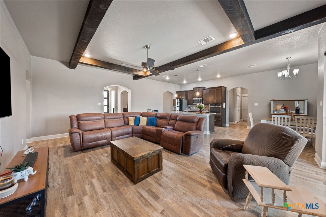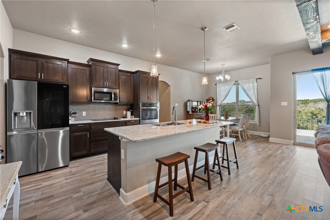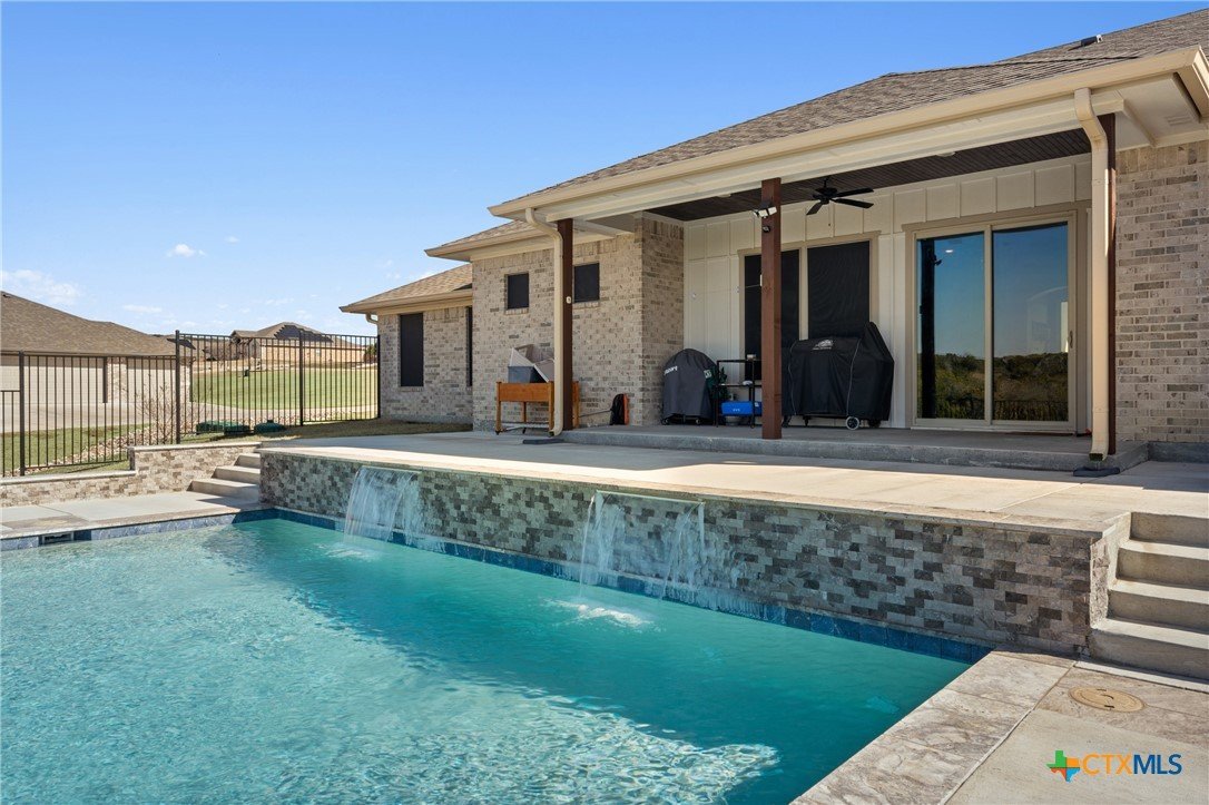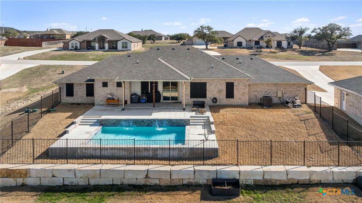 This expansive home on over half an acre offers the perfect blend of privacy, space, and luxury in a peaceful rural neighborhood. With no neighbors directly behind, the setting is serene, providing beautiful open views and a sense of seclusion. A side-entry three-car garage and additional detached garage offer plenty of space for vehicles, storage, or hobbies. Inside, the great room is bathed in natural light from large windows that frame breathtaking backyard views. The open floor plan connects this space to the island kitchen, where granite counters, stainless steel appliances, and a breakfast bar make both everyday living and entertaining effortless. The owner’s suite is a private retreat with a high ceiling that enhances the spacious feel. Its spa-like bath is designed for ultimate relaxation, featuring a central soaking tub and a luxurious walk-through shower with multiple shower heads. Step outside to an entertainer’s dream. The covered patio is the perfect place to take in the rural scenery, while the gorgeous pool, complete with elegant water features, promises endless enjoyment. This home is more than just a place to live—it’s a place to enjoy the best of indoor comfort and outdoor beauty.
