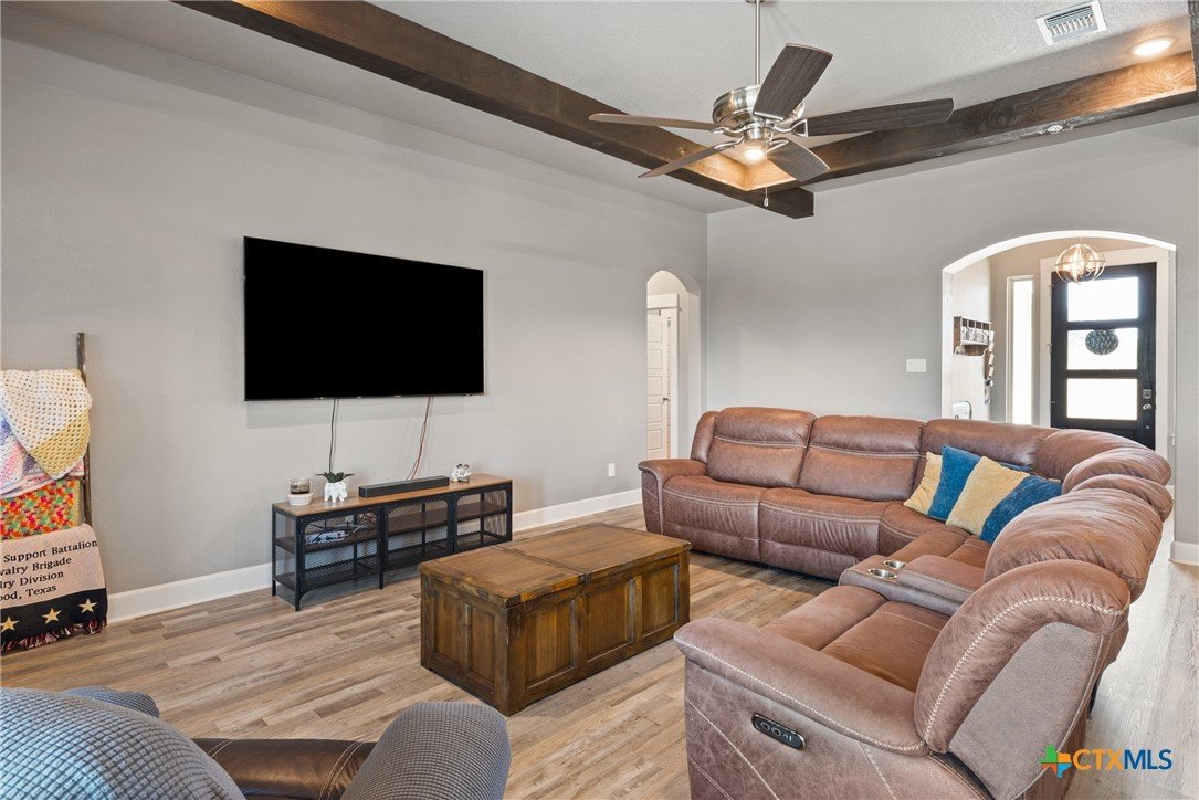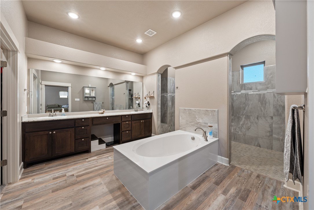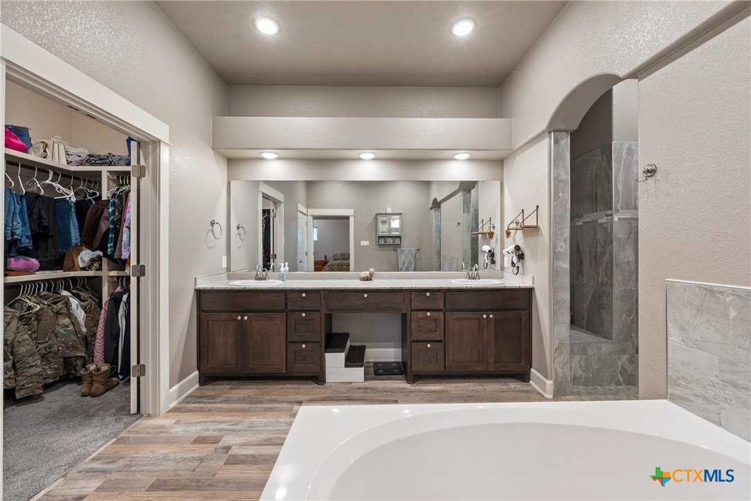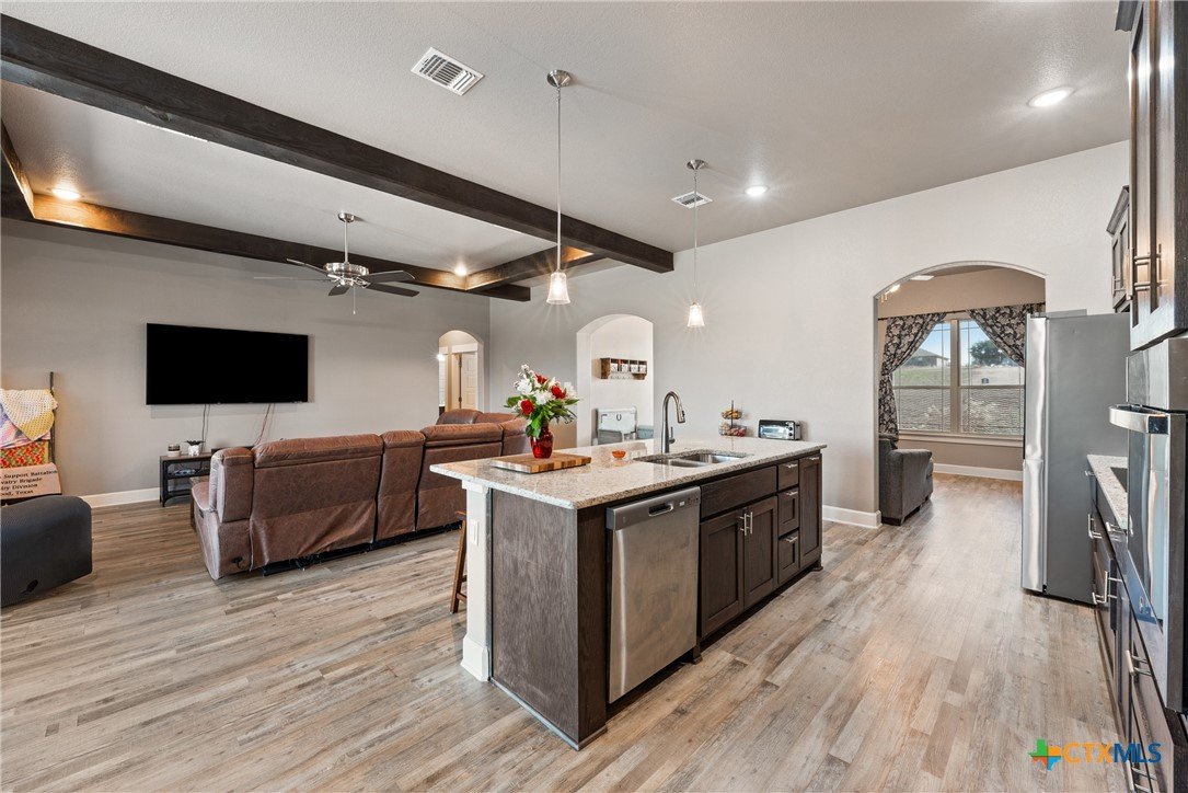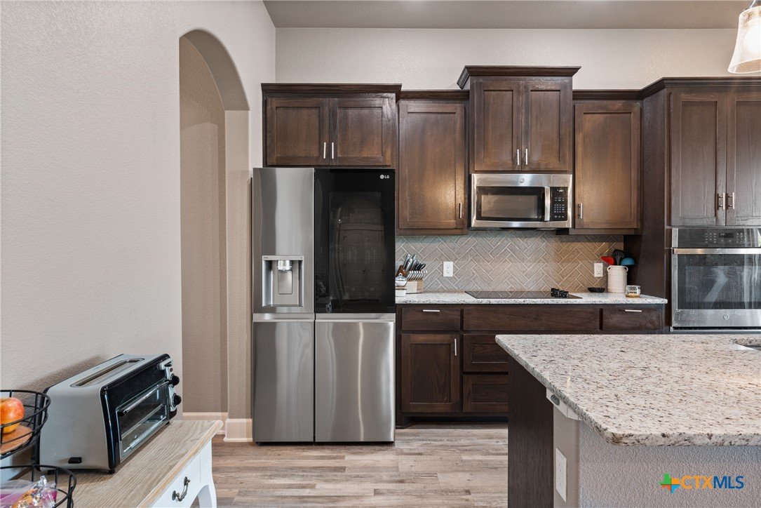 This expansive home on over half an acre offers the perfect blend of privacy, space, and luxury in a peaceful rural neighborhood. With no neighbors directly behind, the setting is serene, providing beautiful open views and a sense of seclusion. A side-entry three-car garage and additional detached garage offer plenty of space for vehicles, storage, or hobbies. Inside, the great room is bathed in natural light from large windows that frame breathtaking backyard views. The open floor plan connects this space to the island kitchen, where granite counters, stainless steel appliances, and a breakfast bar make both everyday living and entertaining effortless. The owner’s suite is a private retreat with a high ceiling that enhances the spacious feel. Its spa-like bath is designed for ultimate relaxation, featuring a central soaking tub and a luxurious walk-through shower with multiple shower heads. Step outside to an entertainer’s dream. The covered patio is the perfect place to take in the rural scenery, while the gorgeous pool, complete with elegant water features, promises endless enjoyment. This home is more than just a place to live—it’s a place to enjoy the best of indoor comfort and outdoor beauty.