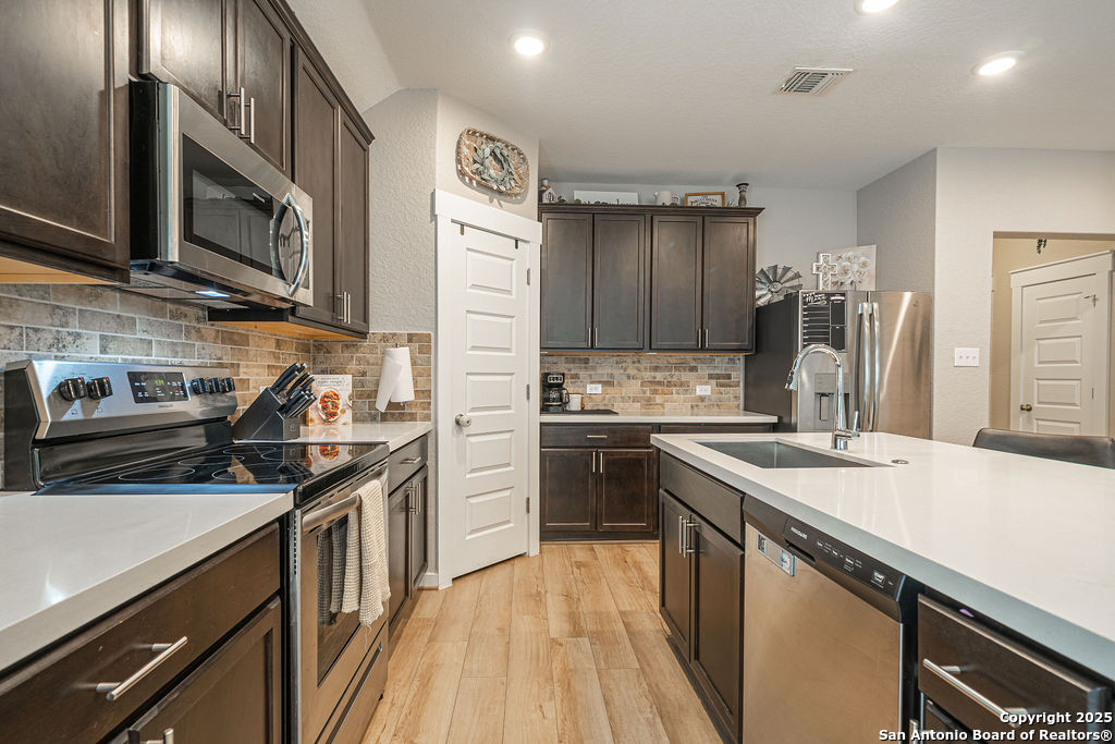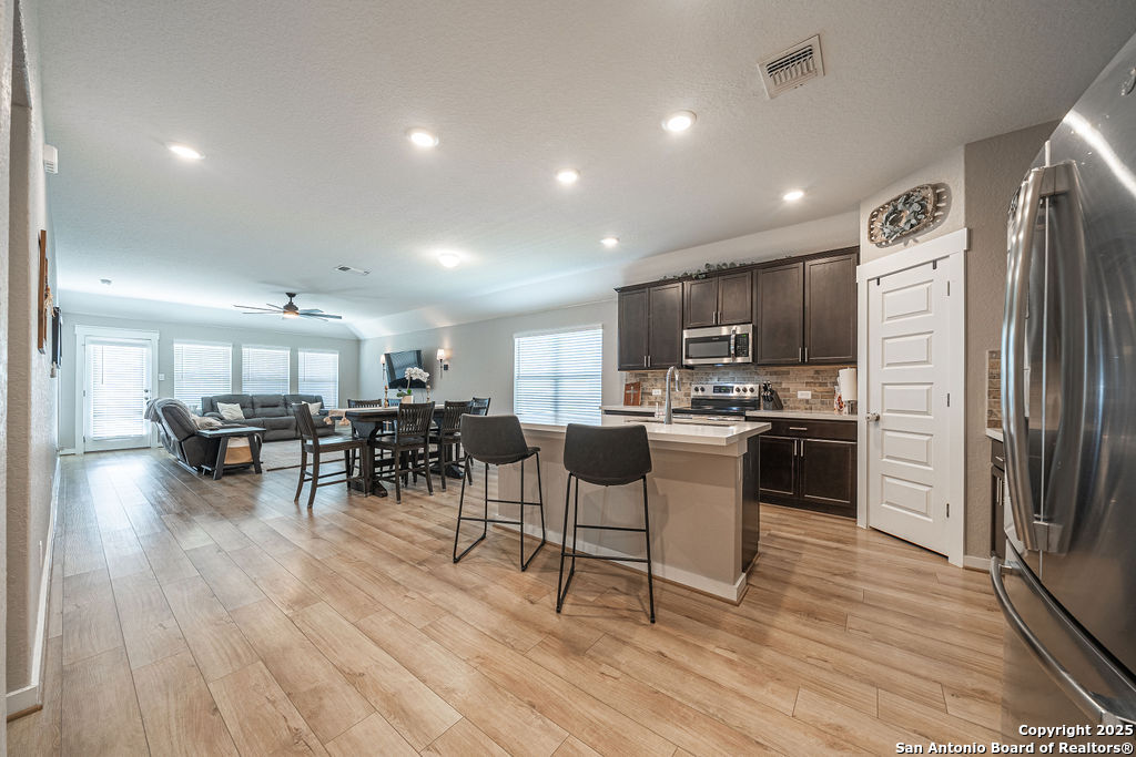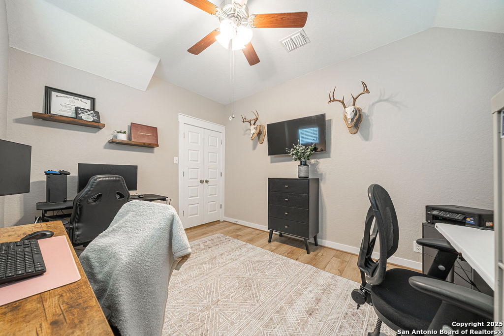 MOTIVATED SELLERS! Check out this gorgeous 4-bedroom 2-bath home with a bonus room/office, built by Gehan Homes, in the heart of the Hill country! This home features several upgrades giving it a custom feel! The moment you walk in you are greeted with coffered ceilings in the extended foyer that leads into the open concept kitchen living ang Dining area. The Kitchen has an oversized island and is finished out with features such as gas cooking, Omega stone countertops, 42" wood cabinetry, and stainless-steel appliances. All of the high traffic areas of the home have a beautiful upgraded light wood LVP, tiled wet areas and carpet in the bedrooms. This home sits on an oversized lot with an extended patio perfect for entertaining, with a large backyard and built in dog run. There is a builder's warranty in place that transfers to the new homeowner for the roof and foundation. Don't miss your chance to tour this beautiful home and schedule today!