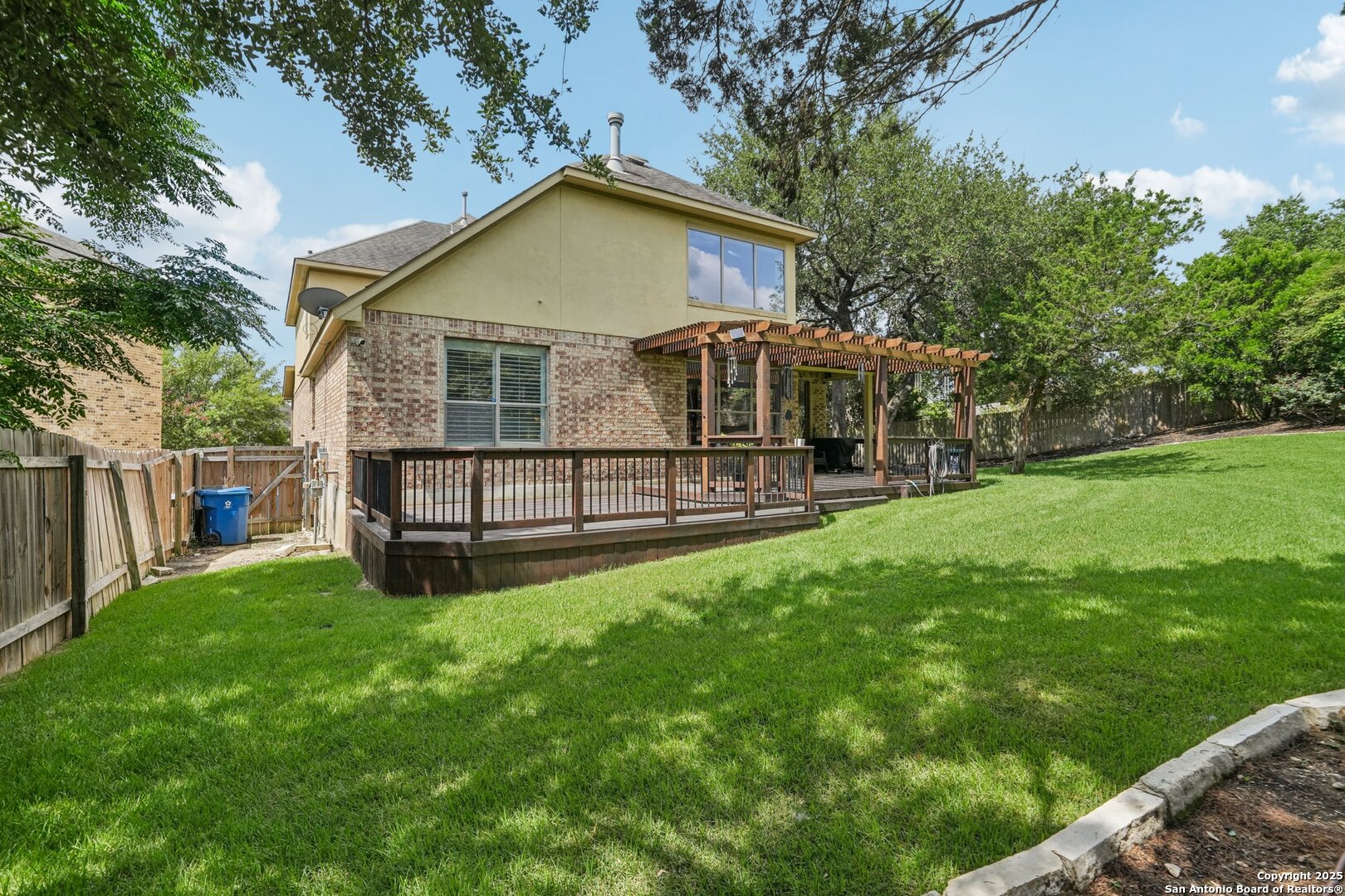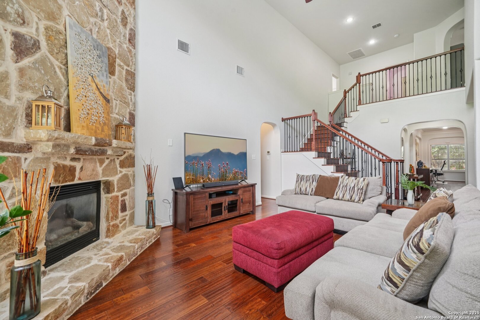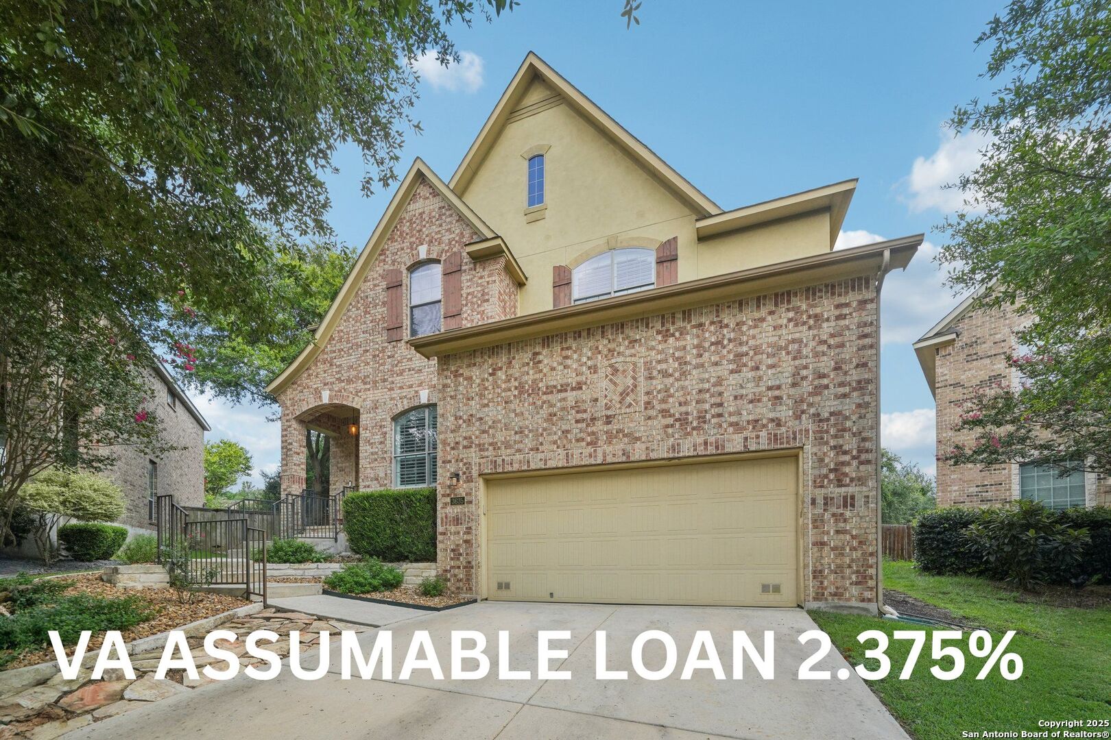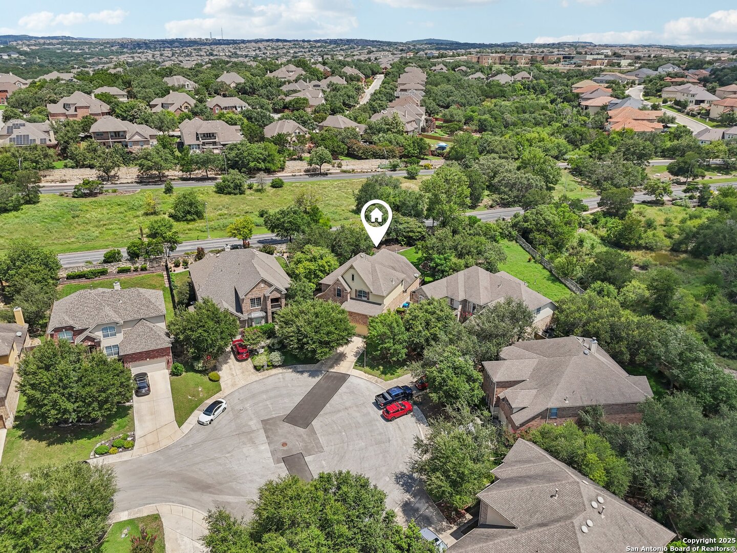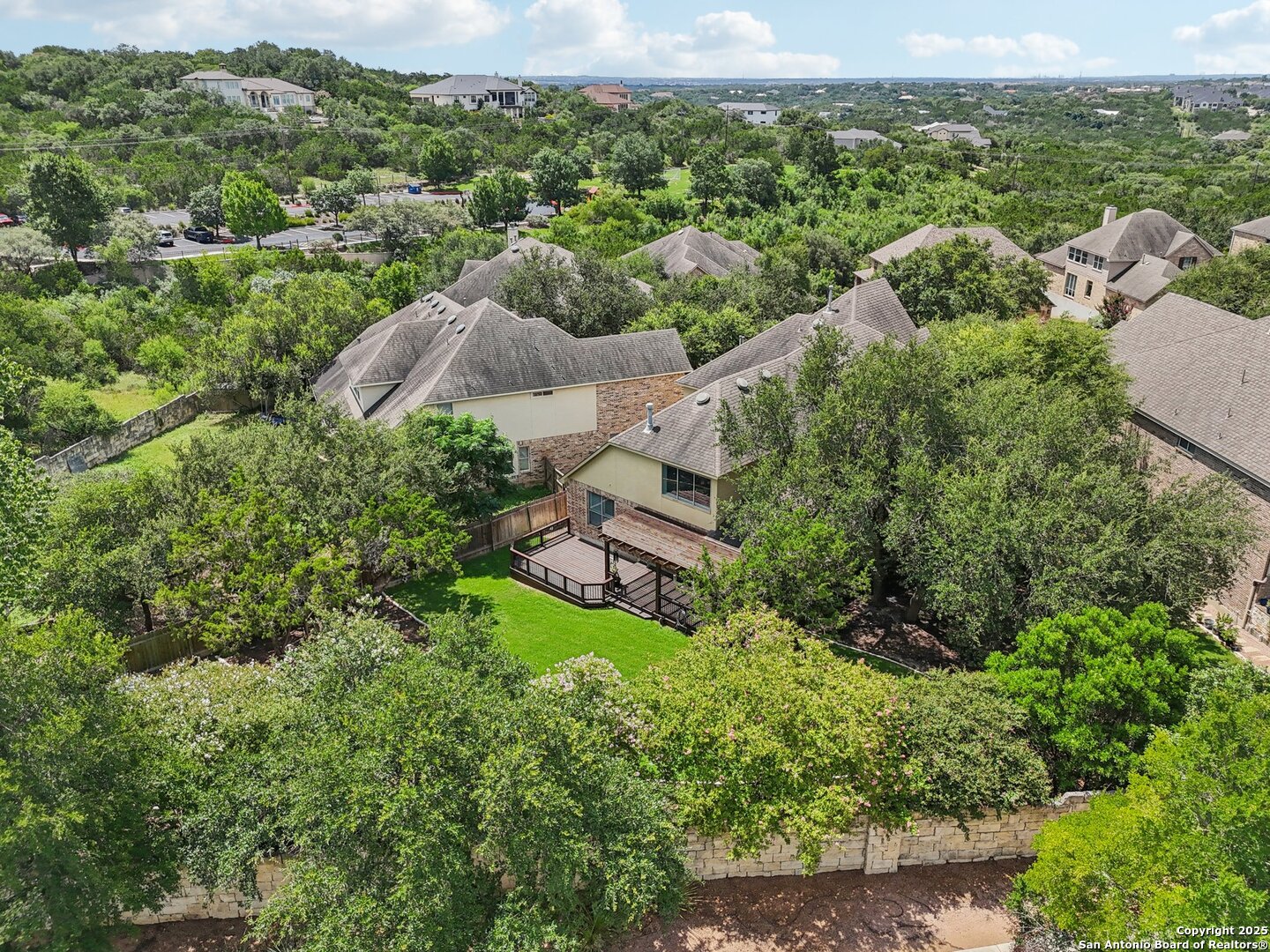 VA ASSUMABLE LOAN 2.375%! Tucked into a quiet cul-de-sac and set on one of the largest lots in the neighborhood, this beautiful two-story offers space and style in a master-planned, resort-style community. With over a quarter acre to call your own, you'll have room to relax, entertain, or even add a pool. Step inside and you're greeted by a vaulted foyer that feels bright and open, leading to a cozy sitting area and a private home office. Just beyond, a butler's pantry connects the front of the house to the heart of the home - a kitchen made for cooking and gathering, complete with built-in stainless appliances, gas cooking, and tons of cabinet space. The kitchen opens into the light-filled living room, where a floor-to-ceiling stone fireplace adds a warm and elegant focal point. The primary suite is privately situated downstairs and feels like a retreat; featuring two large walk-in closets and a spa-inspired bath with separate vanities, a garden tub, and an oversized walk-in shower you'll fall in love with. Upstairs is complete with a spacious game room, separate media room, three well-appointed bedrooms, and two full baths, providing comfortable accommodations for loved ones or guests. Outside, the beautifully maintained, oversized yard and deck offer so much potential - install an outdoor kitchen, put in a pool, design the outdoor space of your dreams, or do all of the above. Quick access to Hwy 281 and close to the many amenities North San Antonio has to offer - this home will not last long!