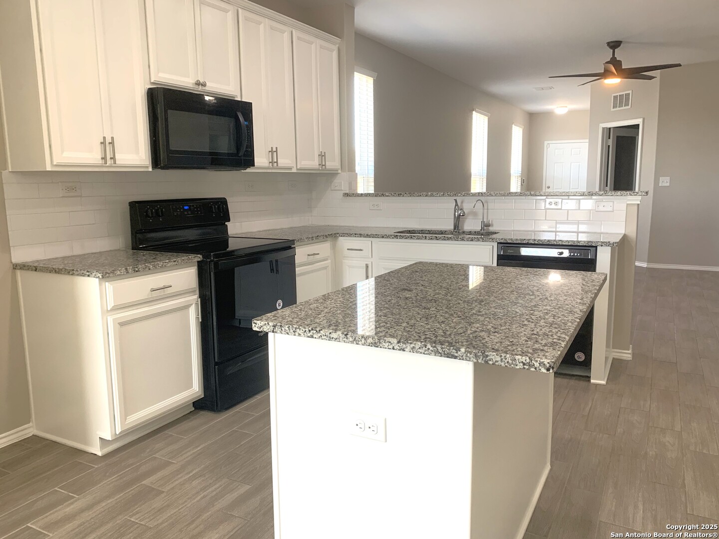 Interest rate buydown offered with preferred lender. 3 bedroom, 2 bath plus and office. Open floor plan. Island kitchen with granite counters and a breakfast bar. Faux wood tile flooring in the living area, dining, and kitchen. New carpet in the bedrooms. Fresh paint. Primary bath offers soaking tub, separate shower, and a double vanity. 2 inch blinds are included.